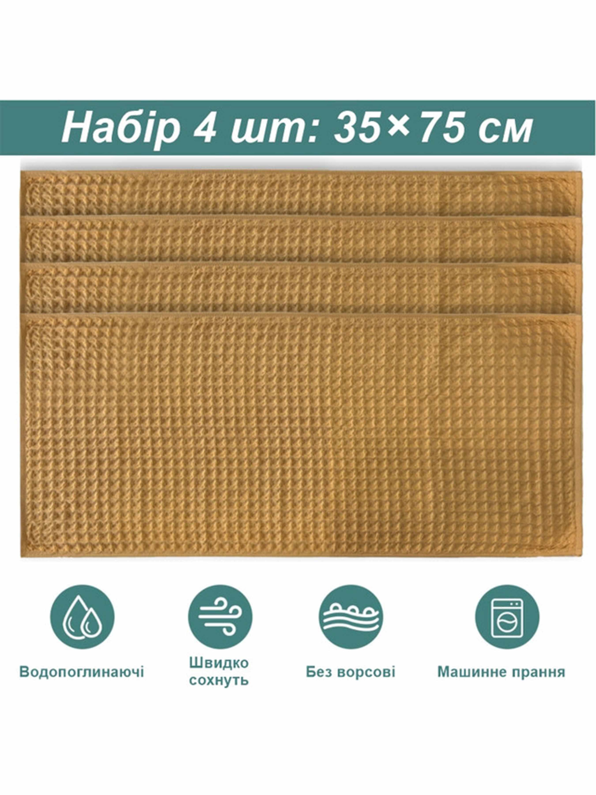 Набір кухонних вафельних рушників 4 шт 100% бавовна – Жовтий Lovely Svi модель 561035