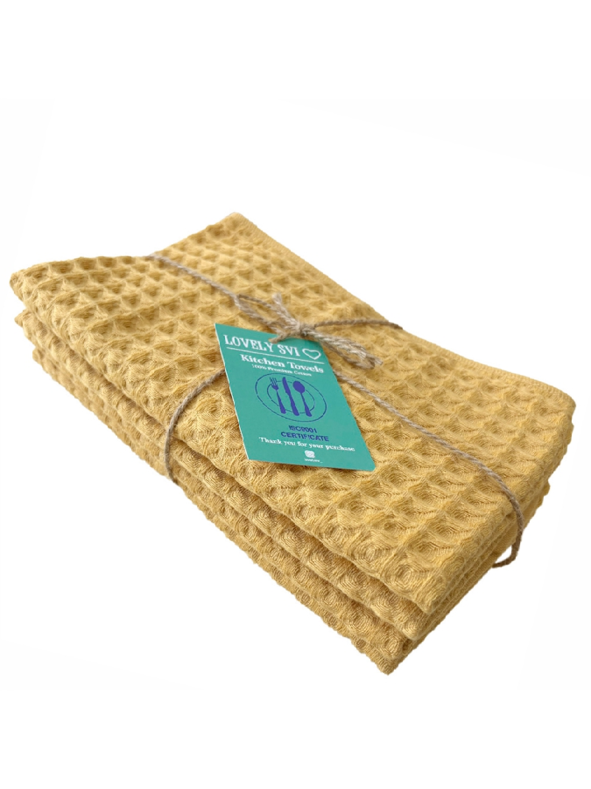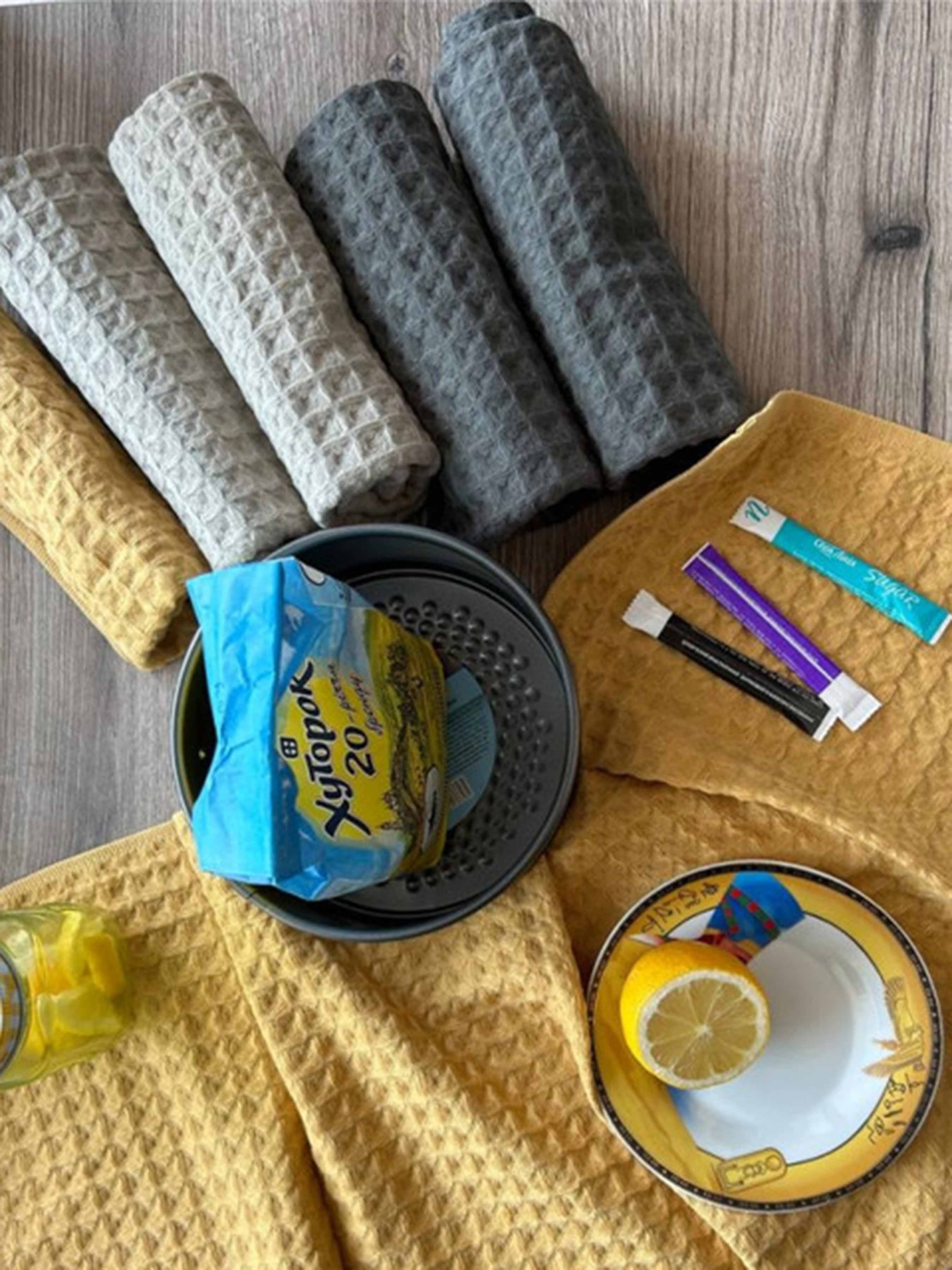Lovely Svi Набір кухонних вафельних рушників 4 шт 100% бавовна – Жовтий
