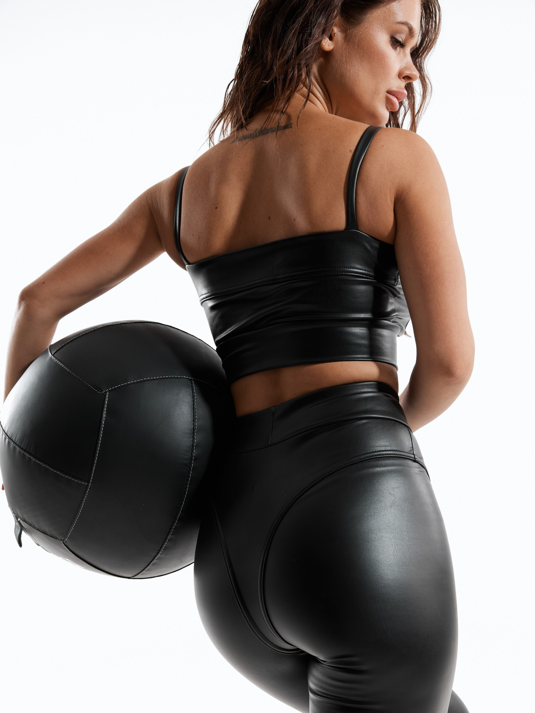 Жіночі лосини з еко-шкіри на флісі з ефектом ботфортів. Модель з оригінальними декоративними швами візуально підкреслюють сідниці та створюють ефект високого ботфорту. Лосини на високій посадці з поясом. Виготовлені з м'якої та приємної еко-шкіри на флісі.