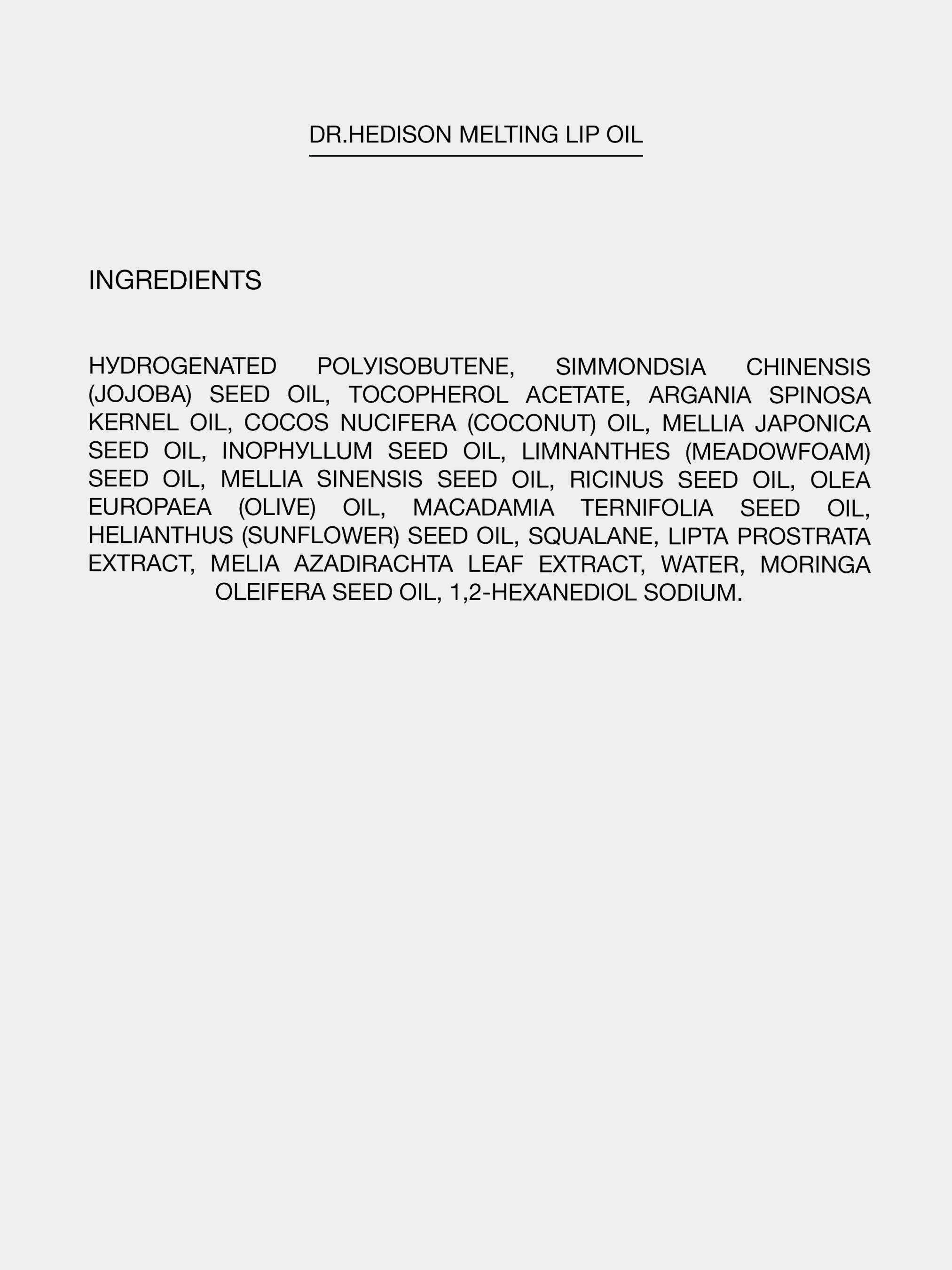 Поживна олія для губ Dr.Hedison Melting Lip Oil Якщо для багатьох лущення і сухість губ, це явище сезонне, пов'язане з холодами і гарячими батареями, то є й ті, хто страждає від тріщин і лущення шкіри на губах цілий рік. А звичайні гігієнічні помади лише лежать товстим жирним шаром на губах, маскуючи сухість, але не усувають проблему. Чому губам потрібен особливий догляд? В зоні губ, за винятком куточків рота, відсутні сальні залози, що позбавляє шкіру природного захисту – така шкіра не може забезпечити себе достатнім живленням і зволоженням. А їх шкіра дуже тонка і чутлива. Час усувати лущення, досить маскувати! З цим допоможе ніжна, мегапоживна олія на основі цінних рослинних олій та екстрактів Dr.Hedison Melting Lip Oil. Вона швидко пом'якшує губи, та дійсно вирішує проблему лущення й усуває дрібні тріщини. Можна застосовувати як денний догляд, так і перед сном, в якості поживної маски для губ. Прокидайтесь з м’якими і пружними губами без ознак пошкоджень і сухості з Dr.Hedison Melting Lip Oil. ЯКІ ПРОБЛЕМИ ВИРІШУЄ Забезпечує інтенсивну терапію для губ завдяки комплексу цінних олій Глибоко зволожує Інтенсивно живить шкіру губ протягом дня Дарує природний, глянсовий блиск Створює захисну плівку на поверхні Чудово заживляє тріщинки і усуває сухість та лущення Абсолютно не липка та дуже комфортно відчувається АКТИВНІ КОМПОНЕНТИ Олія жожоба — є цінним зволожувальним і живильним компонентом, має протимікробні та протигрибкові властивості, допомагає зменшити сухість, лущення, свербіж шкіри і пов'язані з ними симптоми. Арганова олія — містить рекордну кількість поліненасичених жирних кислот омега-6. А також вітамін Е (кількість якого в аргановій перевершує оливкову олію втричі) - утримує вологу у верхніх шарах шкіри. Крім того, містить також фітостероли - безцінні речовини, які є структурними компонентами клітинних мембран, стимулюють природне вироблення колагену й еластину. Олія кокосу — має виражені поживні і зволожувальні властивості, адже в її складі присутні: Пантотенова, каприлова, міристинова і фолієва кислота а також вітаміни В1 і С, що чудово впливають на стан шкіри. Олія насіння камелії — більша частина складу олії належить олеїновій кислоті, що сприятливо впливає на шкірні покриви. У складі також присутні пальмітинова, стеаринова, лінолева та арахідонова кислоти. Поживність засобу обумовлена наявністю марганцю, магнію, фосфору, кальцію, заліза. Олія регенерує, відновлює бар'єрні функції, підтримуючи шкіру в еластичному стані, знижуючи втрату вологи. Олія макадамії — відрізняється великим вмістом пальмітолеїнової кислоти (palmitoleic acid), мононенасиченої кислоти, яка сприяє відновленню шкірного покриву, особливо при в’ялості і сухості шкіри. Діє як антиоксидант, запобігає руйнуванню клітинних мембран. Дуже швидко вбирається в шкіру. Олія нассіння пінника лугового — шкірі необхідні жирні кислоти, а олія пінника якраз і містить унікальний їх набір. Поліненасичені роблять шкіру м'якою, повертають ніжне сяйво і еластичність. А насичені відповідальні за відновлення клітин епідермісу і нормальний водно-ліпідний баланс шкіри. Олія оливи — жирні кислоти у її складі – пальмітинова, лінолева та стеаринова, утворюють на поверхні шкіри плівку і захищають її від агресивного впливу навколишнього середовища. Комплекс вітамінів (А, В, Е, D, К) та мононенасичені жирн
