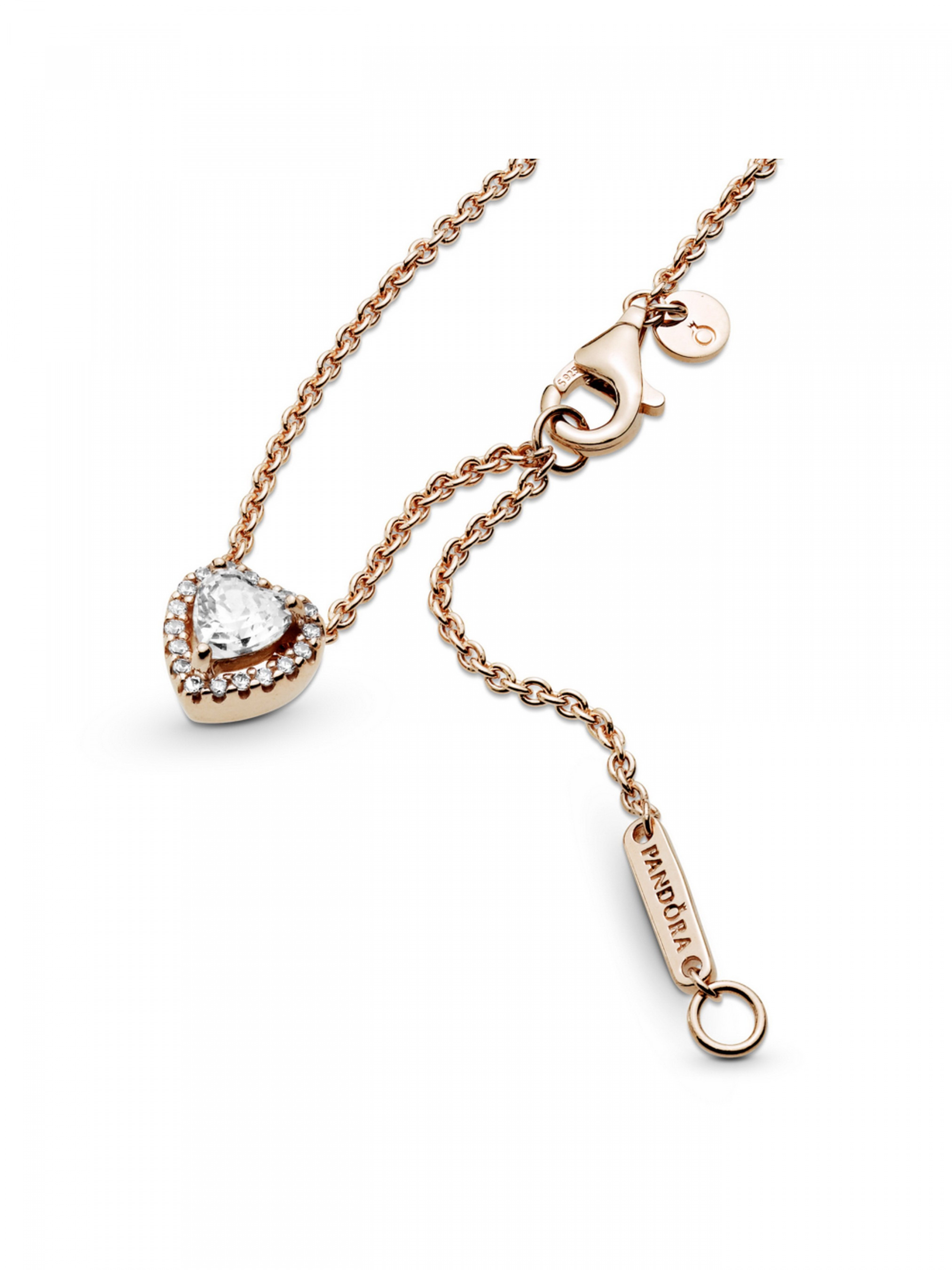 Створіть яскравий образ із намистом-кольє "Блискуче серце". Це довершене вручну намисто виготовлено з Pandora Rose™ (унікальний сплав металів з покриттям рожевим золотом 14k) за мотивами класичних прикрас з колекції Pandora Timeless. Центральний елемент намиста — рельєфний камінь у формі серця, що оточений ореолом із прозорих кубічних оксидів цирконію. Застібку намиста доповнено жетоном з монограмним логотипом з короною "O" Pandora. Намисто можна регулювати по довжині. Щоб створити образ, сповнений флюїдами любові, одягніть це намисто разом з іншими прикрасами у формі серця.