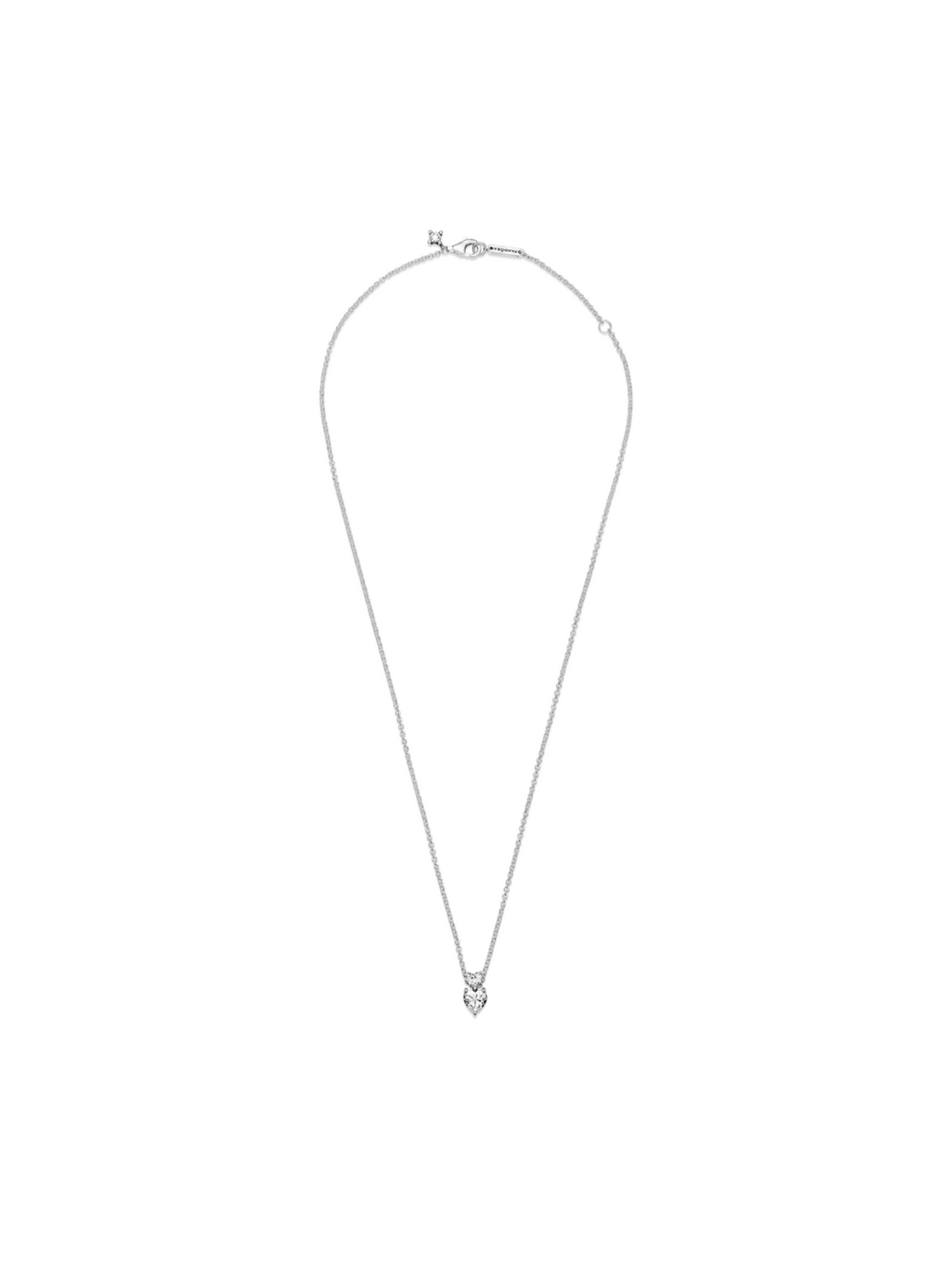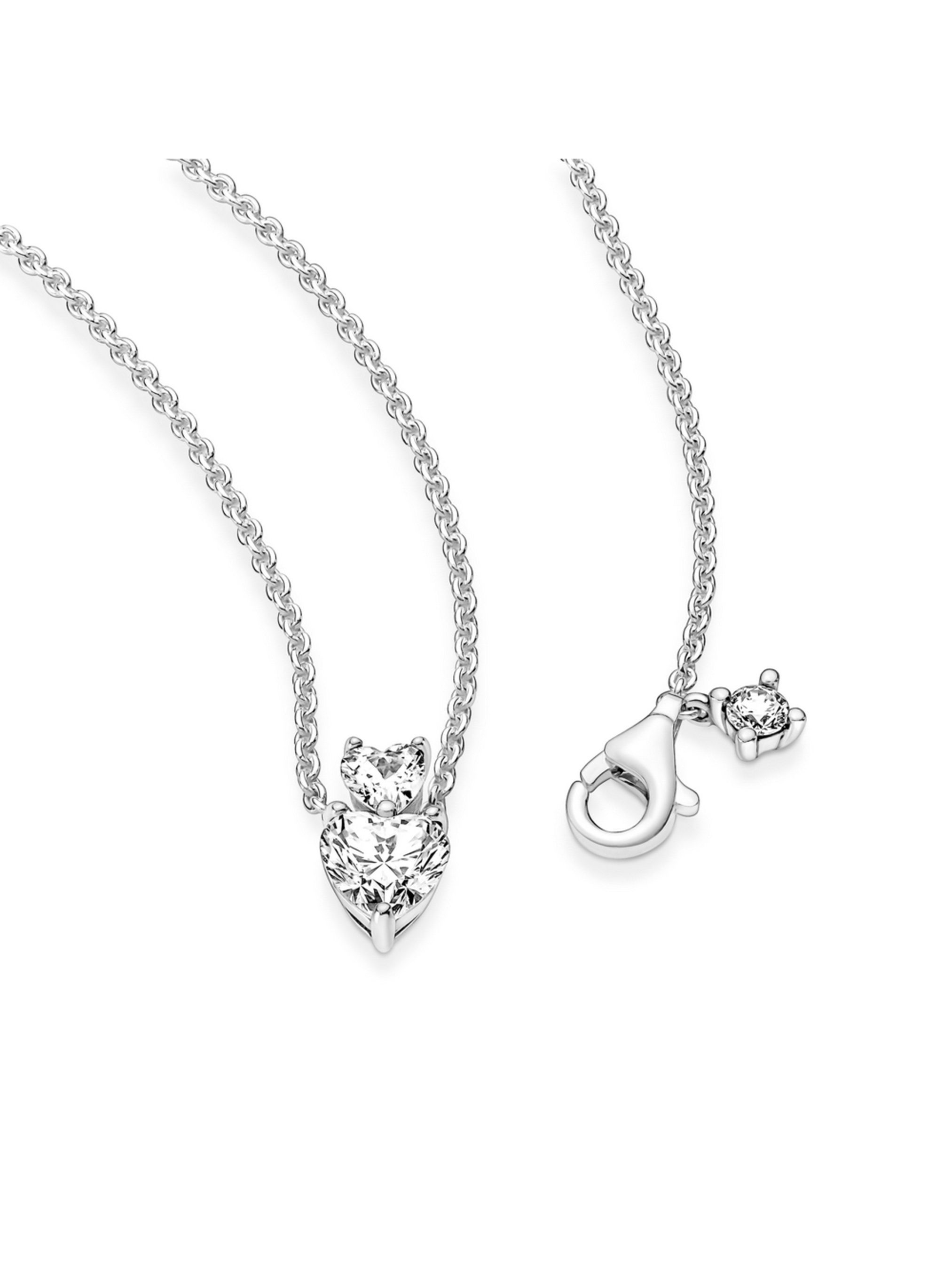 У цій прикрасі завжди актуального дизайну два серця б'ються в унісон. Блискуче намисто-кольє з підвіскою "Два серця" оздоблено двома камінцями у формі серця різних розмірів, менше з яких слугує кріпленням для підвіски. Застібку лобстер доповнено невеликим камінцем кубічного оксиду цирконію круглого огранювання. Довжина ланцюжка намиста регулюється. Ця універсальна прикраса стане чудовим доповненням будь-якого образу.