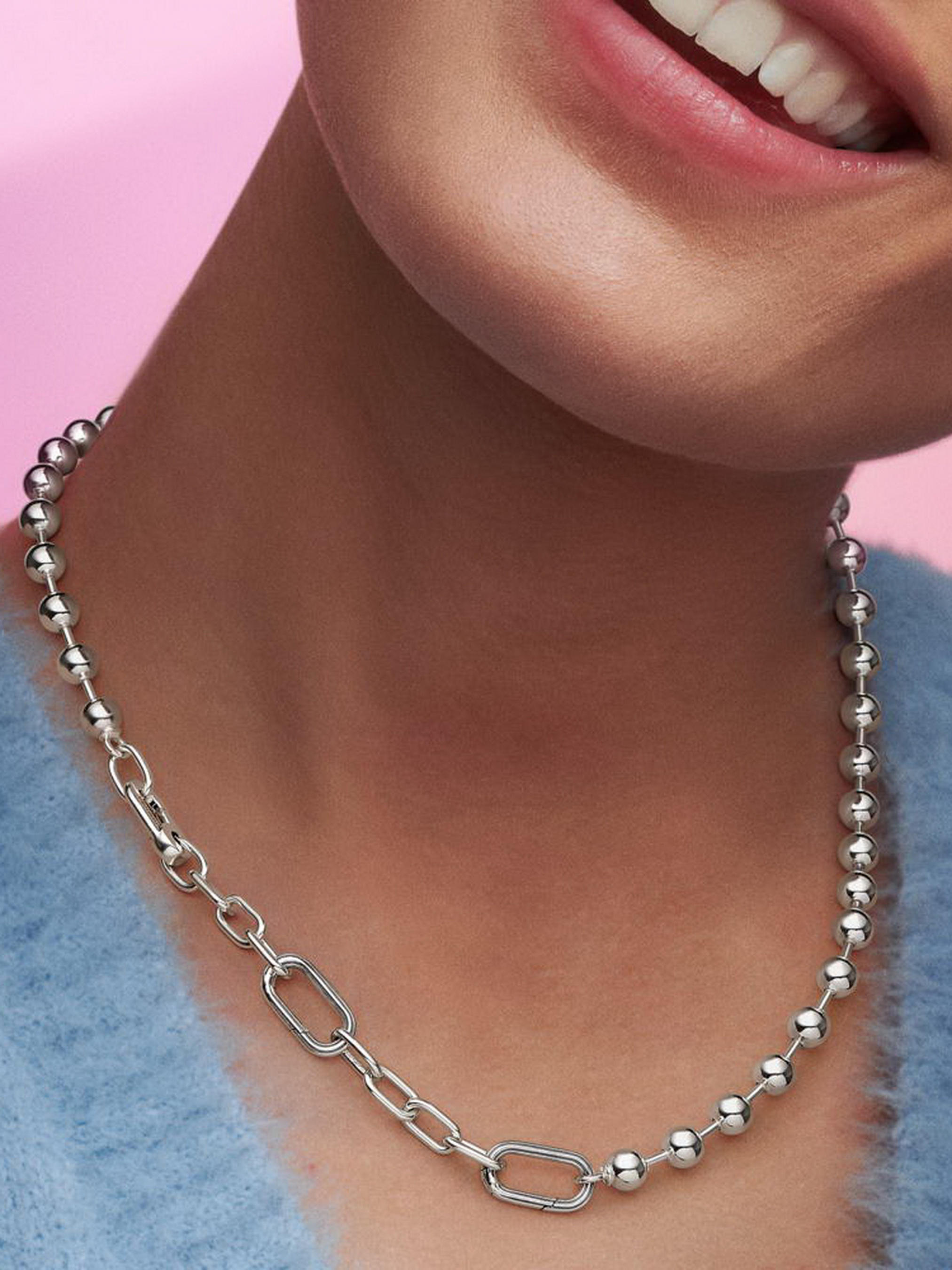 Намисто з ланками та металевими намистинами Pandora ME доводить, що протилежності притягуються. Воно поєднує у собі два основних стилі — металеві намистини та ланки. Намисто зі срібла 925-ї проби, персоналізуйте його дизайн, змінюючи ланки або додавайте до ланок мініпідвіски або медальйони. На створення намиста нас надихнула культура панк-року 90-х і завжди актуальні теплі золоті тони. Це яскраве намисто можна носити як окрему прикрасу або комбінувати його з іншими виробами, змінюючи свій стиль кожного дня. Колье со звеньями и металлическими бусинами Pandora ME доказывает, что противоположности притягиваются.