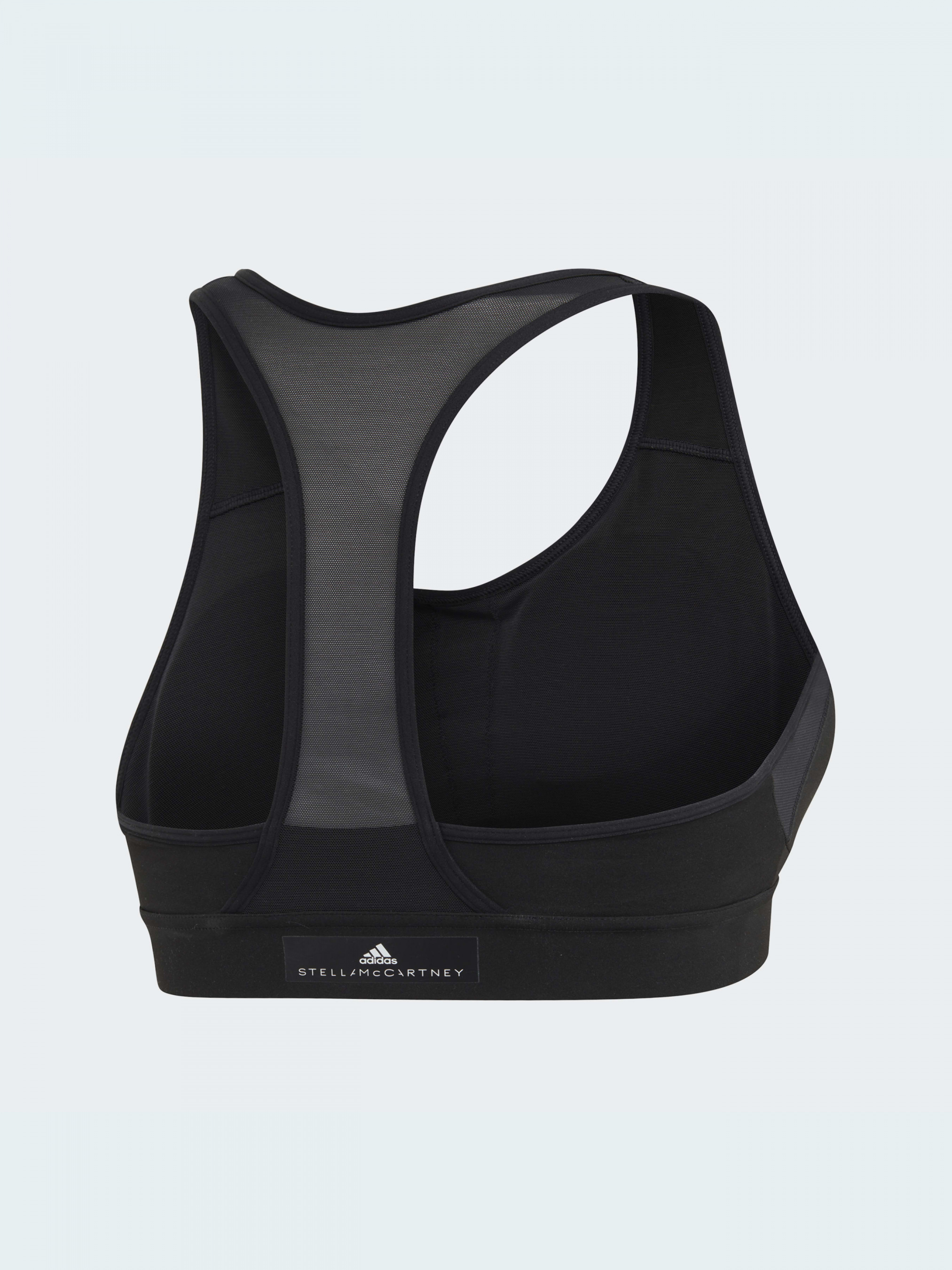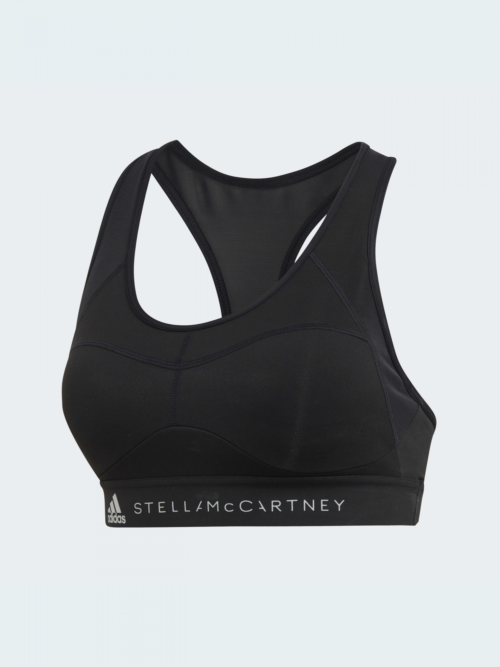 Спортивний бра із середнім ступенем підтримки, створений для інтенсивних тренувань. Ця модель без застібок відрізняється жіночними злегка вигнутими швами, характерними для колекцій Стелли Маккартні. Перехресні лямки гарантують повну свободу рухів, а м'який матеріал, що відводить вологу, зберігає відчуття сухості.