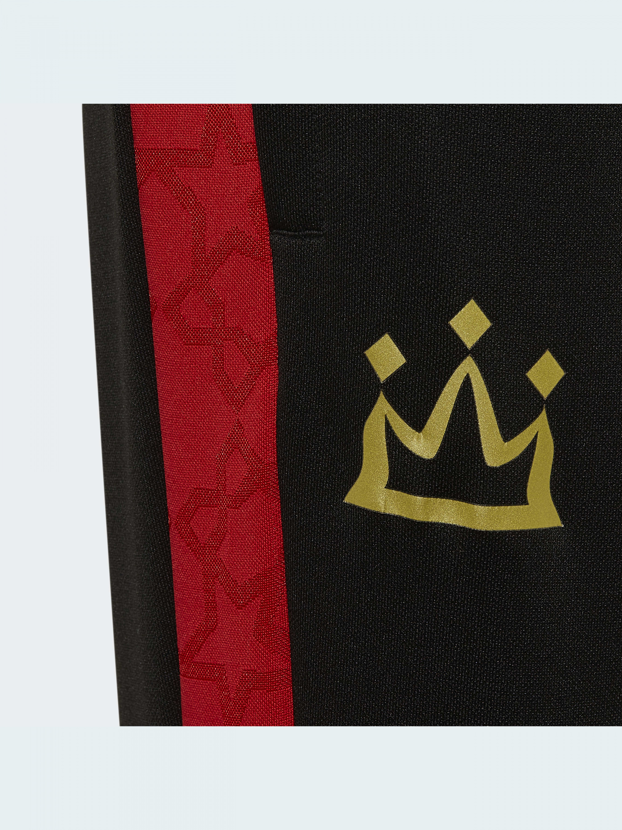 Деякі гравці можуть поєднувати швидкість, техніку та харизму, як Мохаммед Салах. Ці юнацькі футбольні штани adidas віддають належне його здібностям та його особистості. AEROREADY допомагає залишатися сухим, незалежно від того, чи борешся ти зі спекою на вулиці, чи дотискаєш останні хвилини тренування. Зоряні деталі на оздобленні уособлюють сходження Салаха до статусу суперзірки. Логотип у вигляді золотої корони надає їм вигляду, гідного короля. Модель на 100% складається з перероблених матеріалів та представляє одне з наших рішень щодо скорочення пластикових відходів.