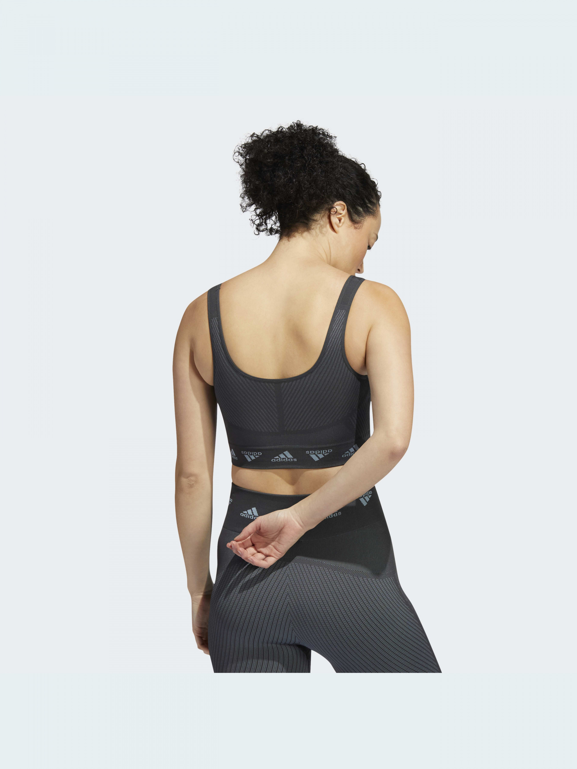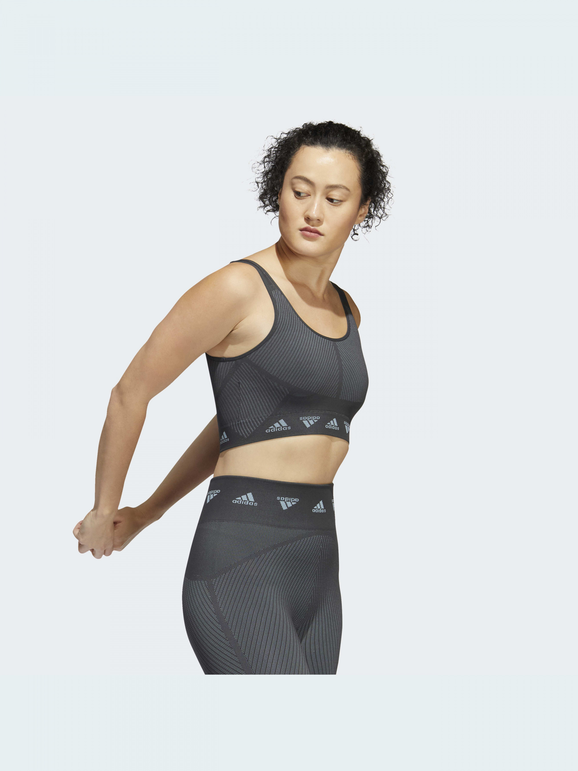 Цей спортивний бра adidas AEROKNIT зберігає відчуття сухості та надає впевненості у собі, тому підходить і для бікрам-йоги, і для піших походів у спекотні дні. Модель комфортно облягає та забезпечує легку підтримку під час занять низької інтенсивності. Безшовна конструкція знижує ризик подразнення шкіри та появи натертостей.