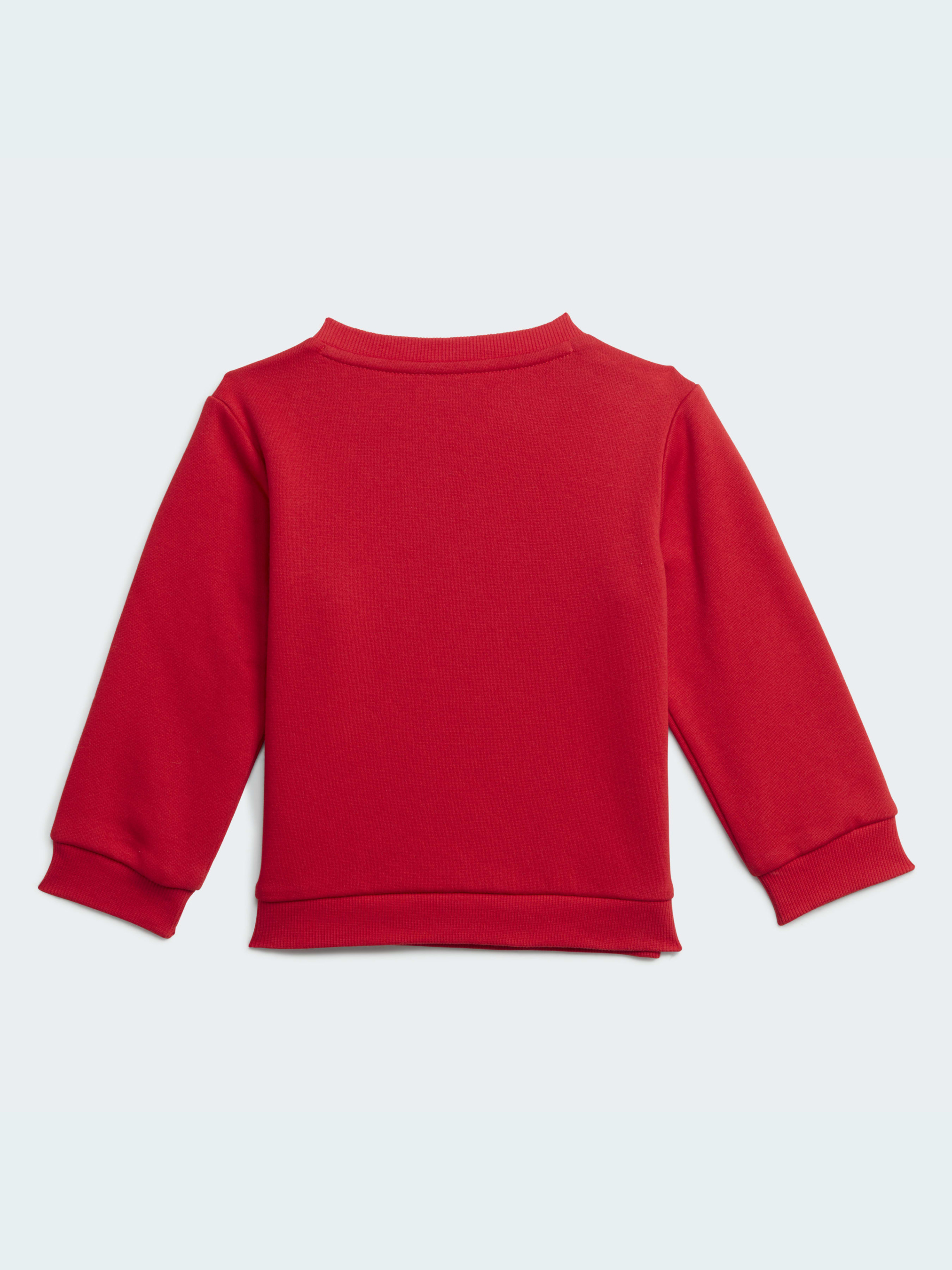 Твій малюк любить дивитися, як ти тренуєшся? Одягни на нього цей комплект і займайтеся разом. Три смужки на штанинах і великий логотип adidas на джемпері створюють відчуття, що поруч з тобою велика спортивна зірка. Що сьогодні за планом? Грати цілий день. Купуючи наш бавовняний одяг, ти підтримуєш більш екологічне вирощування та обробку бавовни. Модель виконана із перероблених матеріалів в рамках наших зобов'язань по скороченню пластикових відходів.