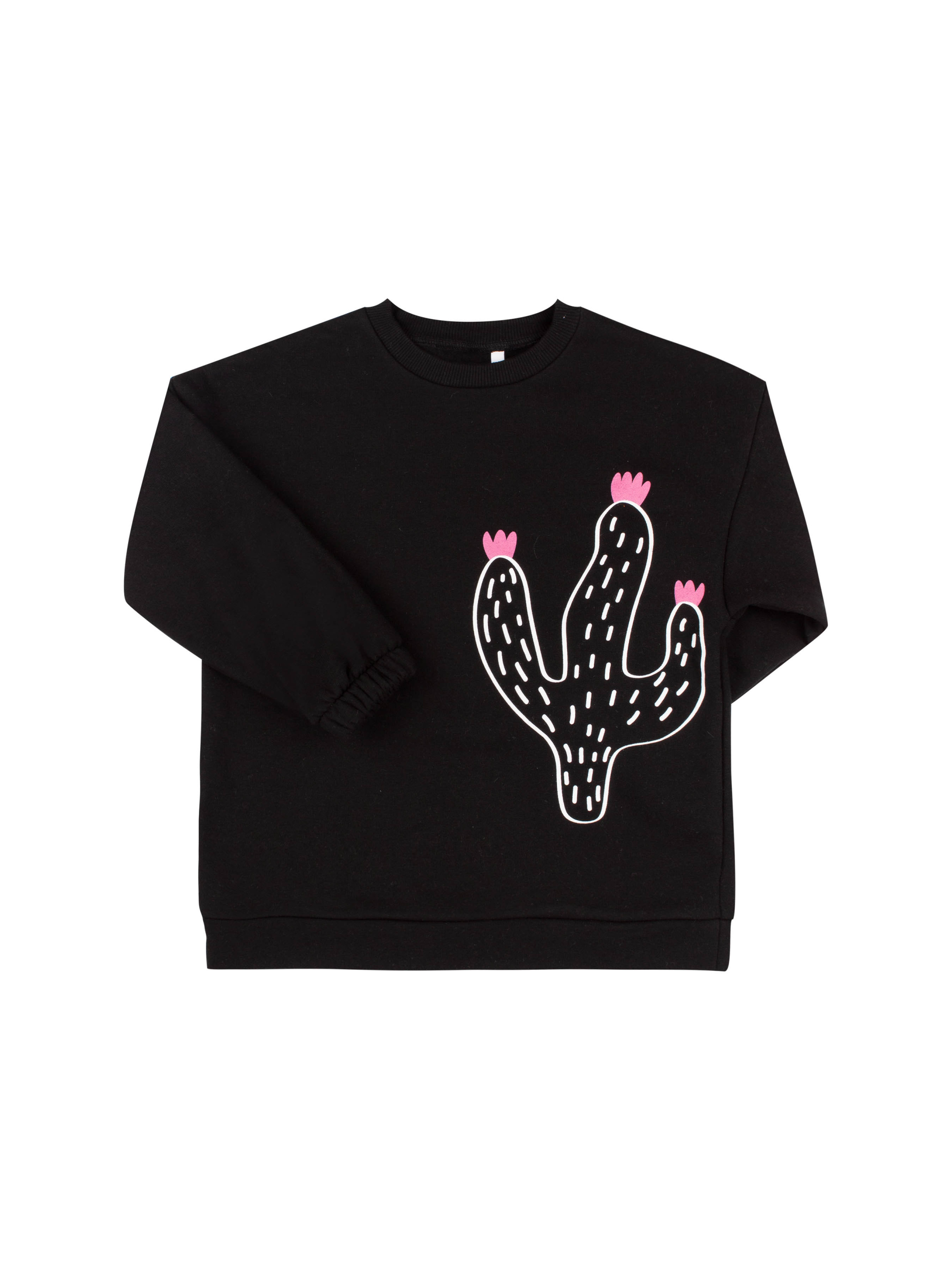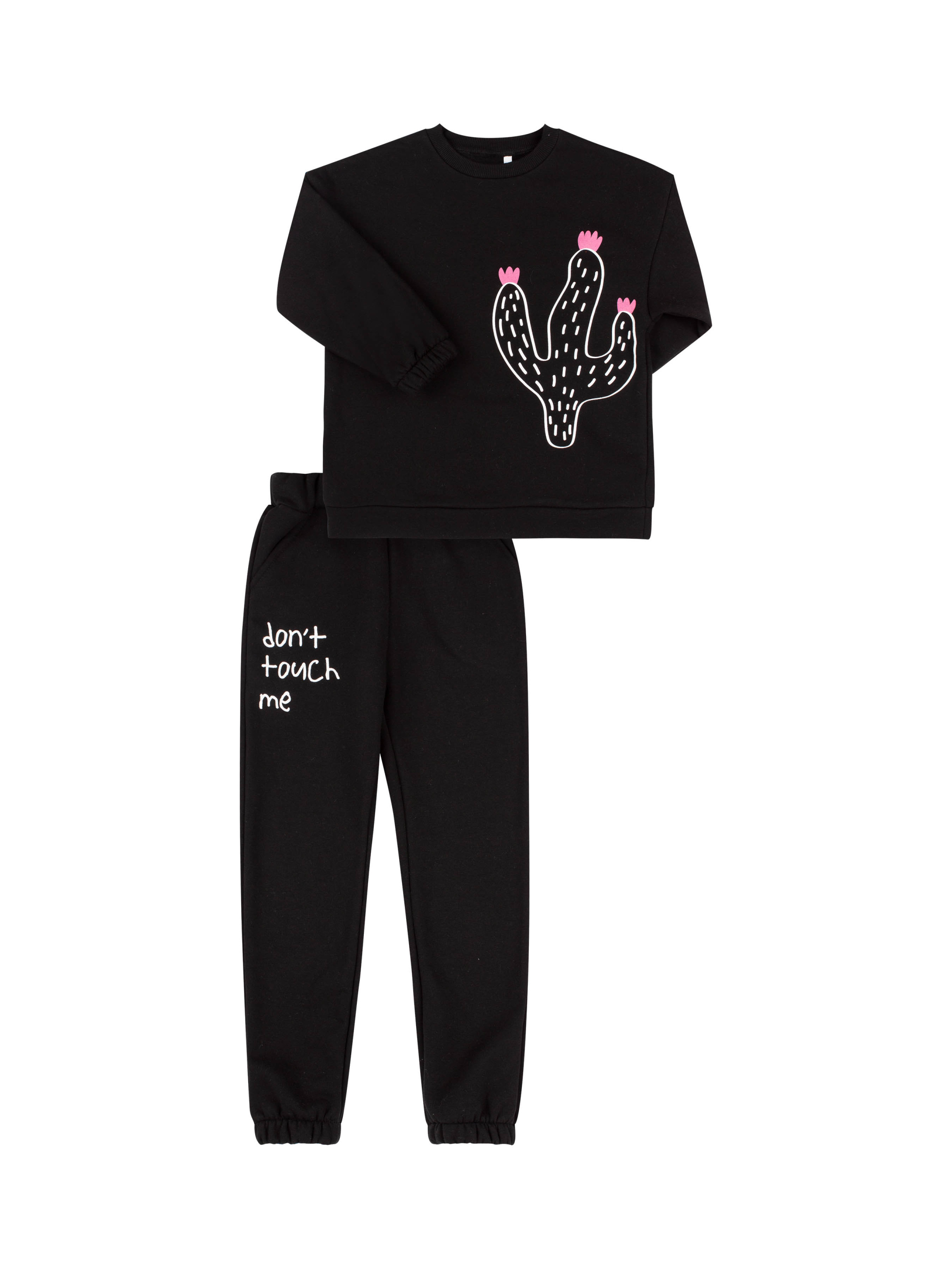 Костюм з друком. Модель з трикотажу утепленого флісом. Джемпер із подовженим плечем, довгим рукавом та круглою горловиною. Манжети рукава та горловина із качкорси. По низу джемпера манжет із основної тканини. Штани з кишенями, пояс та низ штанів на резинці.