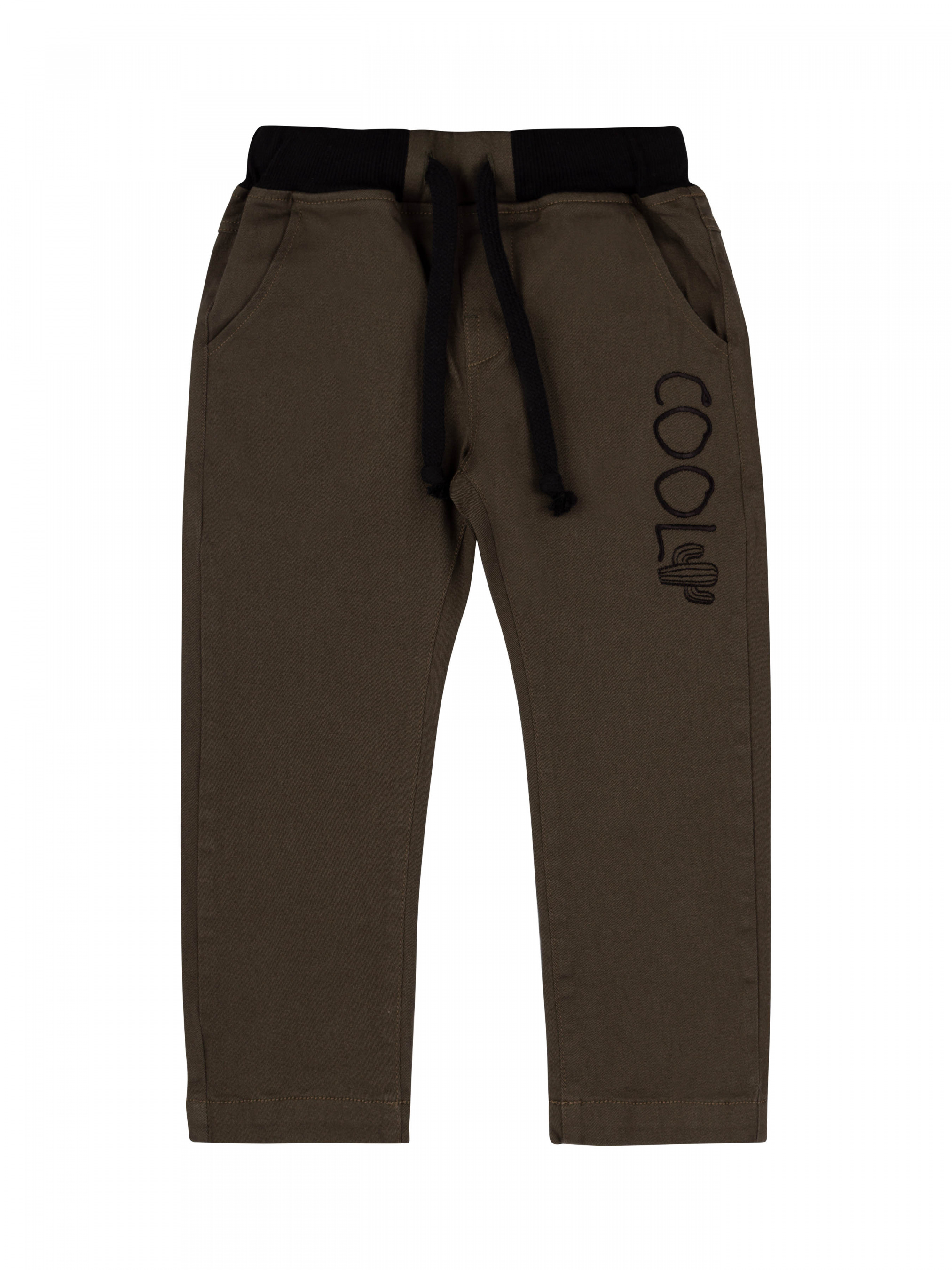 Штани котонові для хлопчика. Пояс з качкорси, на резинці, має декоративну бавовняну тасьму в колір котону. .Крій прямий, тканина дещо тягнеться.