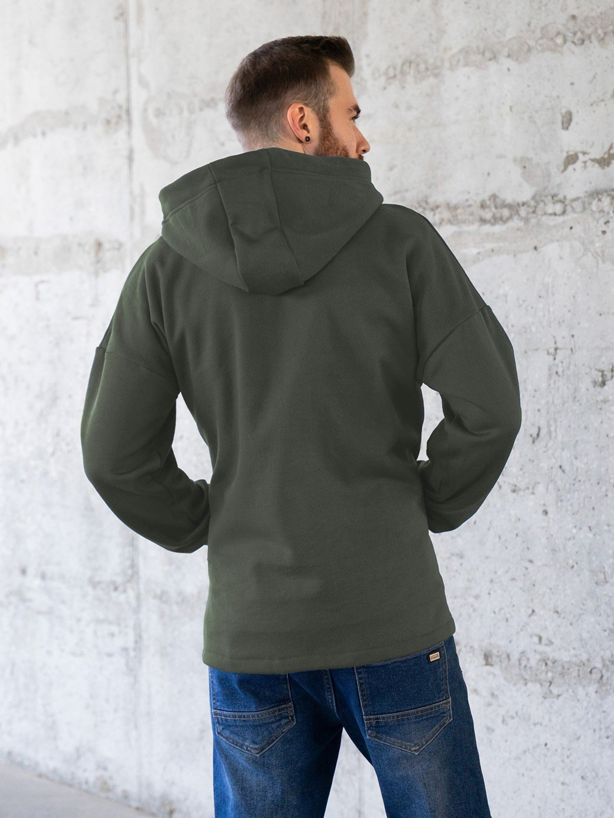 Вільне худи на блискавці виконане з утепленого трикотажу на флісі кольору хакі з патріотичними написами. Модель із тасьмою на захисному капюшоні та кишенями оснащена довгими рукавами. Склад: 50% бавовна, 50% поліестер. Матеріал: Трикотаж на флісі. Напівобхват: Груди: S(56), M(58), L(60), XL(62), Довжина виробу - 76, Рукав - 52, Тканина: Середньої еластичності.