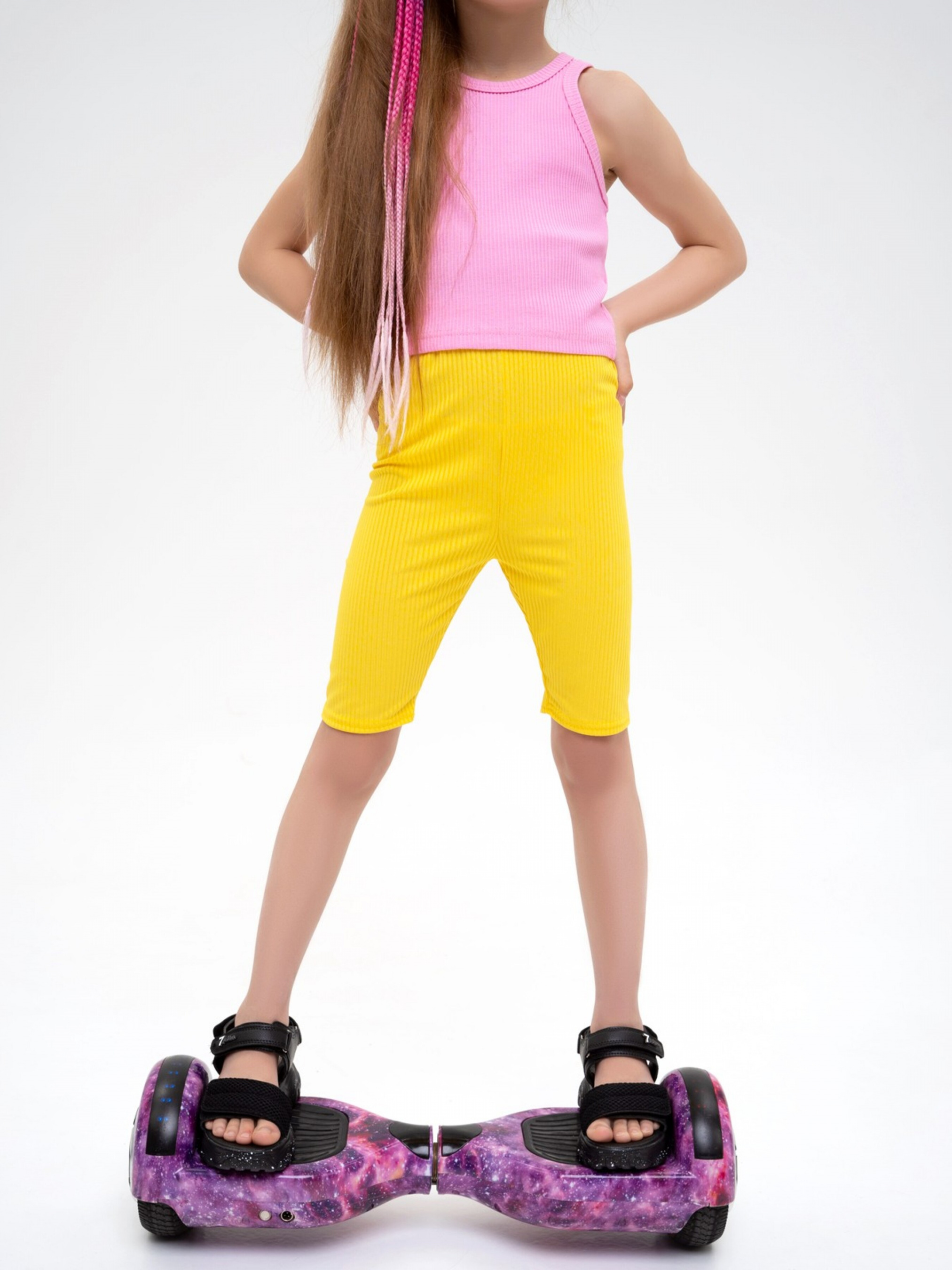 Жовті велосипедки у рубчик. Склад: 95% бавовна, 5% лайкра. Матеріал: трикотаж. Напівобхват: Талія: 128 (23-30), 134 (24-31), 140 (25-32), 146 (26-33), 152 (27-34), 158 (28-35), Стегна: 128 ( 32), 134 (33), 140 (34), 146 (35), 152 (36), 158 (37), Довжина виробу (128) - 41, Тканина - Висока еластичність.