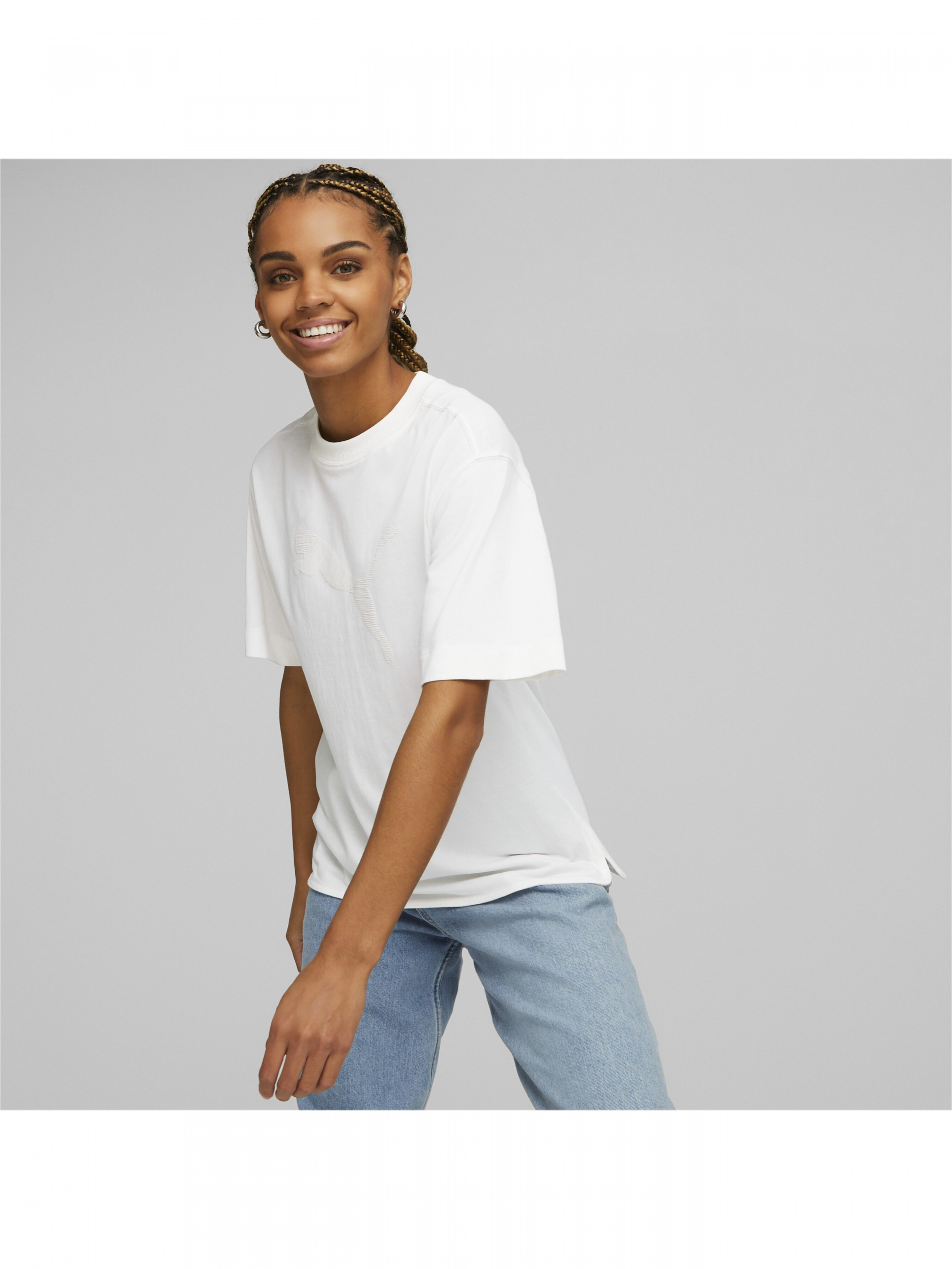 Ми взяли нашу класичну футболку вільного крою й оновили її спеціально для лінійки HER. Великий об’ємний замшевий принт на грудях ідеально підходить для створення образу, у якому поєднуються котяча грація й зухвалість. Деталі: Колекція: Весна-Літо 2023 Стиль:Спортивний Характеристики Склад: 75% бавовна, 25% перероблена бавовна Вміст перероблених матеріалів: Виготовлено з переробленого матеріалу щонайменше на 20% і втілює крок уперед, до кращого майбутнього Бавовна: Бавовна, яку використовують у товарах PUMA, надходить із ферм зі стійким способом ведення сільського господарства, з ефективним використанням води й підтримкою здоров’я ґрунту. Дізнайтеся більше на сайті https://about.puma.com/forever-better Круглий виріз Низ із закругленими розрізами з боків Об’ємний замшевий принт логотипа PUMA Cat на грудях Вільна посадка Країна-виробник: Бангладеш