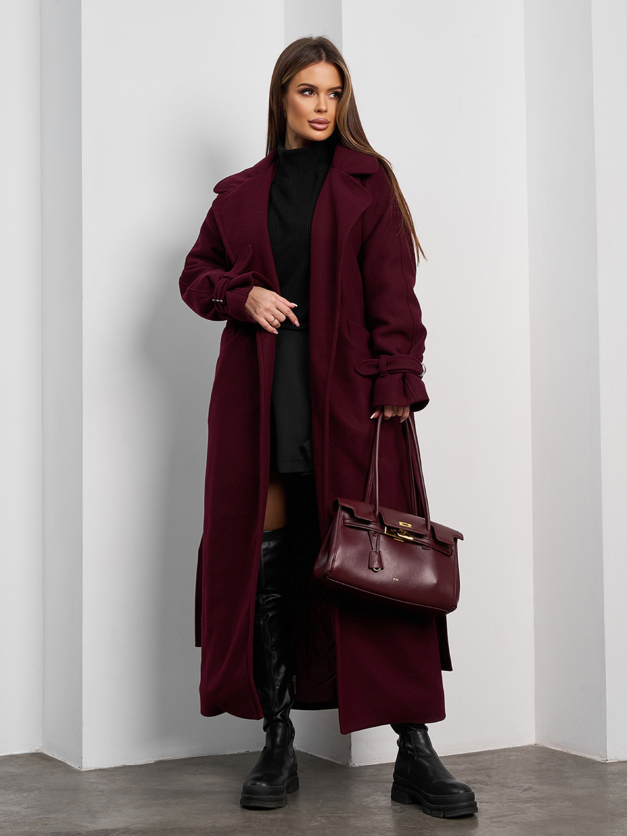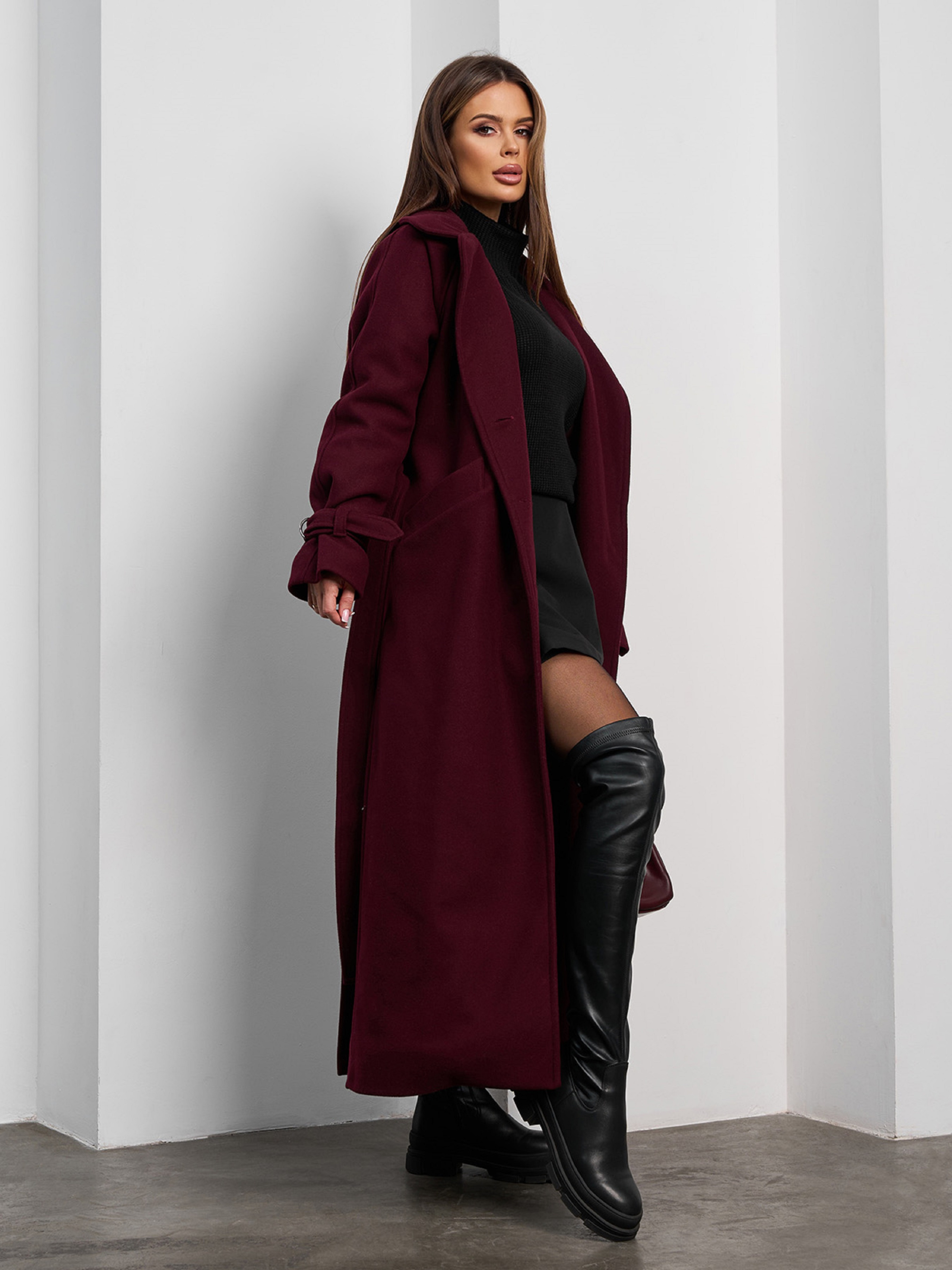 Пальто з утеплювачем ISSA Plus модель 15377_темно-бордовый
