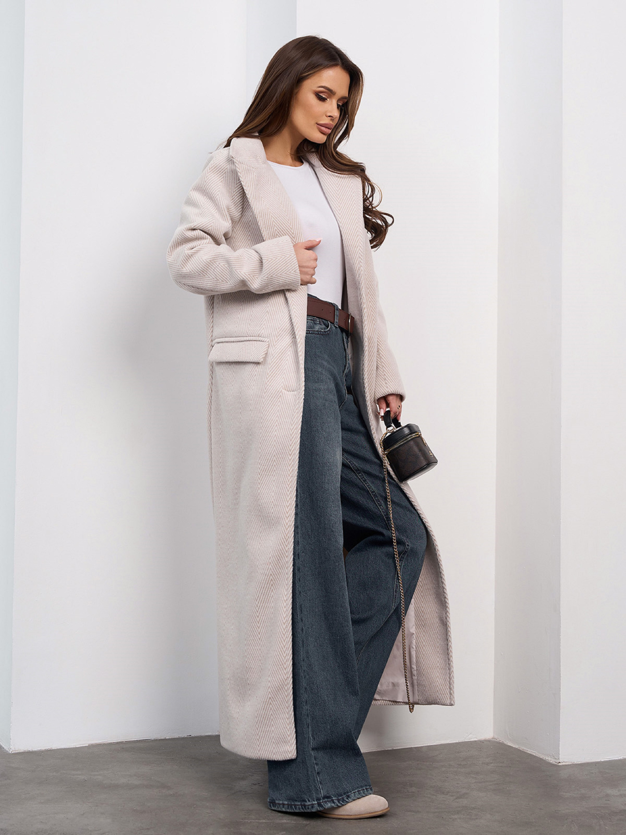 Кашемірове демісезонне пальто прямого класичного крою з максі довжиною і заднім розрізом. Пальто з кишенями, декоративною листочкою та нижньою підкладкою. Виріб з довгими рукавами, декорованими розрізами. Напівобхват: Груди: S (48), M (50), L (52), XL (54), Талія: S (48), M (50), L (52), XL (54), Стегна: S (48), M (50), L (52), XL (54), Довжина виробу — 129, Рукав — 60, Тканина: Низької еластичності.