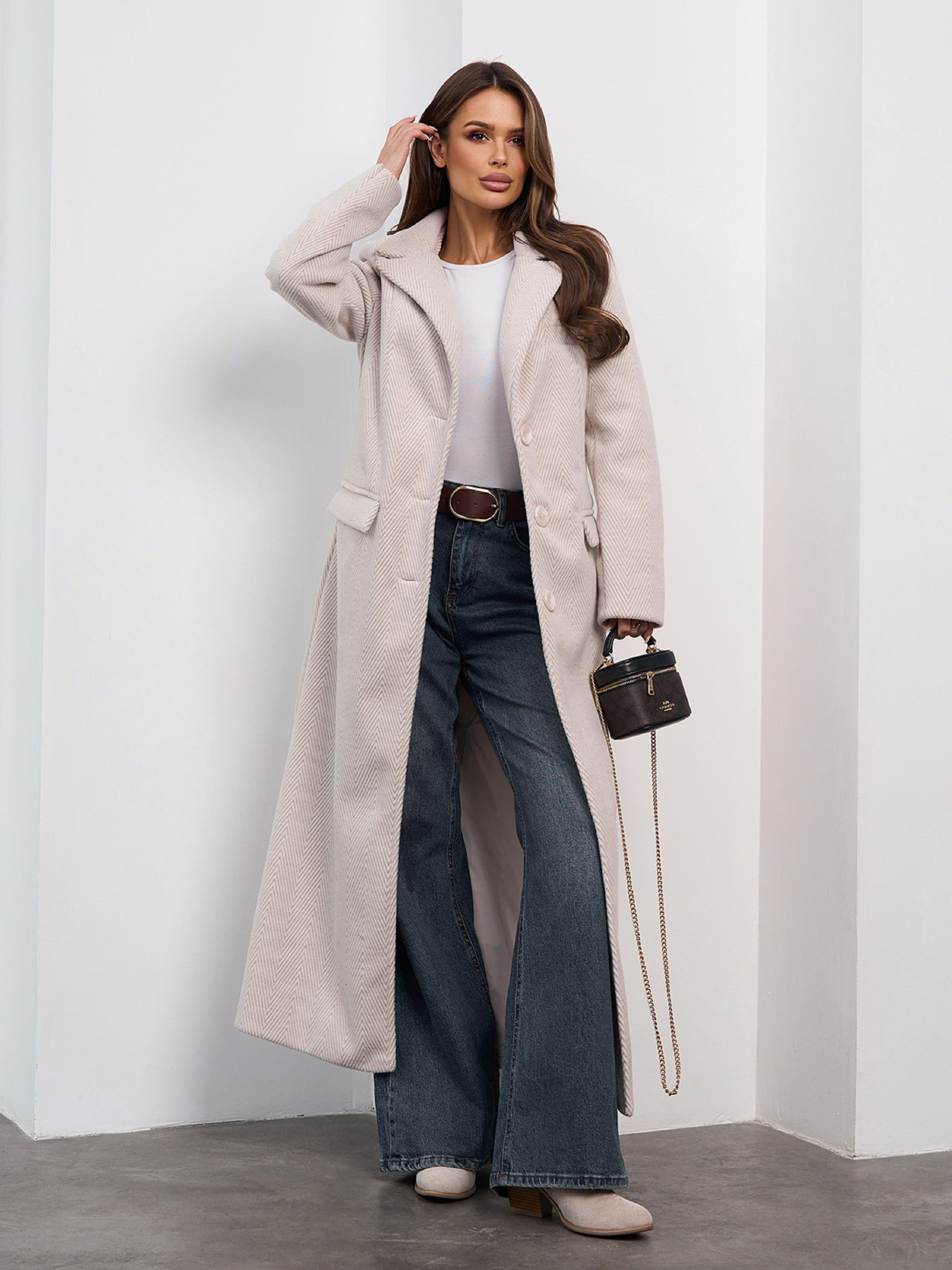 Пальто ISSA Plus модель 15472_светло-бежевый