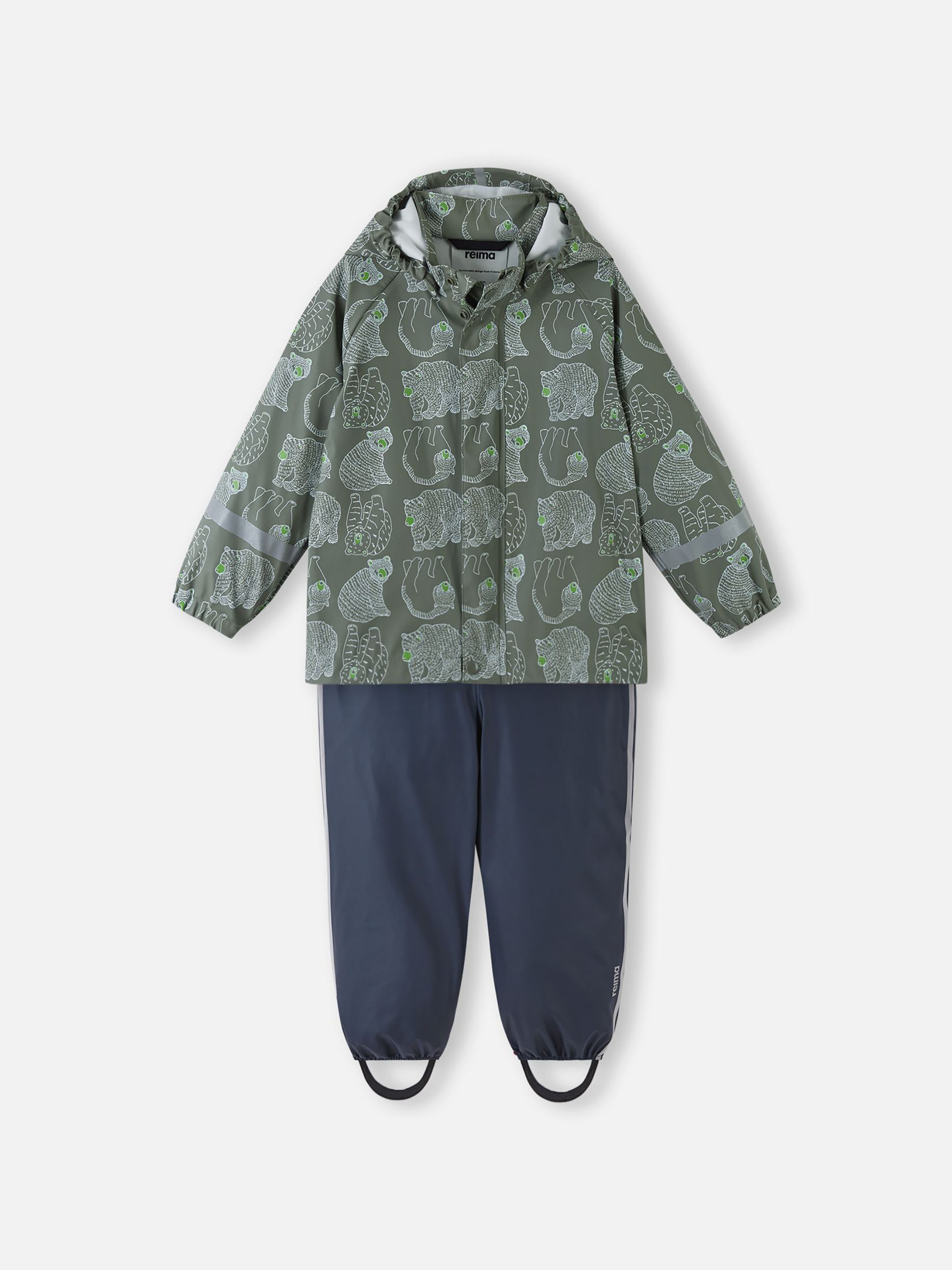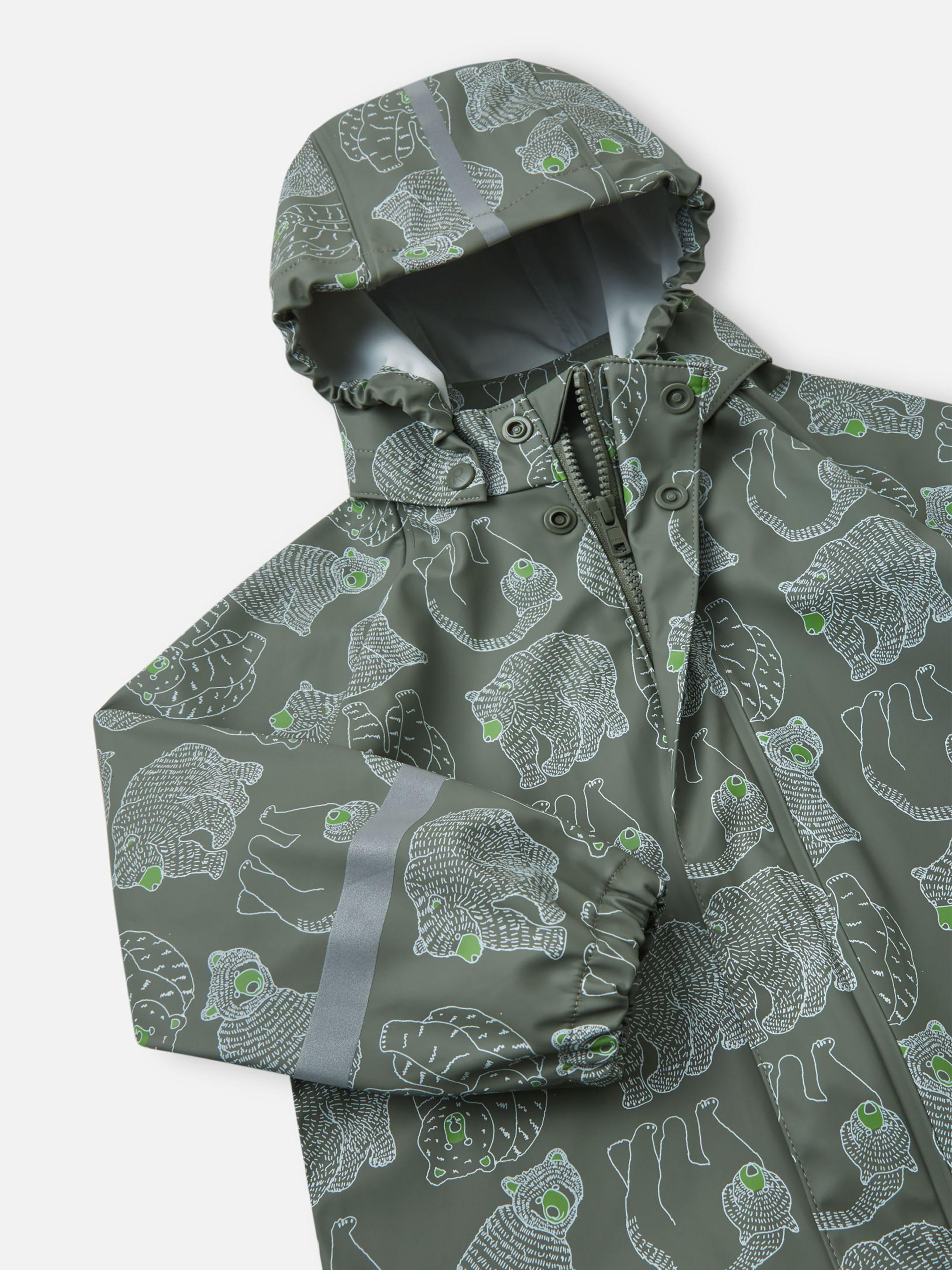 Склад: 100% поліестер, з поліуретановим покриттям Показник водонепроникності, мм: >10000 Показник проклейки швів: усі Водовідштовхувальний і брудовідштовхувальний матеріал Не містить ПВХ Перероблений матеріал (матеріал, що переробляється) Світловідбивні деталі Світловідбивні детали Водонепроникні, запаяні шви|Безпечний знімний капюшон|Еластичні манжети|Блискавка спереду|Суцільний принт|Деталі, що відбивають світло|Містить перероблені матеріали|Не містить ПВХ Догляд: Прати окремо, вивернувши навиворіт. Застебнути блискавки та липучки. Прати миючим засобом, що не містить відбілюючих речовин. Полоскати без спеціального засобу. Щоб уникнути зміни кольору, виріб необхідно вийняти з пральної машинки відразу після закінчення програми прання. Сушити за низької температури.