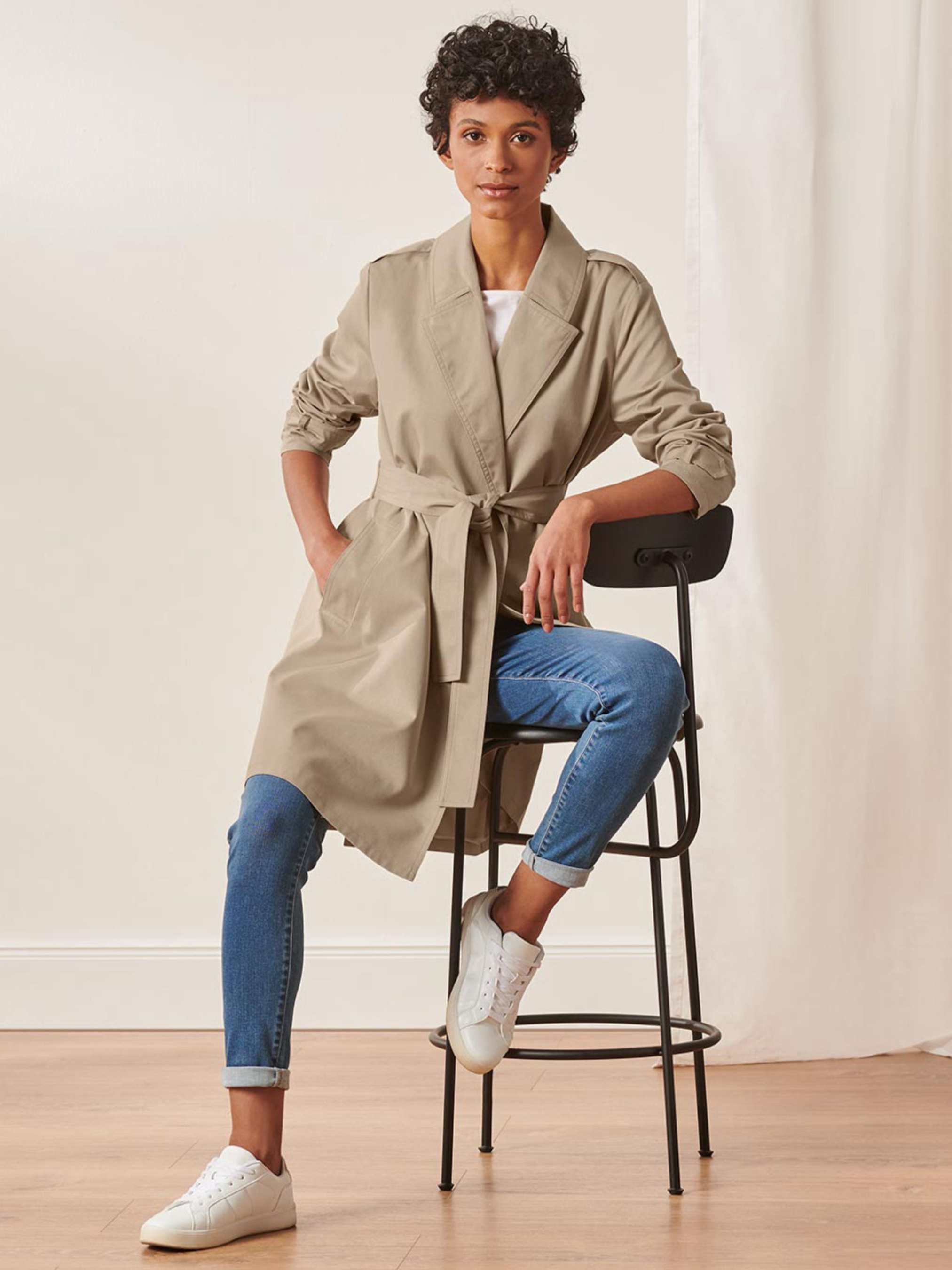 Комфортна та еластична якість. Знімний пояс на зав'язці. 2 кишені спереду. Декоративні лямки на манжетах і плечах. Спинка з коробчатою складкою для оптимальної свободи рухів. Пальто з відкладним коміром. Перевірено на вміст шкідливих речовин – сторонніми акредитованими інститутами. Зверніть увагу, вказано розміри за Євро шкалою (Український розмір = Євро + 6) Склад :50% бавовна, 50% поліестер.Підкладка 100% поліестер. Розмір: 44-46 (38 євро) ПОГ: 54 см, Довжина рукава: 61 см, Довжина: 91 см. Одяг бренду TCM Tchibo практично весь без паперових етикеток, за рідкісним винятком, і зі зрізаними частково або повністю внутрішніми бірками і ярликами зі складом тканини та іншими даними