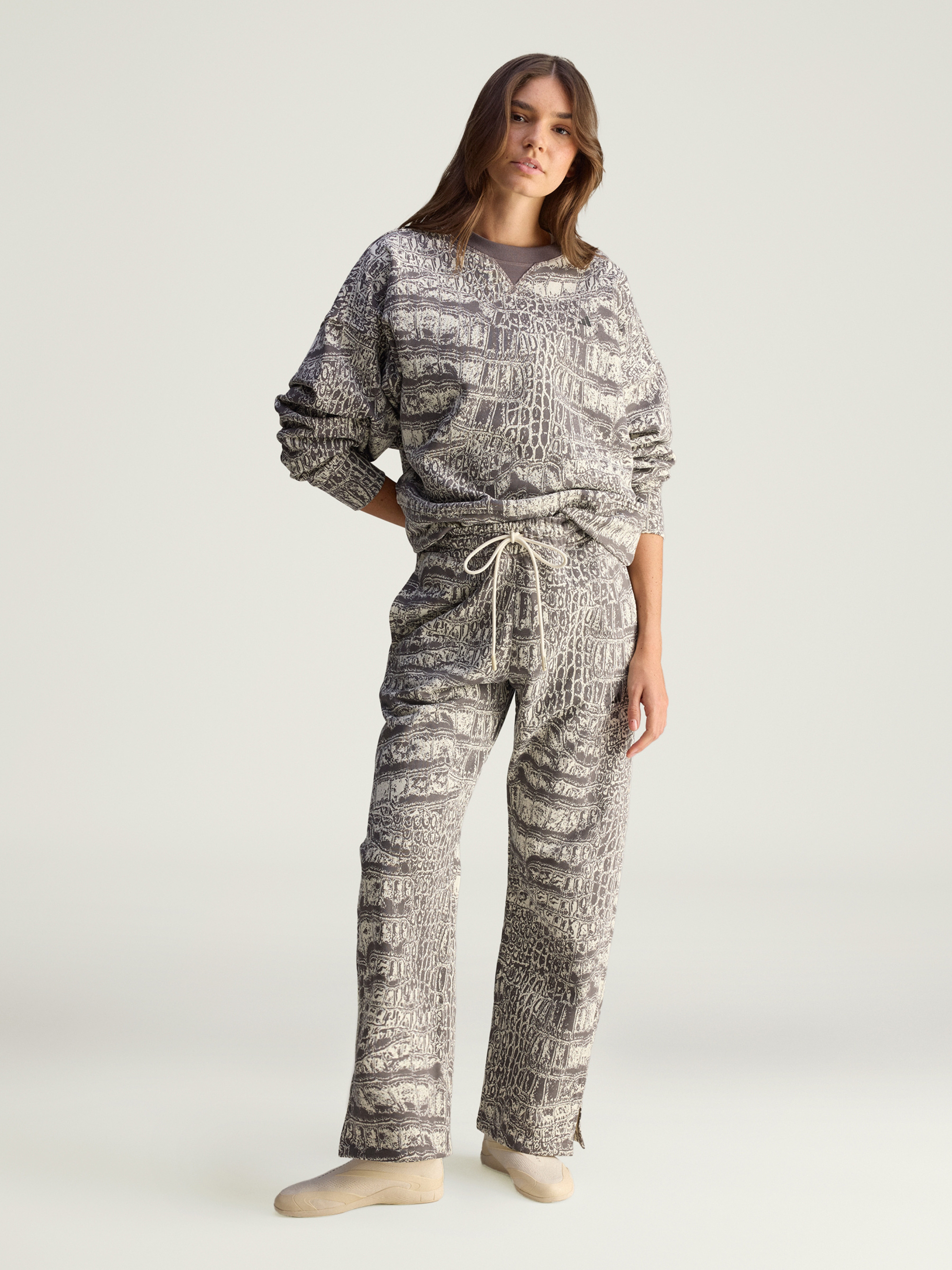 Характеристики 100% органічна бавовна Зав'язки-шнурки Стандартний крій Опис Будь стильною навіть під час відпочинку. Штани adidas by Stella McCartney створені для тих, хто обирає комфорт без компромісів зі стилем. Вільний крій з елегантними розрізами знизу дарує відчуття легкості та свободи в рухах, а виразний принт під крокодилячу шкіру перетворює повсякденний образ на модну заяву. Ідеальні як для прогулянки містом, так і для затишного вечора - ці брюки підлаштовуються під твій настрій і ритм. Універсальність цих брюк означає, що ти можеш носити їх як завгодно і де завгодно.