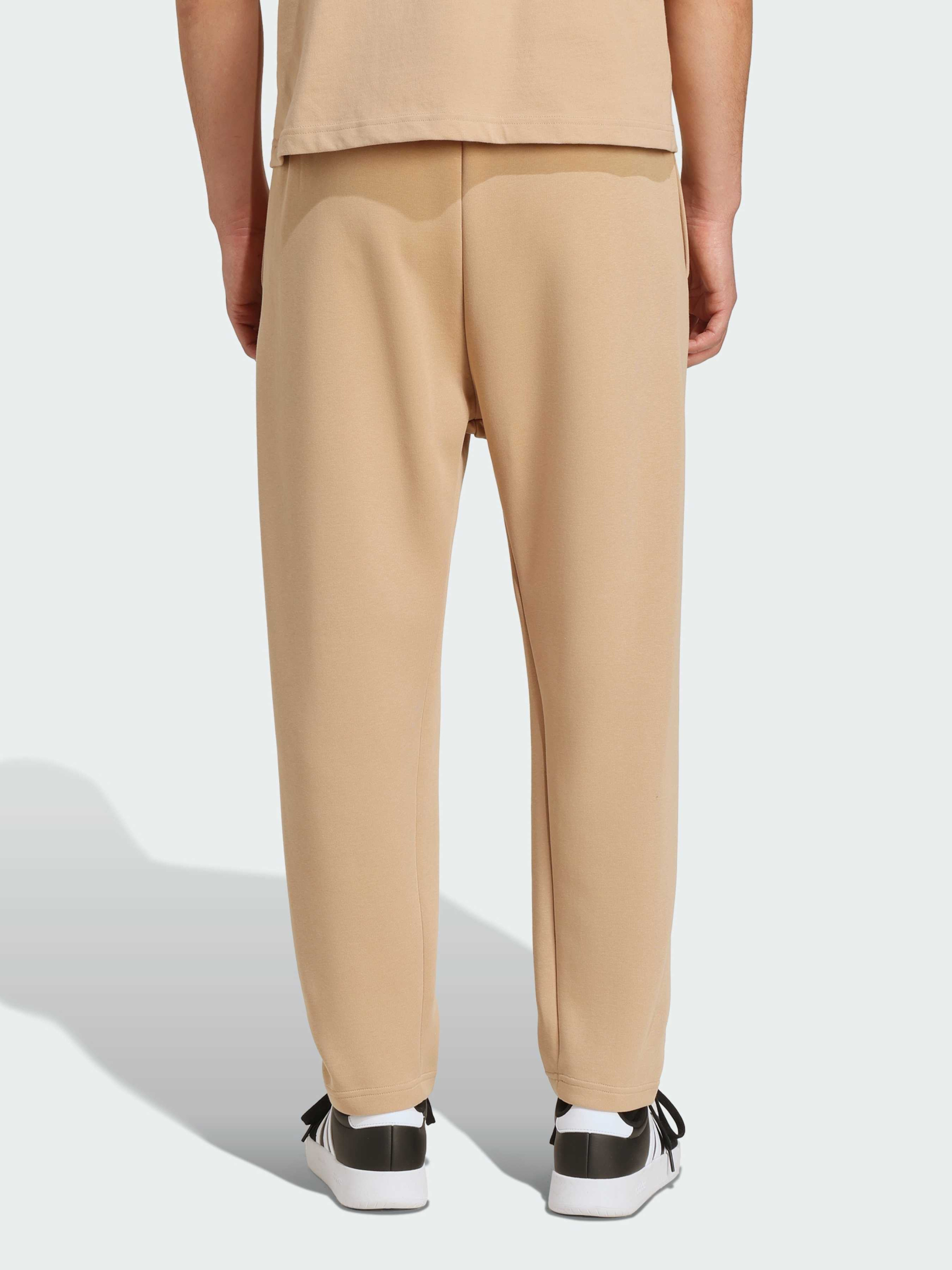 Характеристики 67% перероблений поліестер, 33% бавовна Передні кишені Середня посадка Стандартний крій Еластичний пояс на зав'язках-шнурках Звужений донизу крій Опис Поєднай ці штани adidas з улюбленими кросівками і футболкою, щоб створити простий і невимушений образ. Завужені штанини надають облягаючого вигляду. Дихаюча тканина ідеально підходить як для відпочинку вдома, так і для прогулянок.