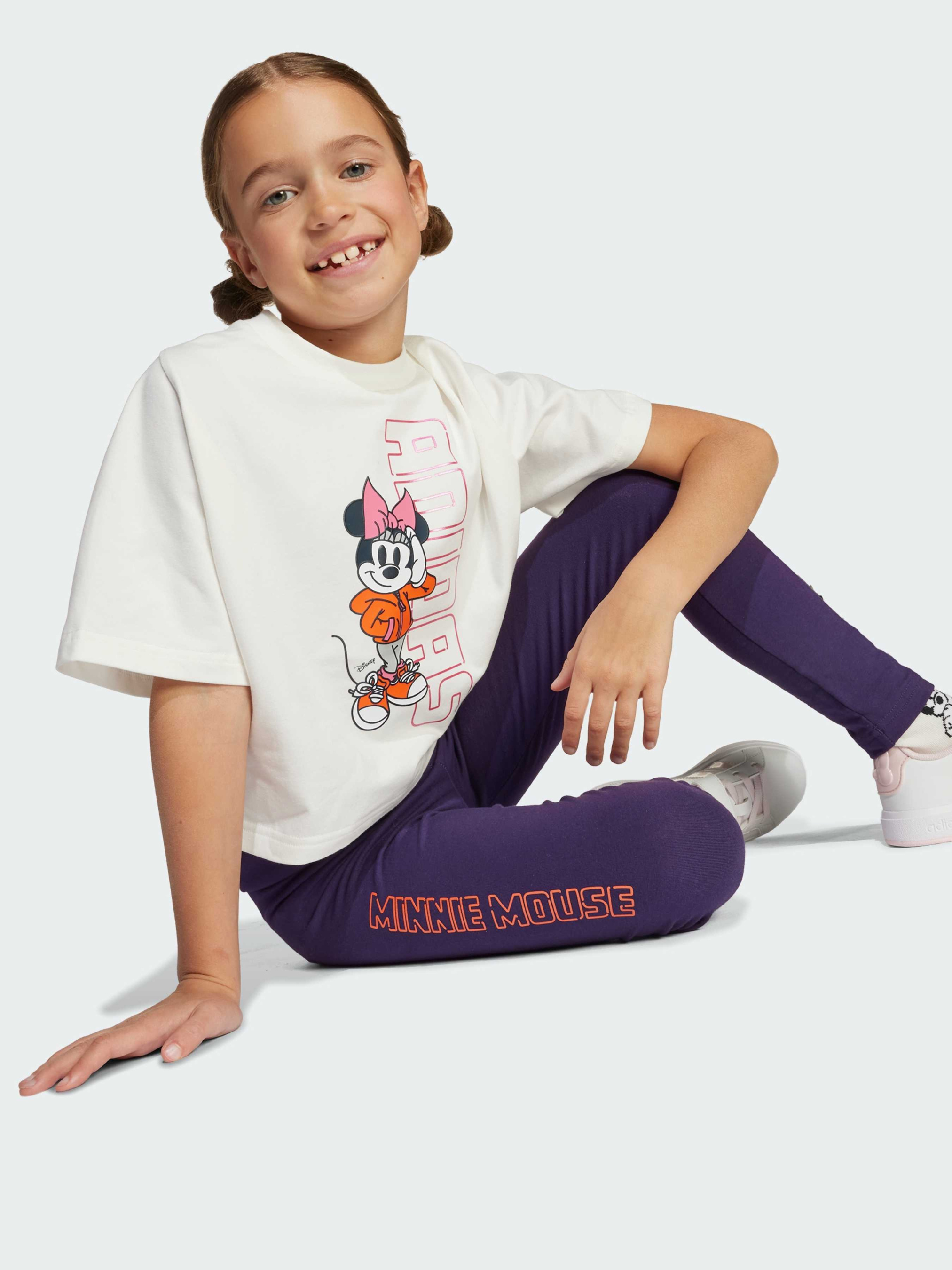 Характеристики 93% бавовна, 7% еластан ©Disney Облягаючий крій Еластичний пояс Опис Ці легінси для дівчаток - ідеальне поєднання комфорту adidas і магії Disney. Модель з еластичного бавовняного матеріалу щільно облягає і відмінно сидить завдяки широкій резинці на поясі - ідеально для активного дня. Яскравий напис «MINNIE MOUSE» вздовж штанини додає образу веселий настрій і сміливий стиль.