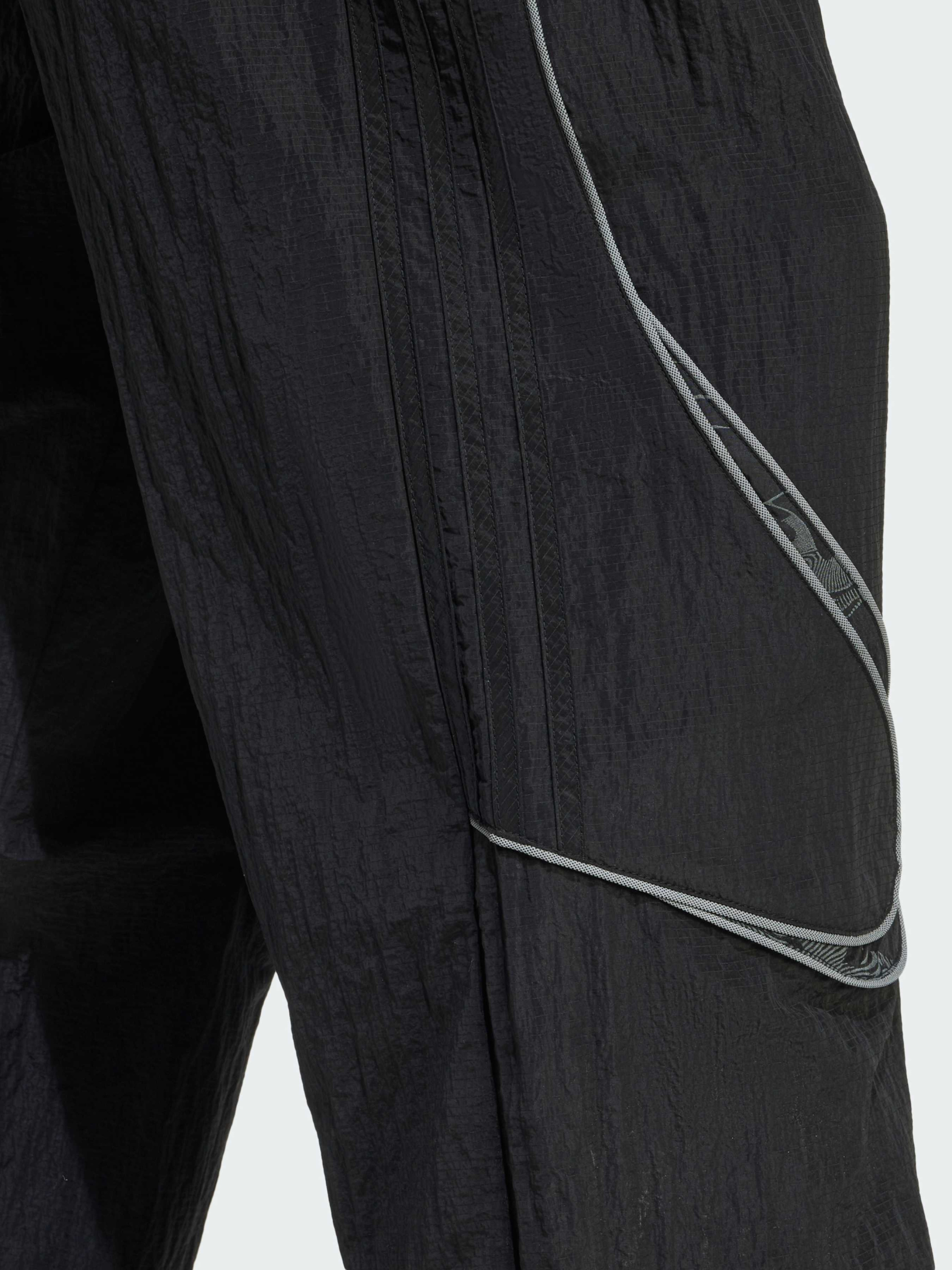 Характеристики 100% перероблений поліамід Зав'язки-шнурки Вільний крій Опис Adilenium Season 4 від adidas Originals занурюється в архіви, щоб переосмислити Teamgeist, культову футбольну лінію, яка зробила революцію на полі. Ці вільні спортивні штани підкреслюють лінію крою Teamgeist світловідбивними смужками та вставками з контрастної тканини зі світловідбивним принтом. Вони доповнені бічними кишенями на блискавці, внутрішнім шнурком на талії та зав'язками на манжетах.