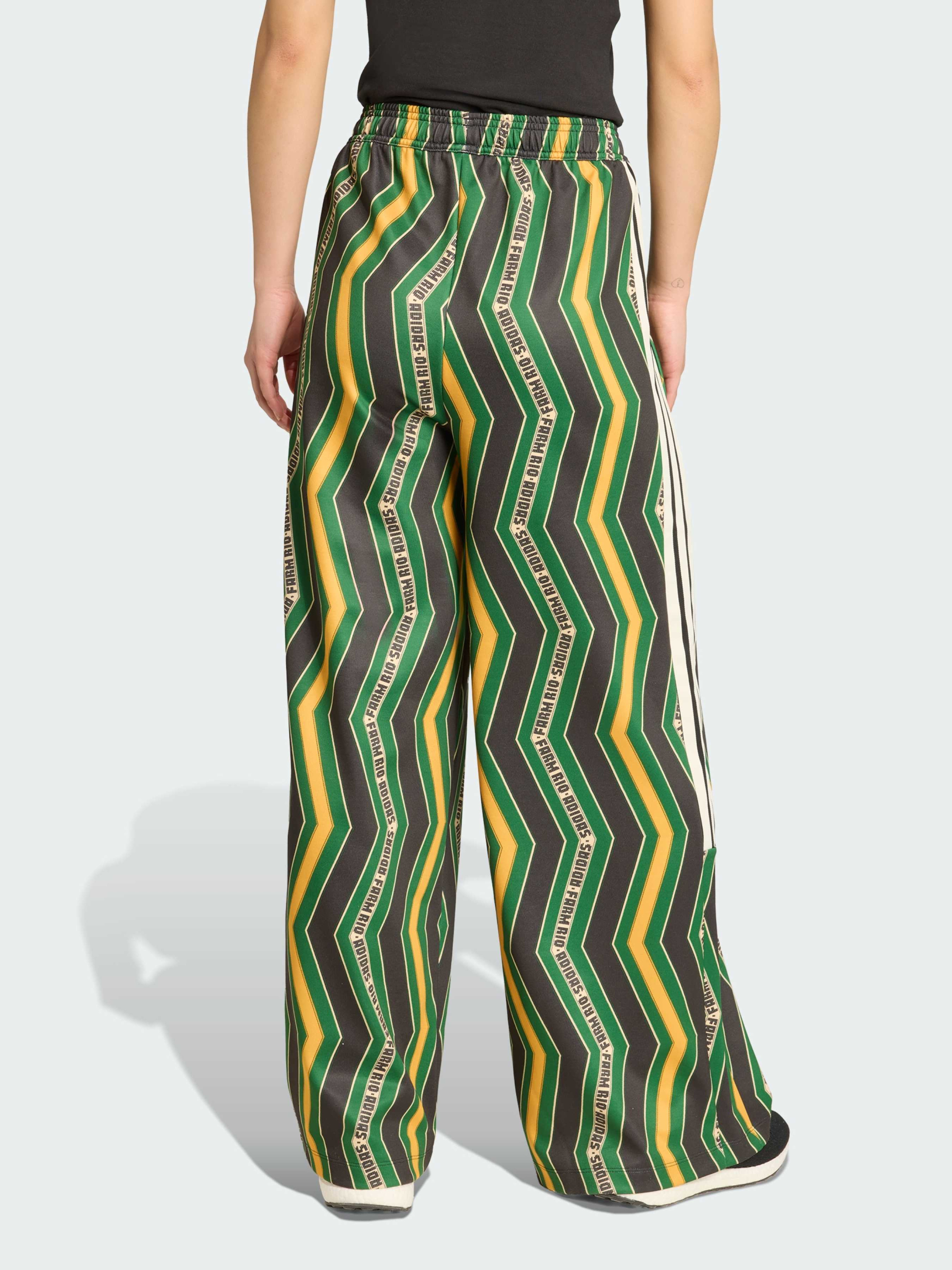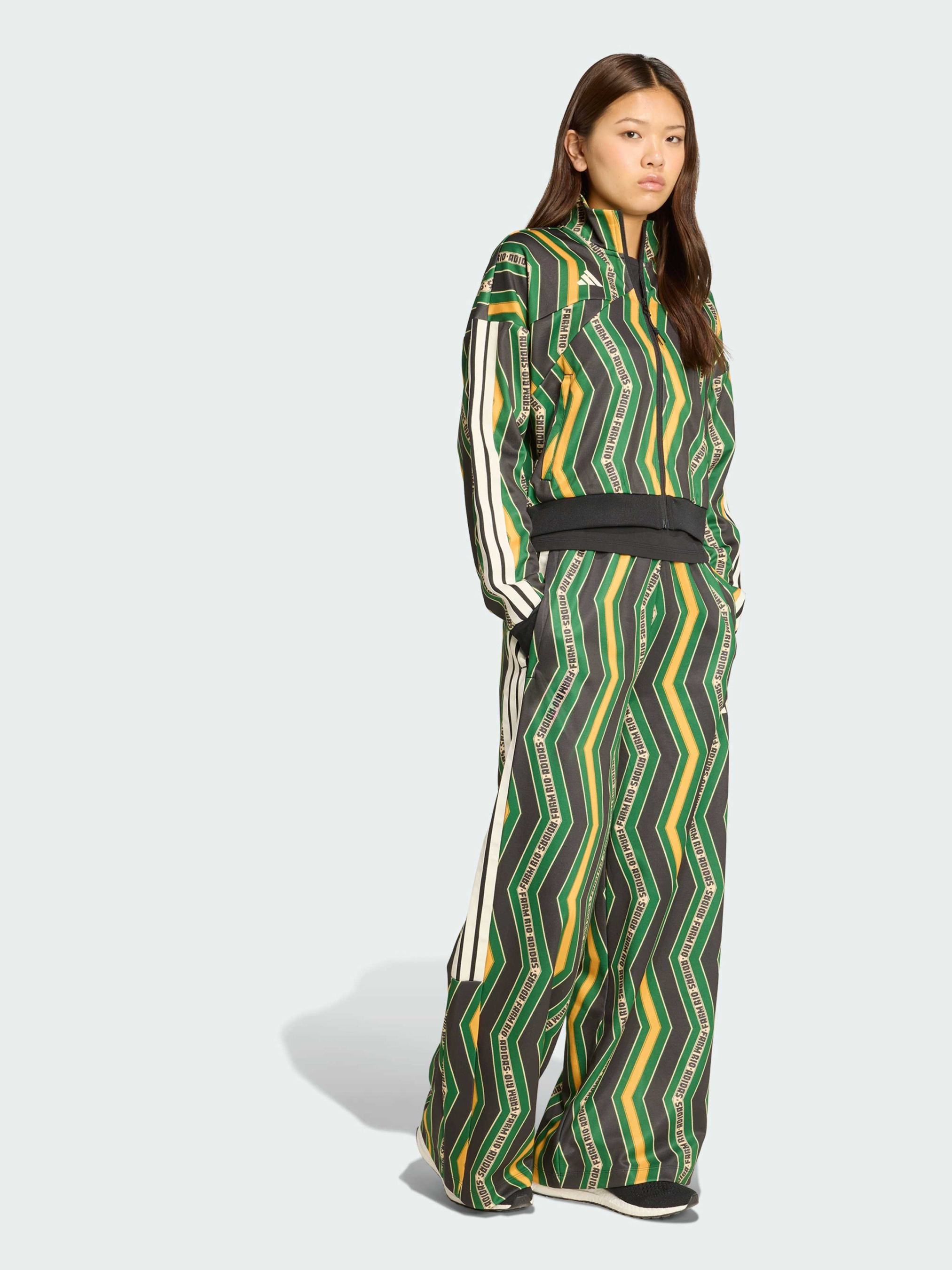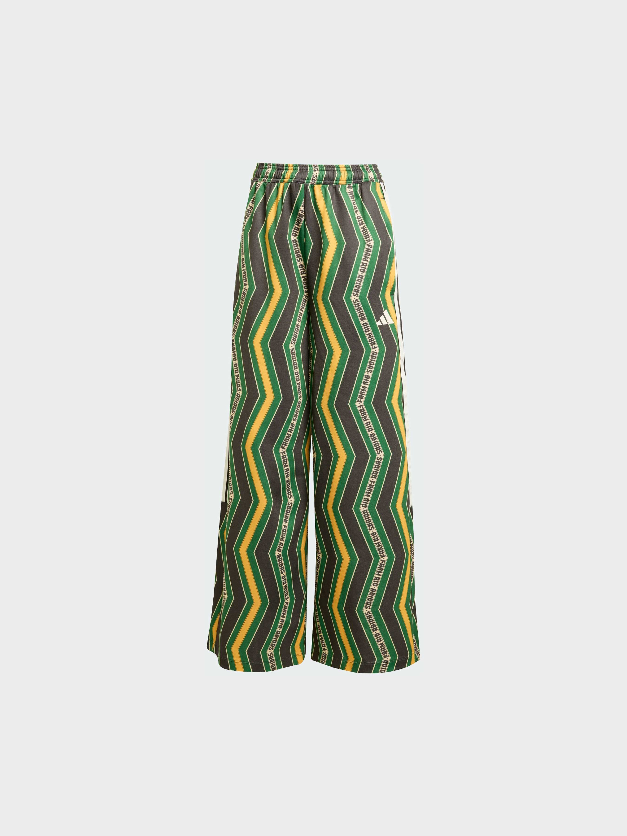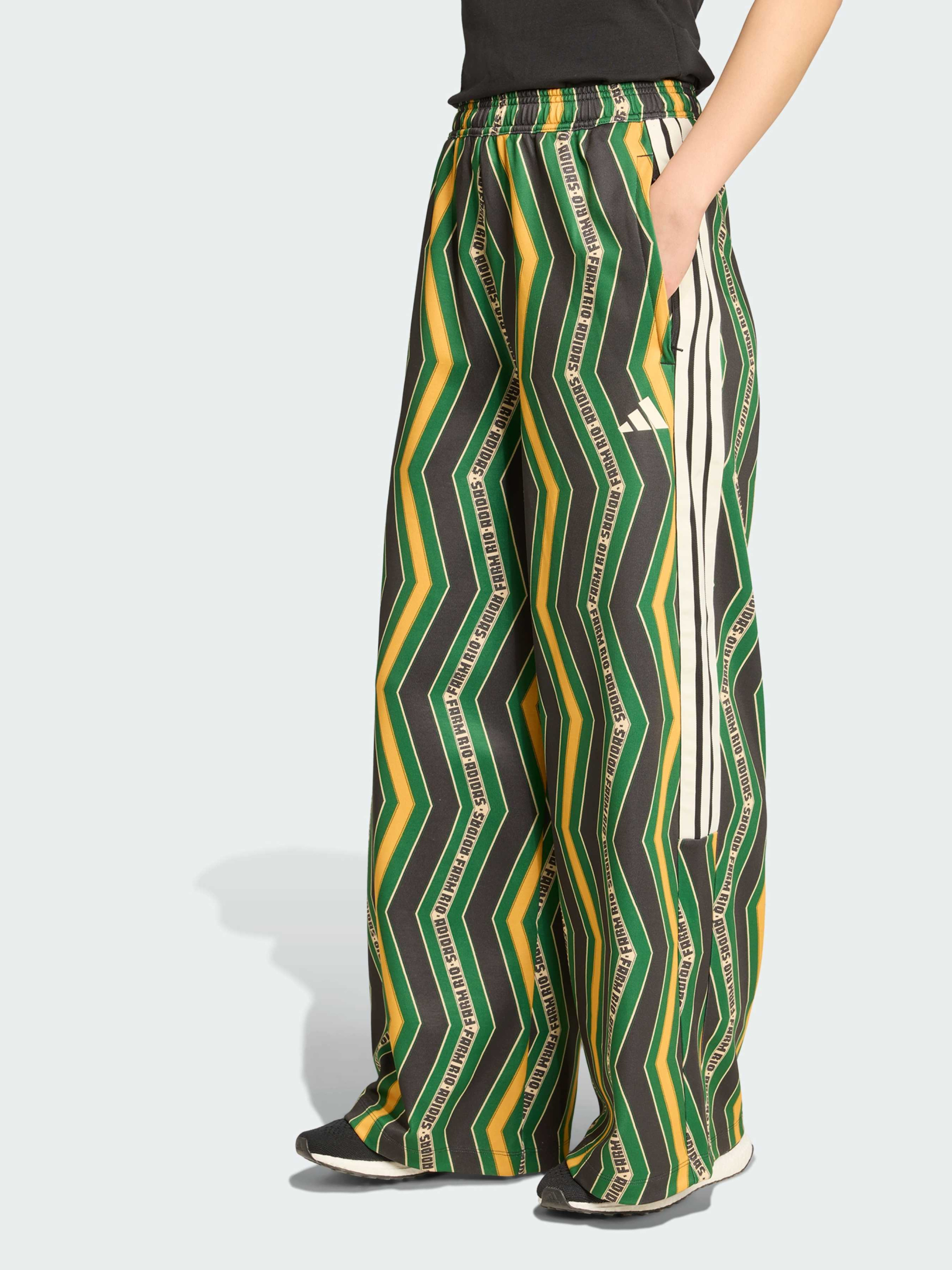 Характеристики 70% перероблений поліестер, 30% бавовна Зав'язки-шнурки Вільний крій Еластичний пояс, висока посадка Опис Штани adidas x FARM Rio натхненні красою і символікою метеликів - символом легкості, свободи і яскравої енергії. Вони поєднують латиноамериканський колорит із сучасним футбольним стилем, створюючи образ, наповнений рухом і впевненістю. Вільний крій і висока посадка забезпечують комфорт, а кольоровий візерунок у смужку додає характеру і відсилку до легендарних трьох смужок adidas. М'який трикотаж приємно відчувається на тілі, даруючи затишок у будь-якій ситуації. Ці штани - втілення жіночності, впевненості і радості життя в стилі adidas x FARM Rio.