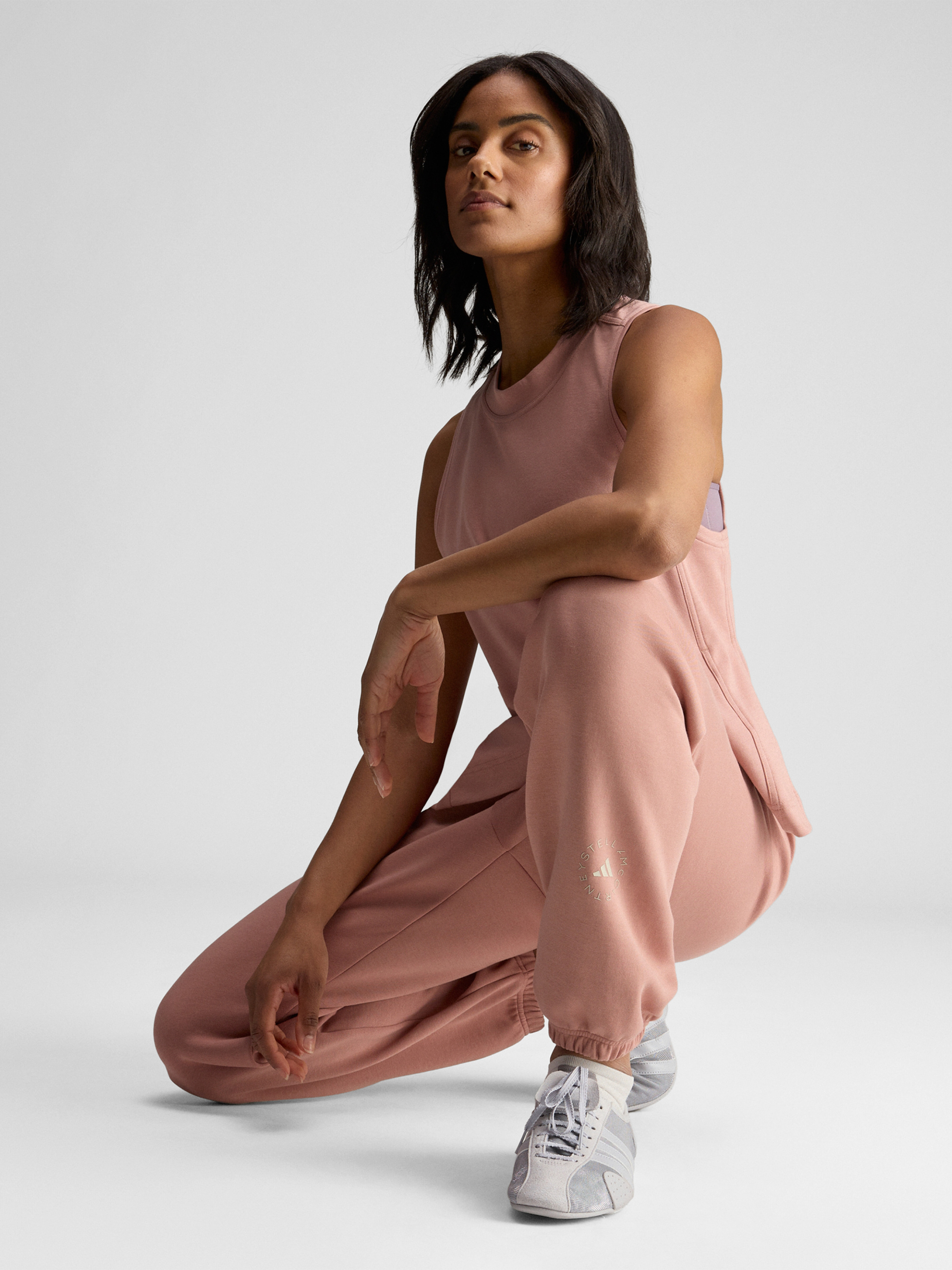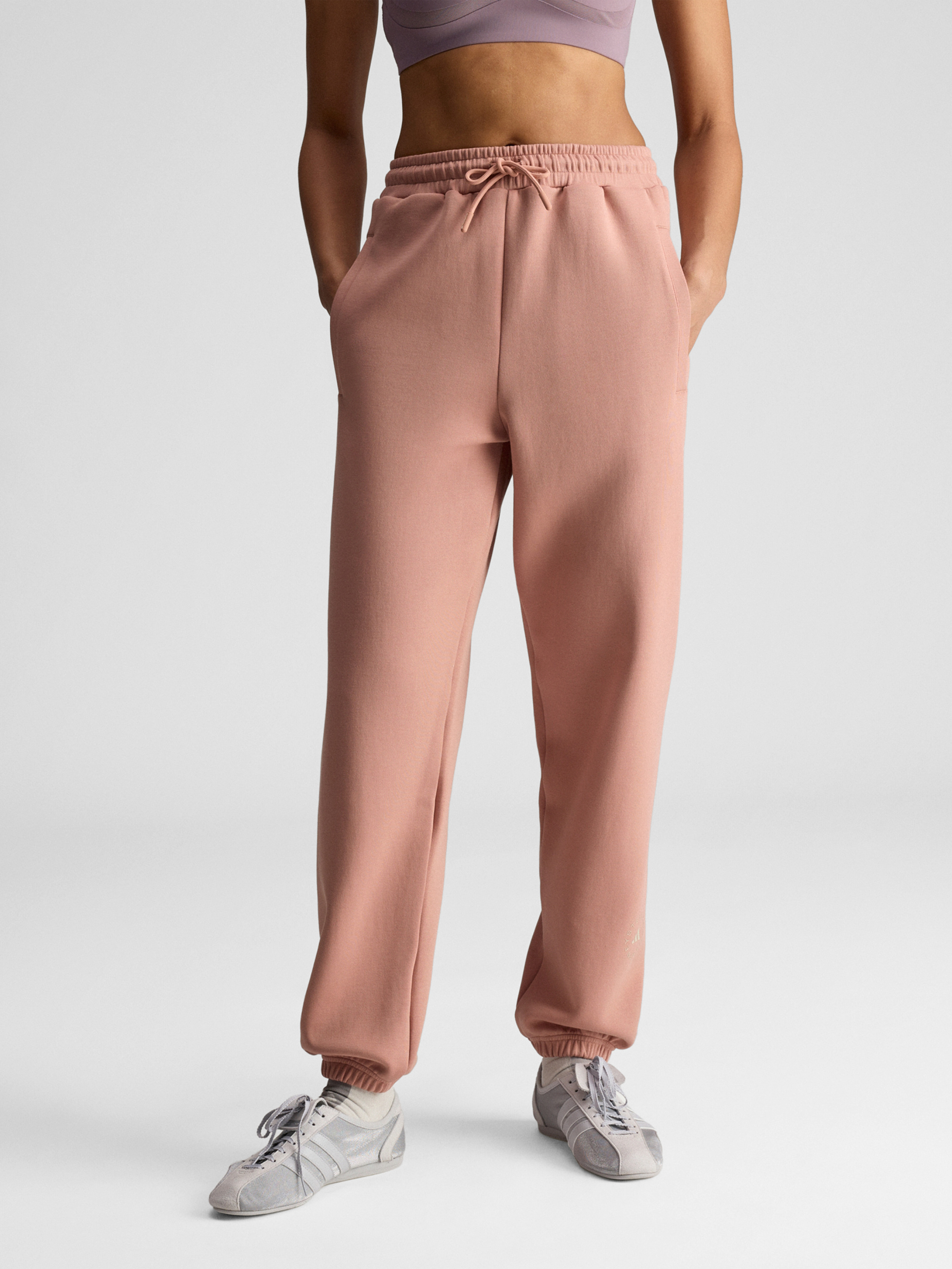 Характеристики 60% органічна бавовна, 40% перероблений поліестер Бічні кишені Вільний крій Штанини з манжетами Еластичний пояс на зав'язках-шнурках Висока посадка Містить щонайменше 70% переробленої та відновлюваної сировини Опис Працюєш вдома або бігаєш у справах, ці штани adidas by Stella McCartney створені для зручності в повсякденному житті. Витончений фасон з м'якого трикотажу, регульований шнурком пояс і манжети внизу підкреслюють вільний крій. Вибираючи вторинну переробку, ми можемо повторно використовувати вже створені матеріали, що допомагає скоротити кількість відходів. Вибір на користь поновлюваних матеріалів допоможе нам позбутися залежності від обмежених ресурсів. Наші вироби, виготовлені з суміші перероблених і поновлюваних матеріалів, містять не менше 70% цих матеріалів.