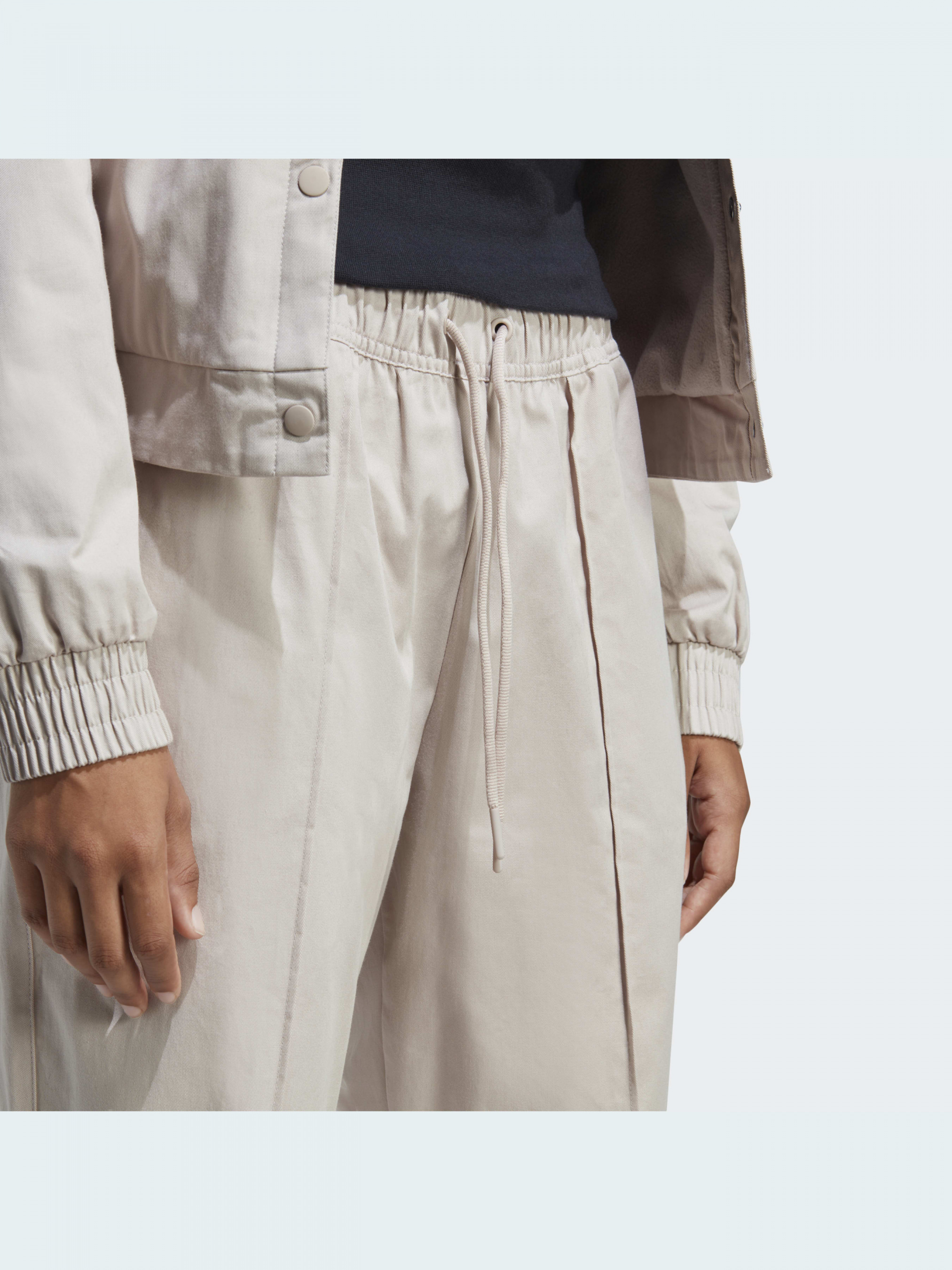Приведи свої думки до ладу і зарядися енергією з цими штанами adidas. Тканина твіл з бавовни додає текстури без шкоди для комфорту. Укорочена довжина та середня посадка забезпечують ідеальний баланс, а вільний крій дозволяє розслабитись, щоб зосередитись на відпочинку. Бічні кишені ідеально підходять для зберігання необхідних речей, а еластичний пояс на зав'язках-шнурках підвищує зручність регулювання.