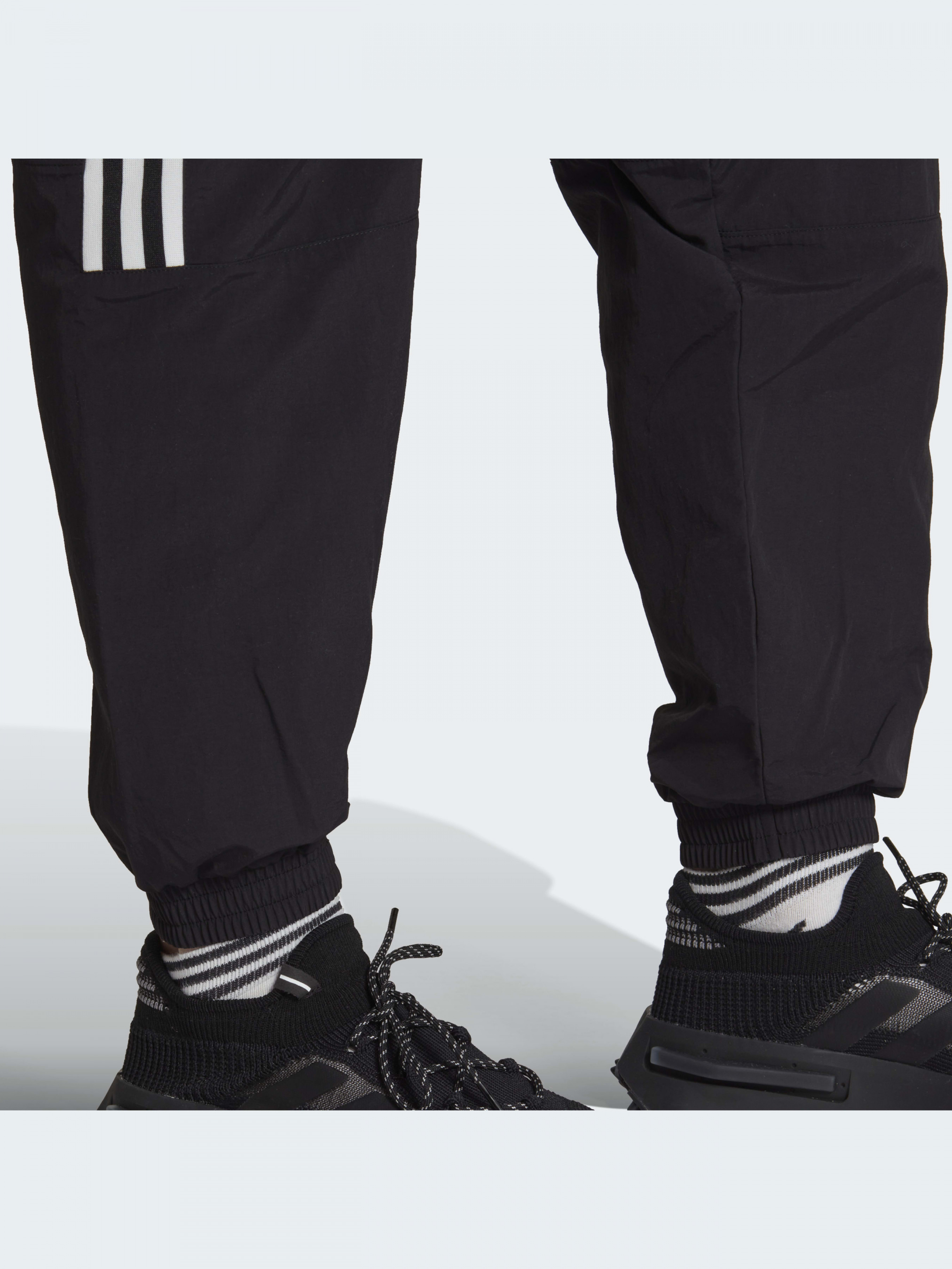 Ти чуєш це? Це шелест спортивних штанів adidas. Заплющ очі й уяви, як хрумтить нейлон при кожному вигині. Народжені під впливом 70-х років, ці штани привносять у твоє життя невмирущий спортивний стиль. Переконайся в цьому сам. Виготовлений зі 100% перероблених матеріалів, цей продукт являє собою лише одне з наших рішень, що допомагають покінчити з пластиковими відходами.