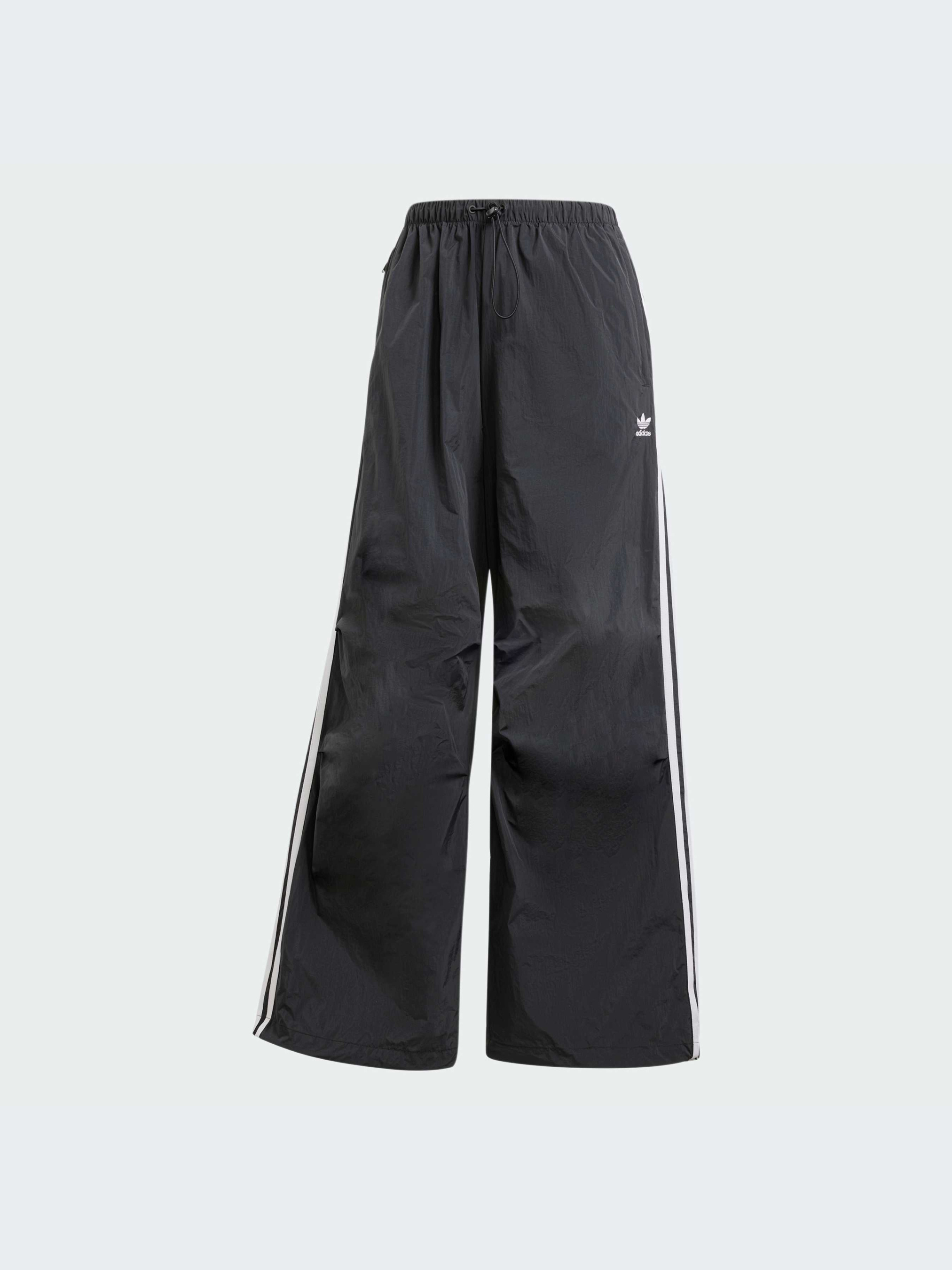 Характеристики 100% нейлон Бічні кишені Краї зі шнурком, що затягується Вільний крій Еластичний пояс Опис Вільні штани-парашути від adidas ідеально підійдуть для активного образу. Знакові три смужки на штанинах підкреслюють спортивний стиль, а гладка тканина забезпечує комфорт. Носи їх з кросівками або сандалями для створення стильного повсякденного спортивного образу. Йде розмір в розмір. Ми радимо замовити цю модель в твоєму звичайному розмірі.
