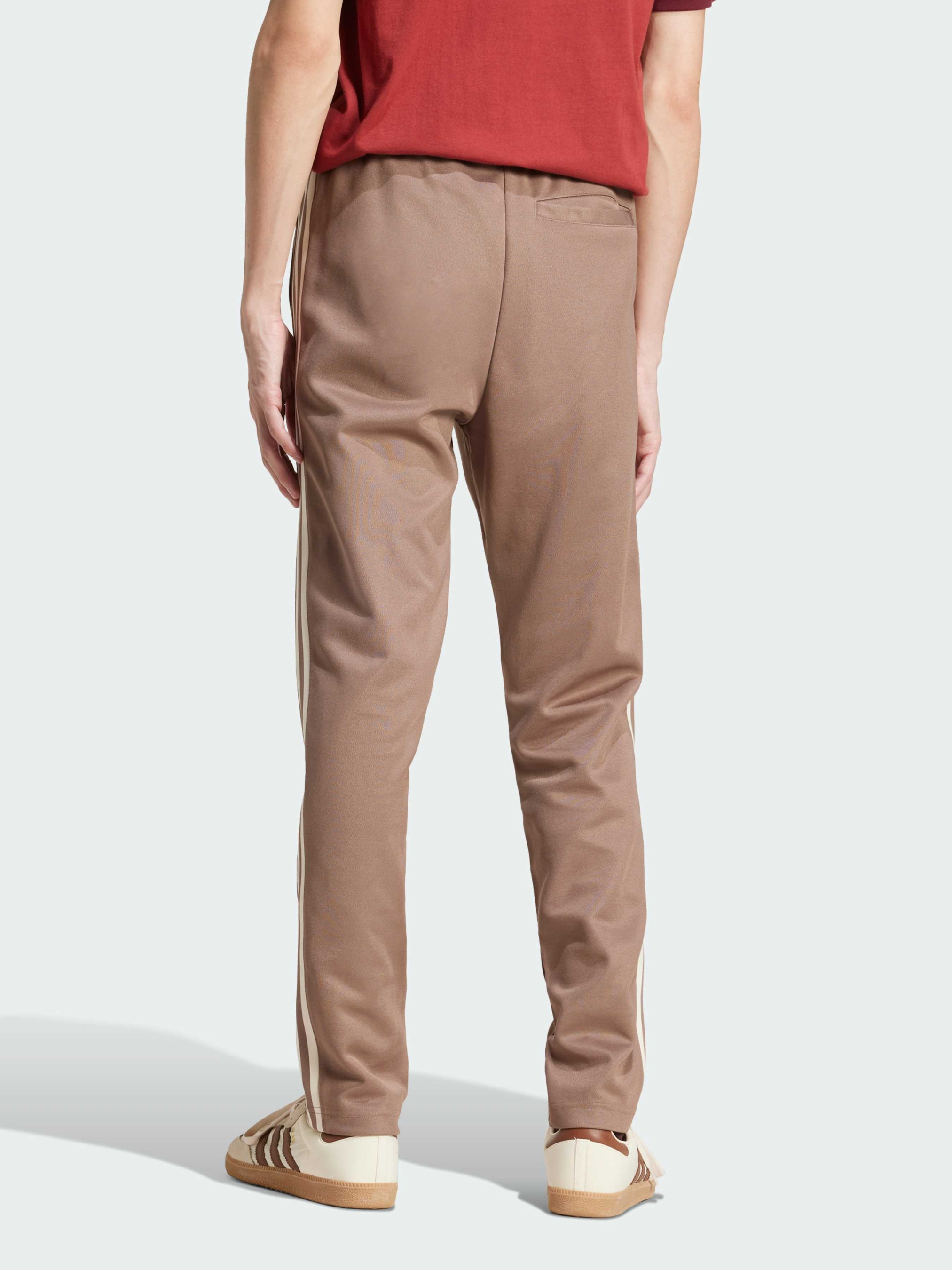 Характеристики Задня накладна кишеня Облягаючий крій Передні кишені на блискавці Піке: 52% бавовна, 48% перероблений поліестер Еластичний пояс на зав'язках-шнурках Опис Підкресли свій образ за допомогою вічної класики. Прямо з архіву adidas Adicolor Beckenbauer Track Pants віддають данину поваги легендарному футболісту. Звужений крій щільно облягає тіло, а вишитий Трилисник і три смужки демонструють легендарний образ із минулого. М'яка тканина з суміші бавовни змусить тебе знову і знову одягати ці штани. Щонайменше 70% цього продукту складається з перероблених і відновлюваних матеріалів. Йде розмір в розмір. Ми радимо замовити цю модель в твоєму звичайному розмірі.