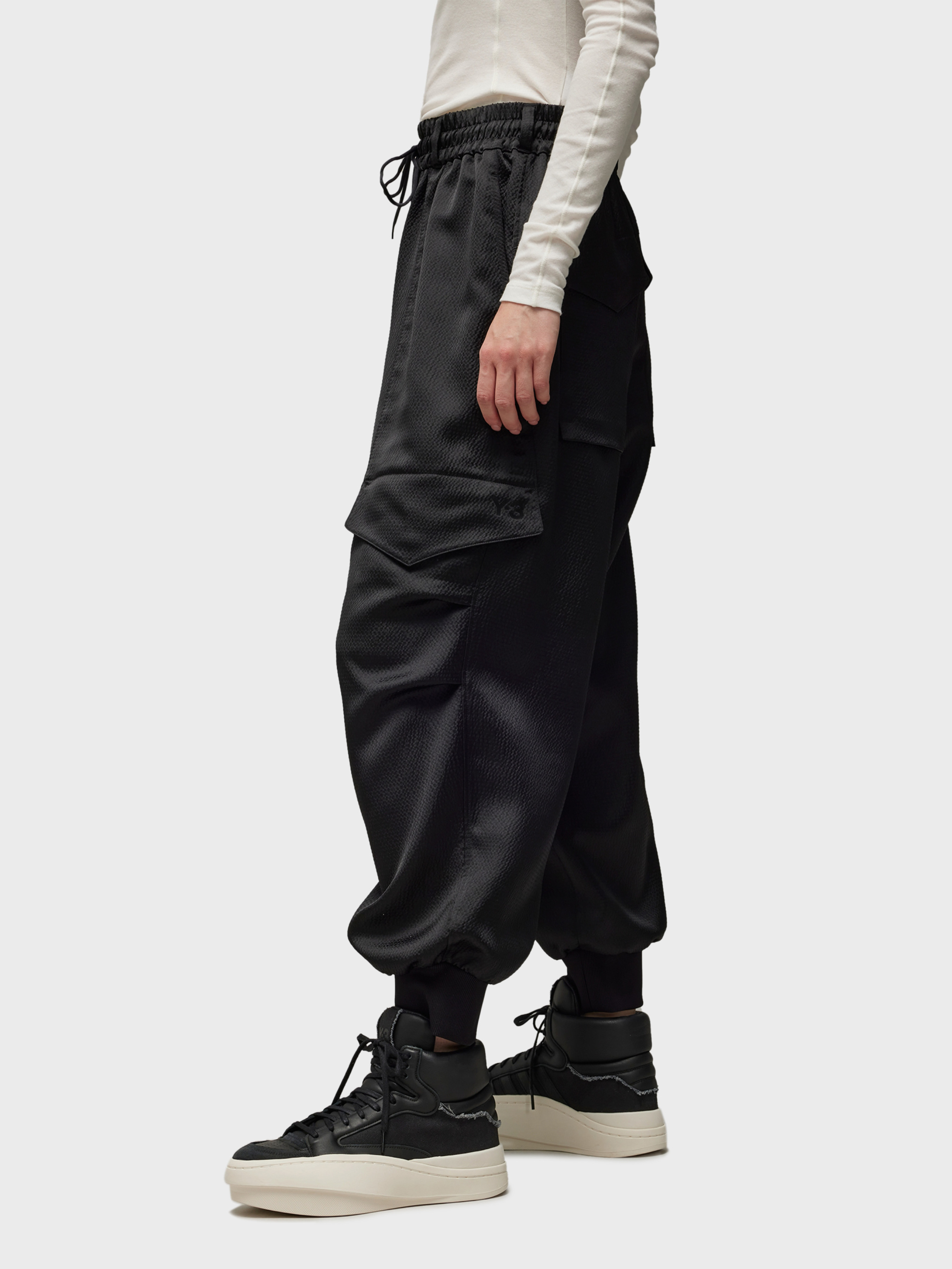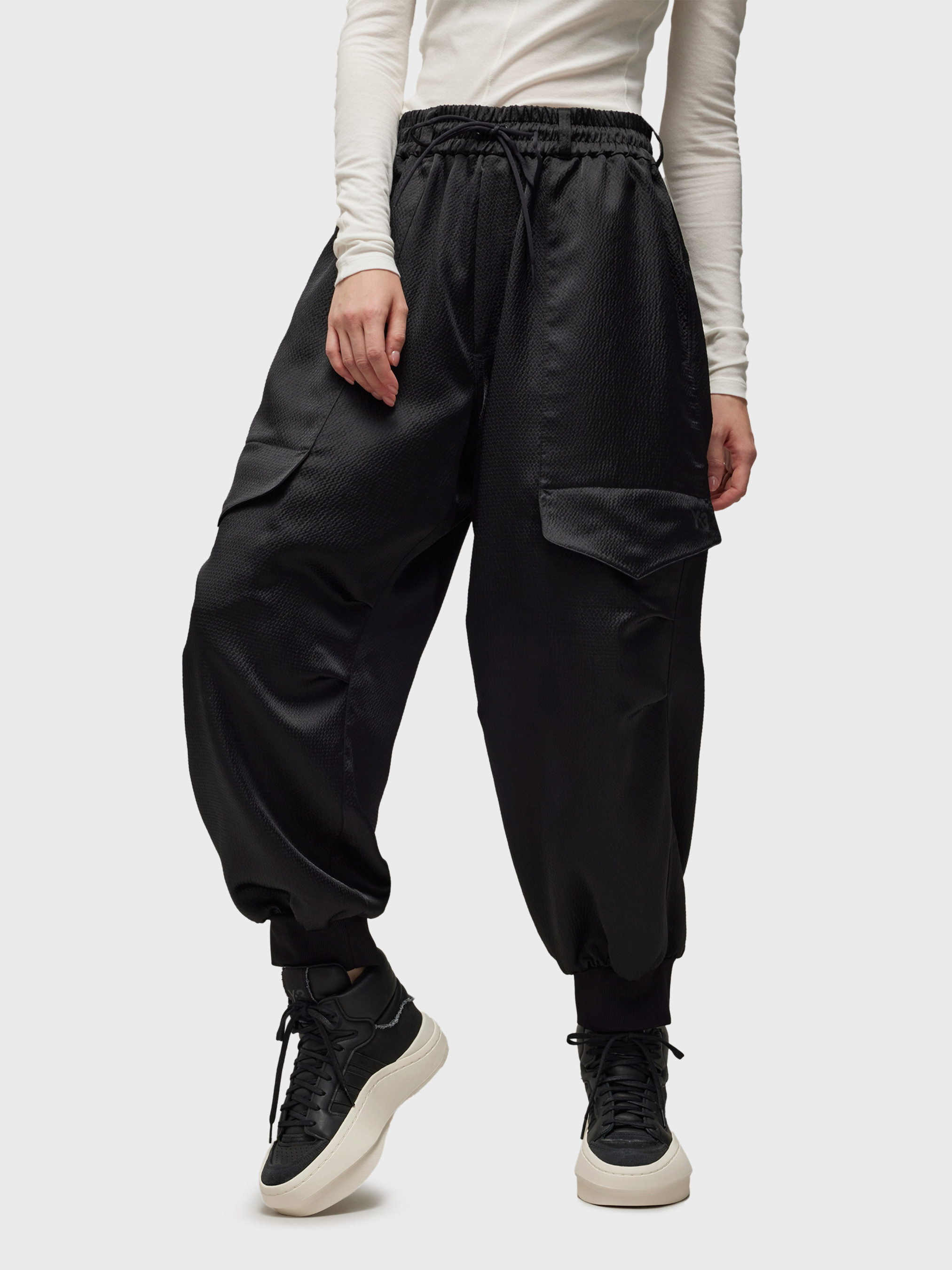 Характеристики Атлас: 100% перероблений поліестер Бічні і задні кишені Накладні кишені Стандартний крій Ширінка на блискавці та шнурок на еластичному поясі Містить щонайменше 70% переробленої та відновлюваної сировини Логотип Y-3 Рифлені манжети Опис Утилітарна естетика надихнула на створення штанів-карго Y-3 Tech Seersucker. Вони зшиті з атласного сизалю з ледь помітним блиском і на дотик дуже м'які. Кишені-карго визначають силует, а ребристі манжети звужують крій. Еластичний пояс зі стягувальним шнурком регулює посадку. Обираючи вторинну переробку, ми можемо повторно використовувати вже створені матеріали, що допомагає скоротити кількість відходів. Вибір на користь відновлюваних матеріалів допоможе нам позбутися залежності від обмежених ресурсів. Наші вироби, виготовлені із суміші перероблених і відновлюваних матеріалів, містять не менше 70% цих матеріалів.