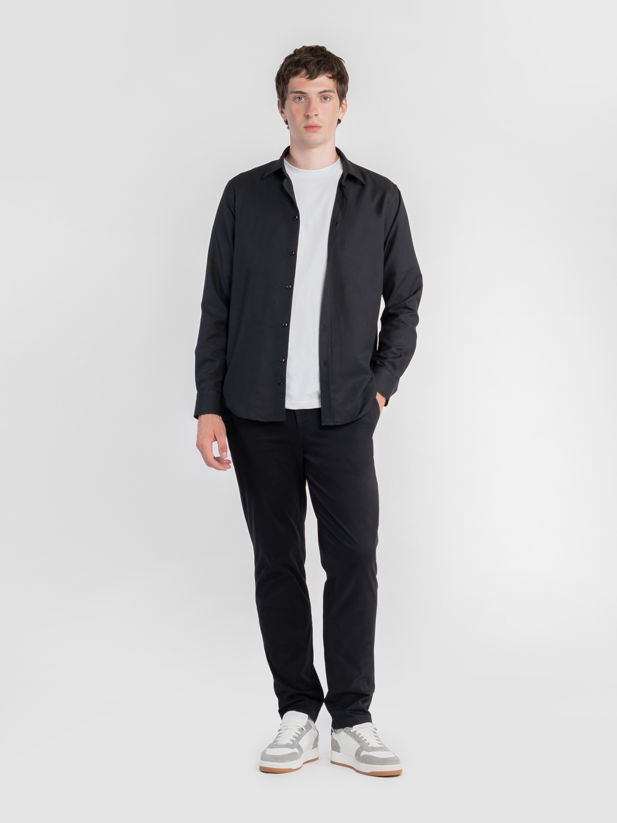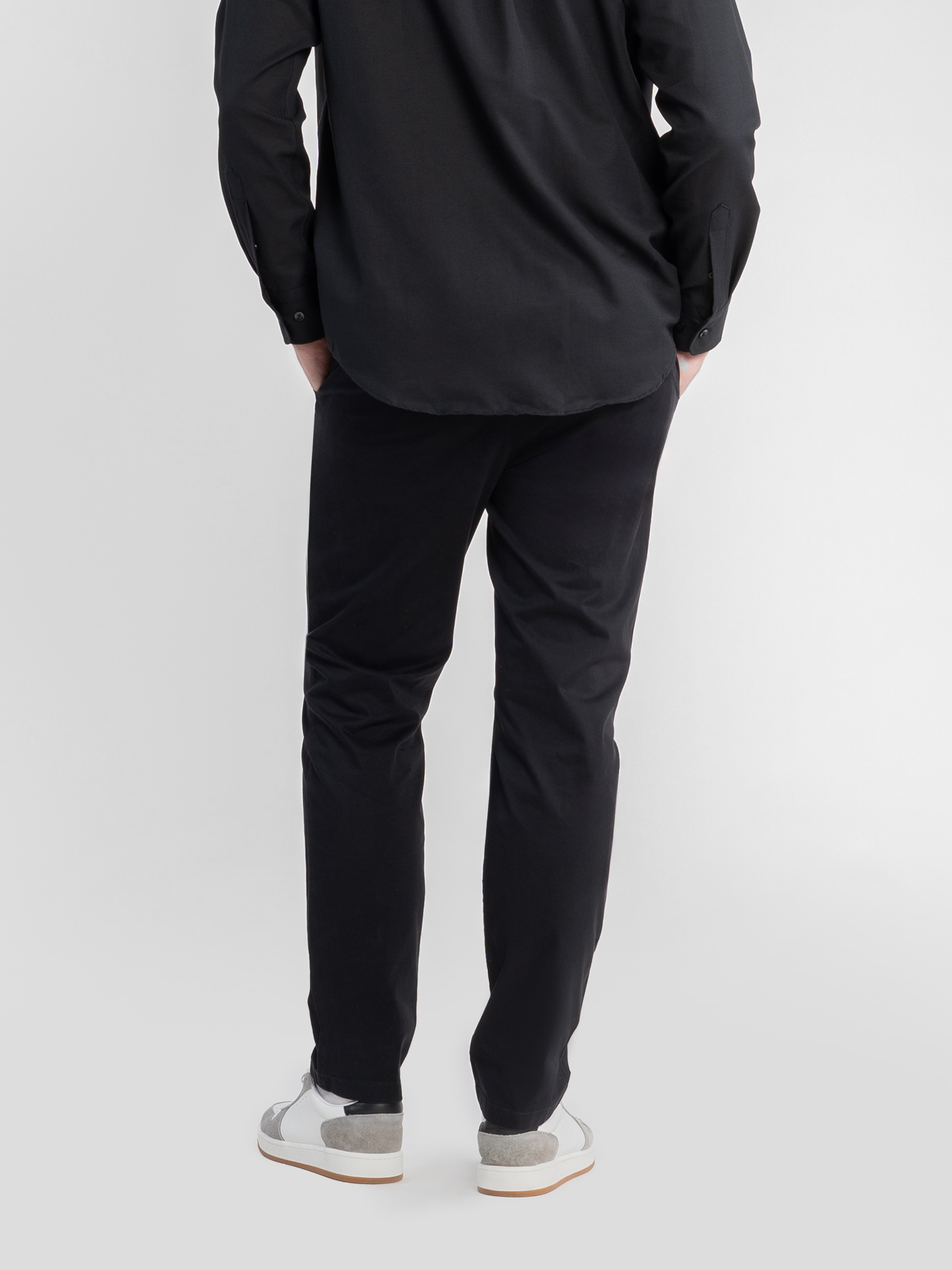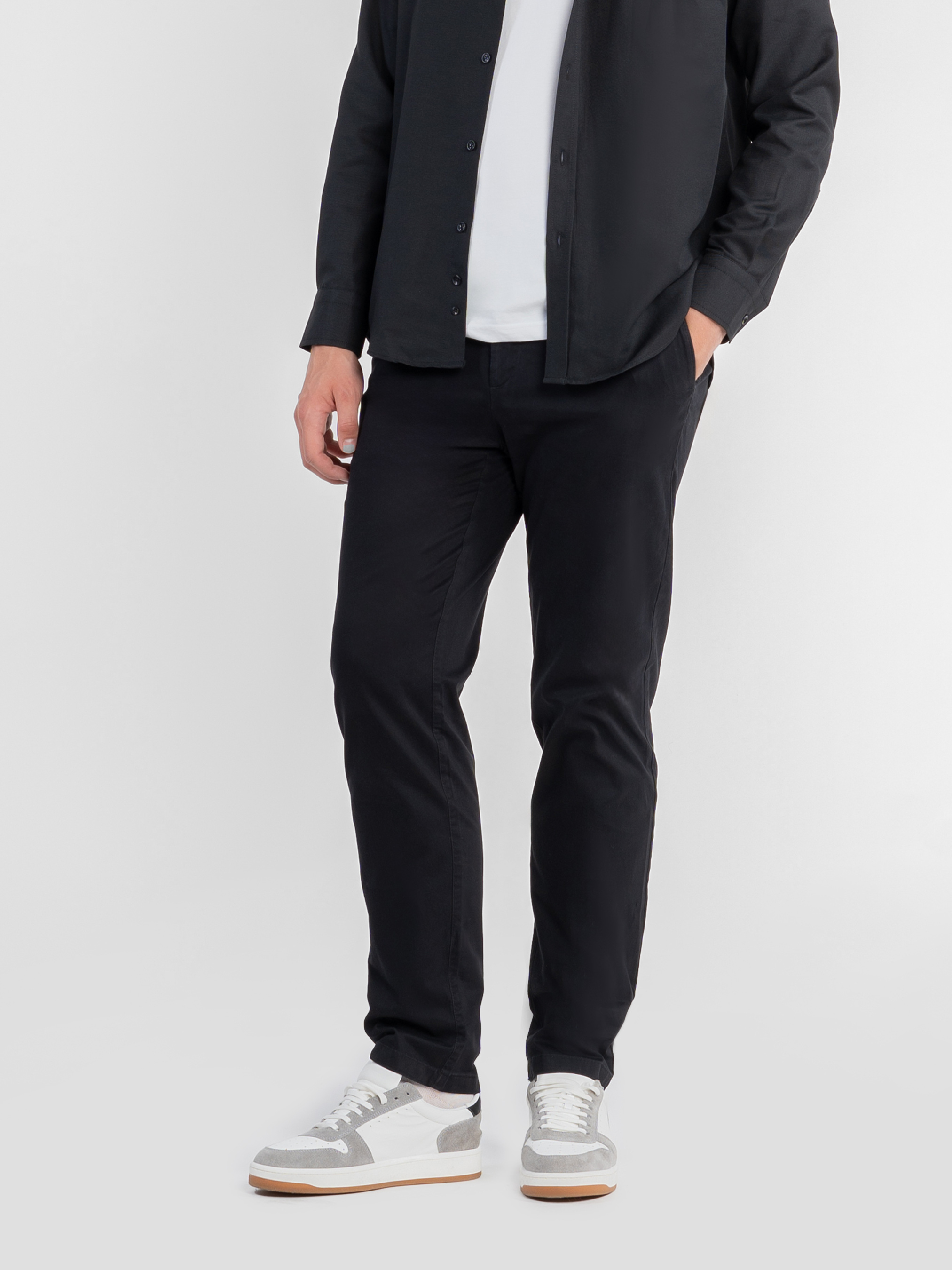 Чоловічі брюки Arber чорного кольору з ефектом замші, створені з натуральної м’якої бавовни з мінімальним додаванням еластану для максимального комфорту. Брюки мають середню посадку, пояс частково на гумці, застібаються на блискавку та ґудзик із регулювальним шнурком для зручності. Оснащені двома косими боковими кишенями та двома задніми. Ідеально пасують до бомбера M08.01.02.531 із тієї ж тканини. Модель на фото у розмірі 48.Зріст: 188 см. Параметри: 113/93/97