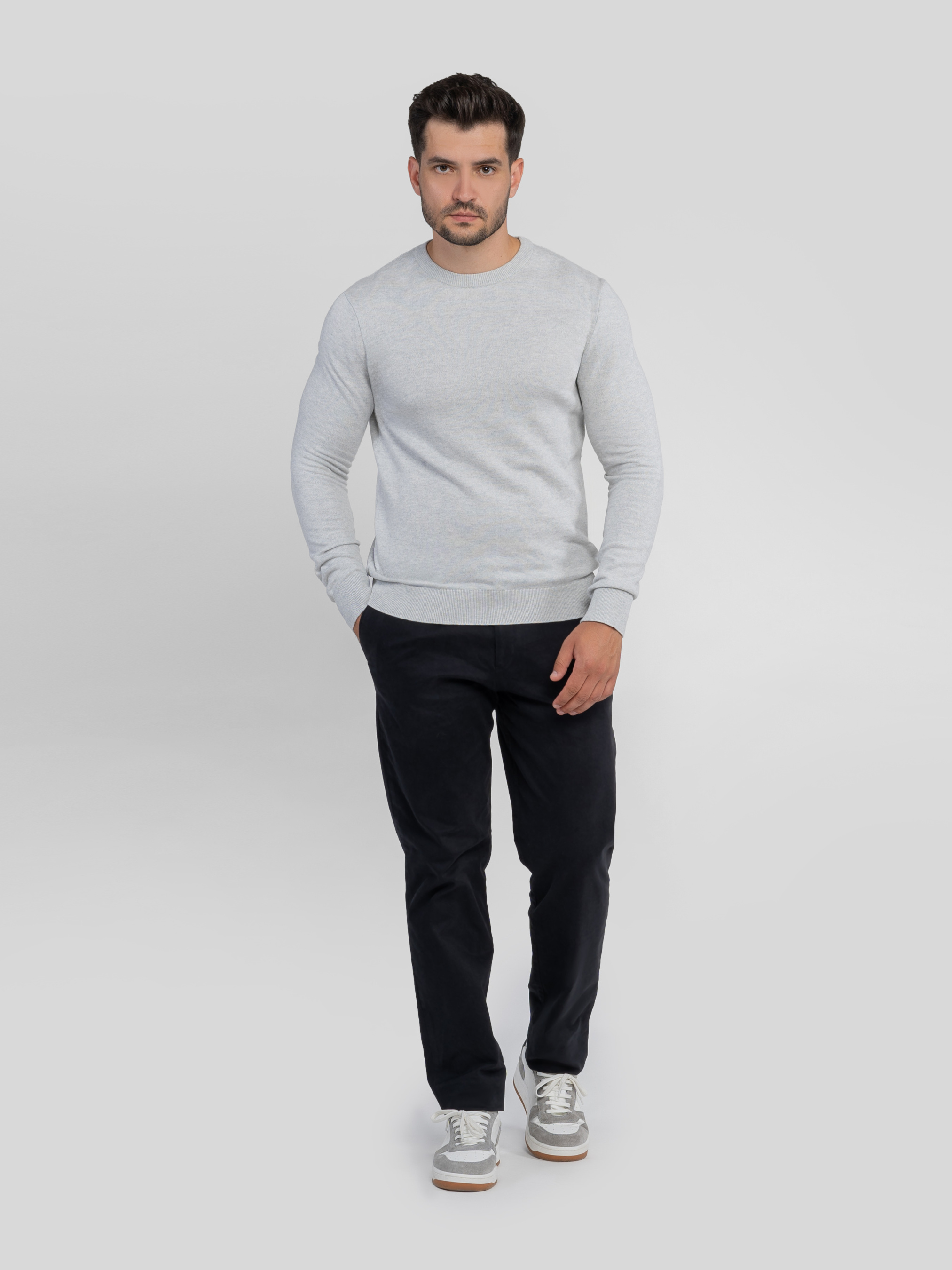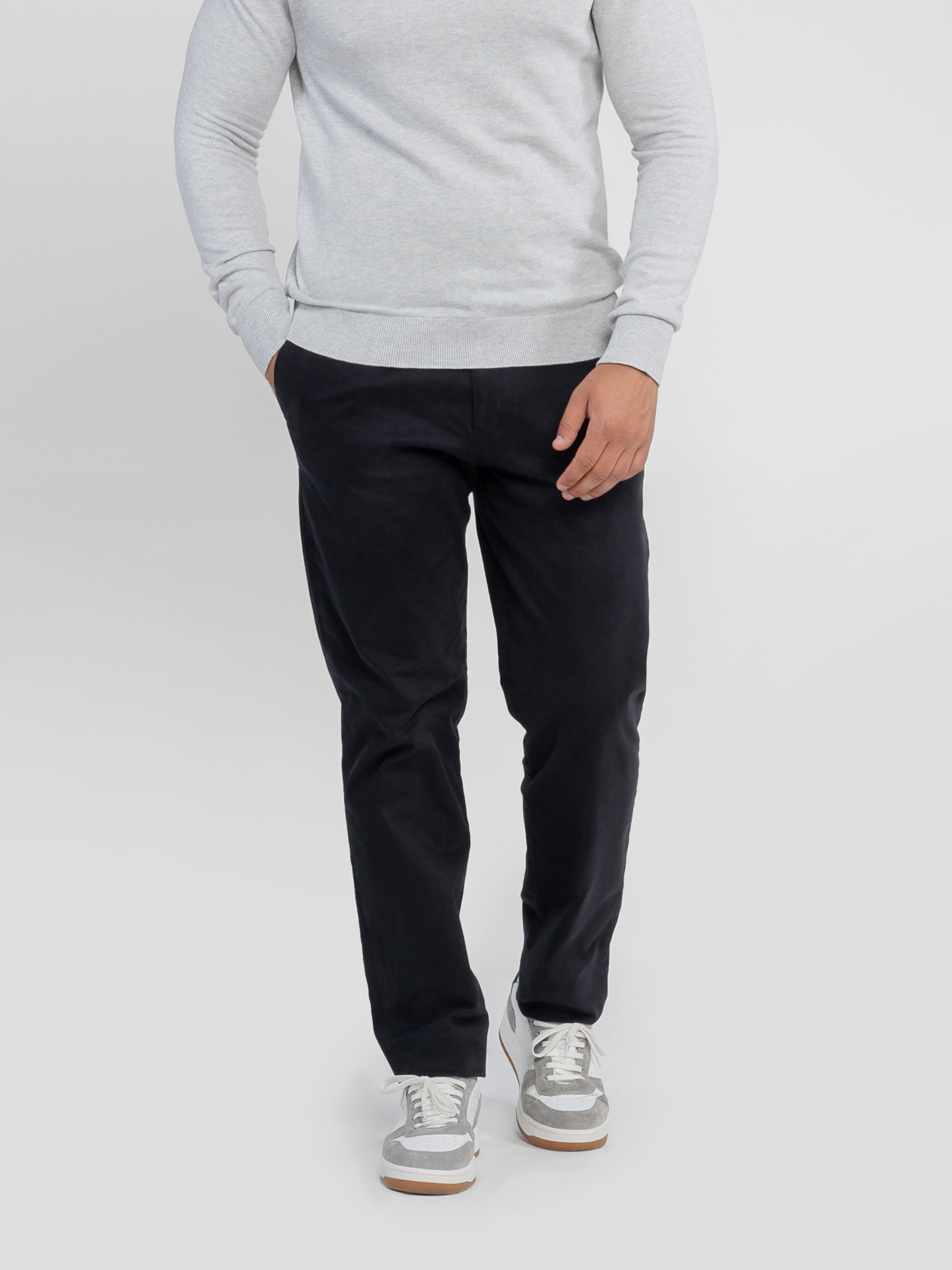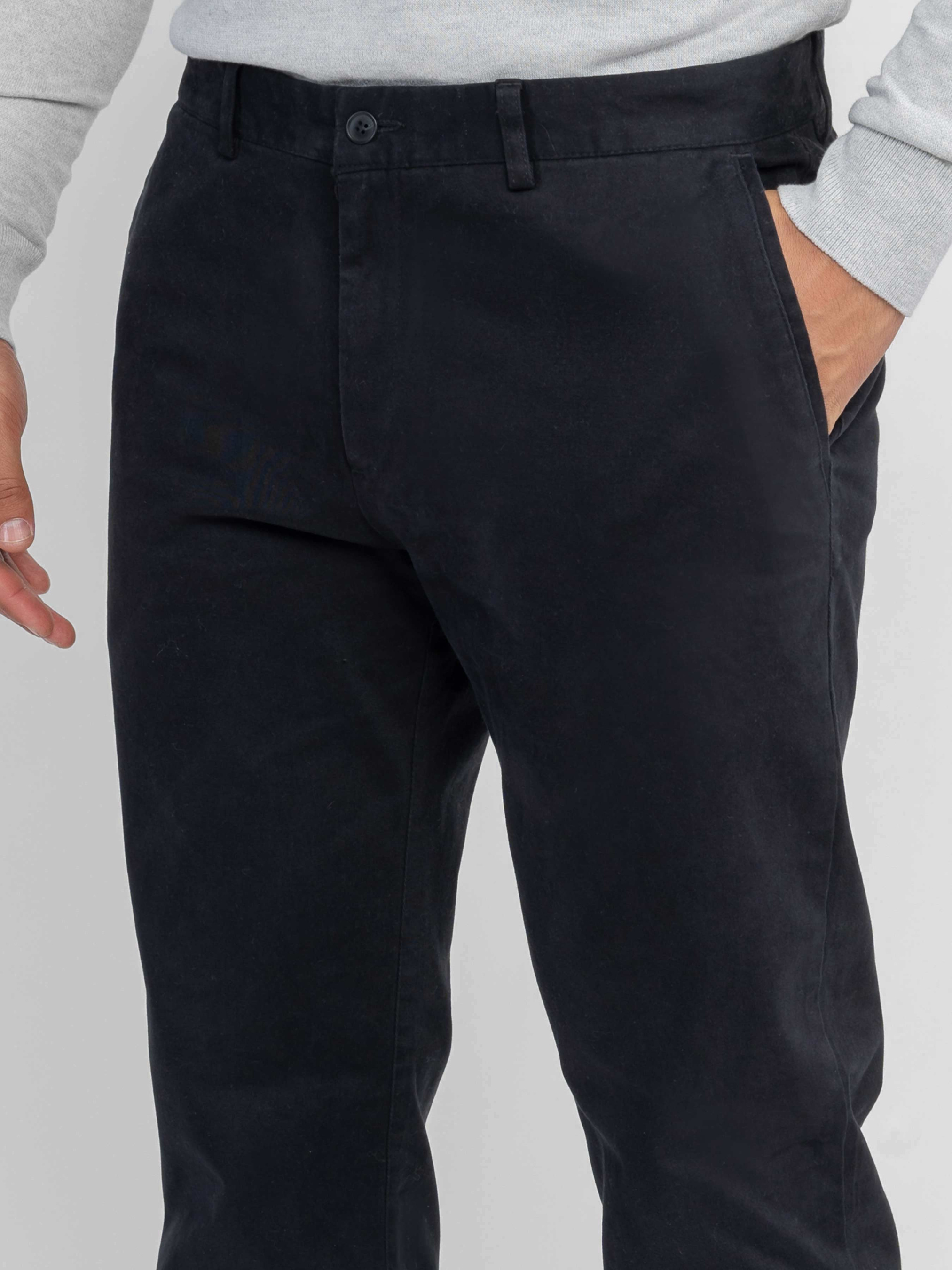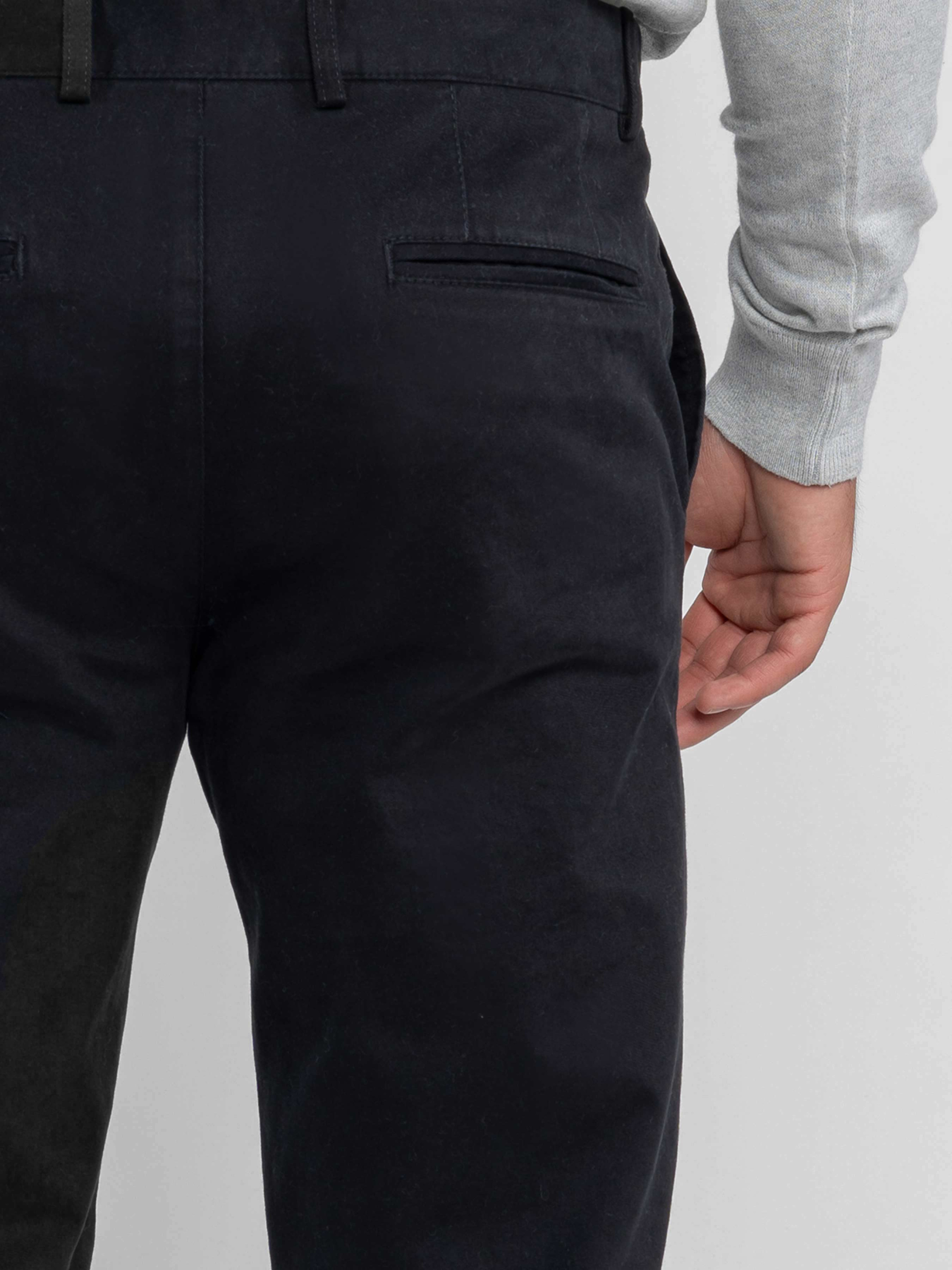 Чоловічі брюки Arber чорного кольору, створені з натуральної м’якої бавовни з додаванням еластану для тепла і комфорту. Сучасний крій забезпечує ідеальну посадку по фігурі, поєднуючи елегантність і практичність. Модель має застібку на блискавку та ґудзик, дві похилі бічні кишені та дві прорізні задні. Нижній край брюк оформлений з невеликим підворотом, що додає образу сучасного акценту. Ідеально підходять для стильних casual-комплектів у поєднанні з сорочками, светрами або тонкими пуловерами. Модель на фото у розмірі 48. Зріст: 180 см. Параметри: 103/85/97