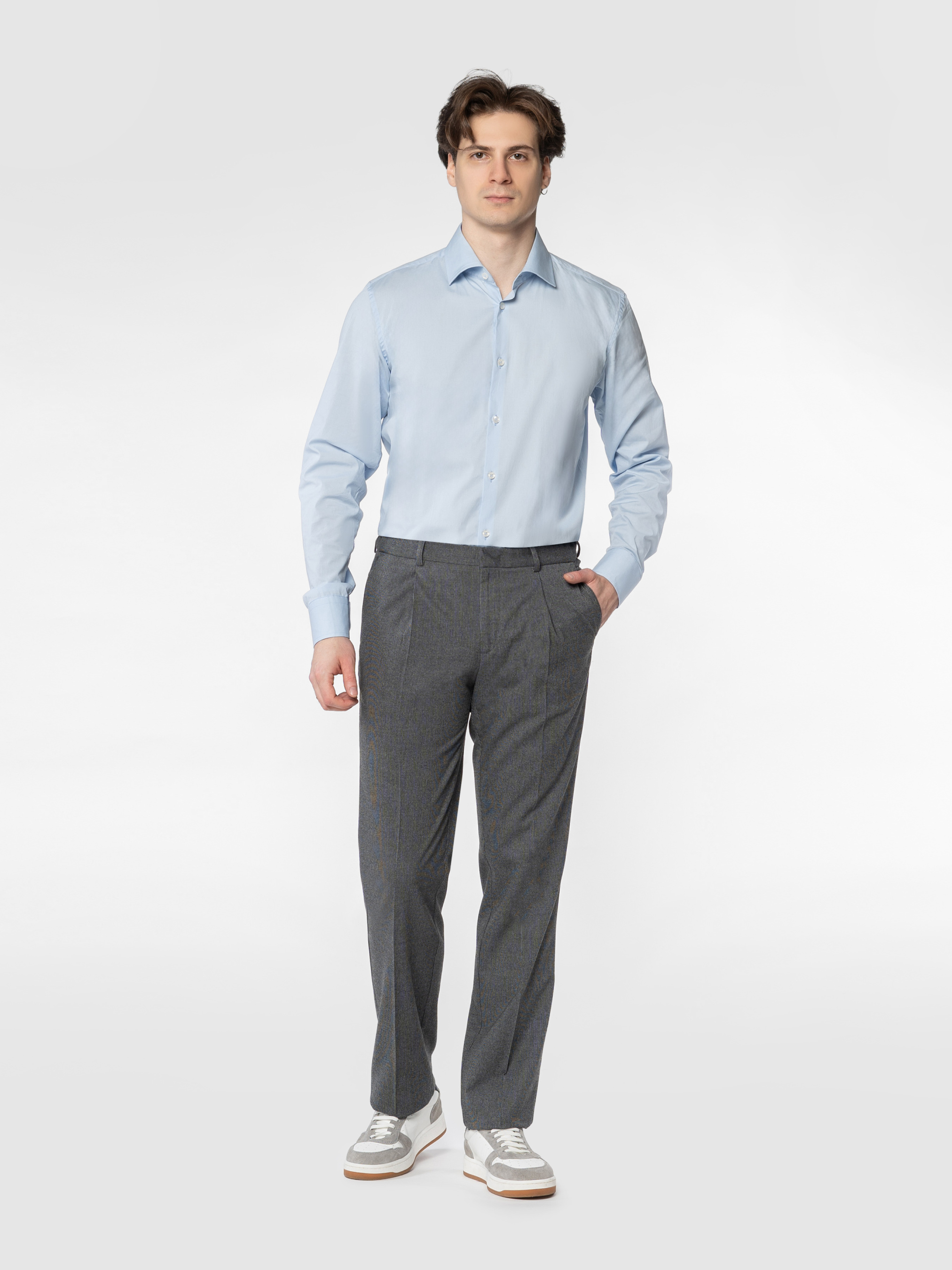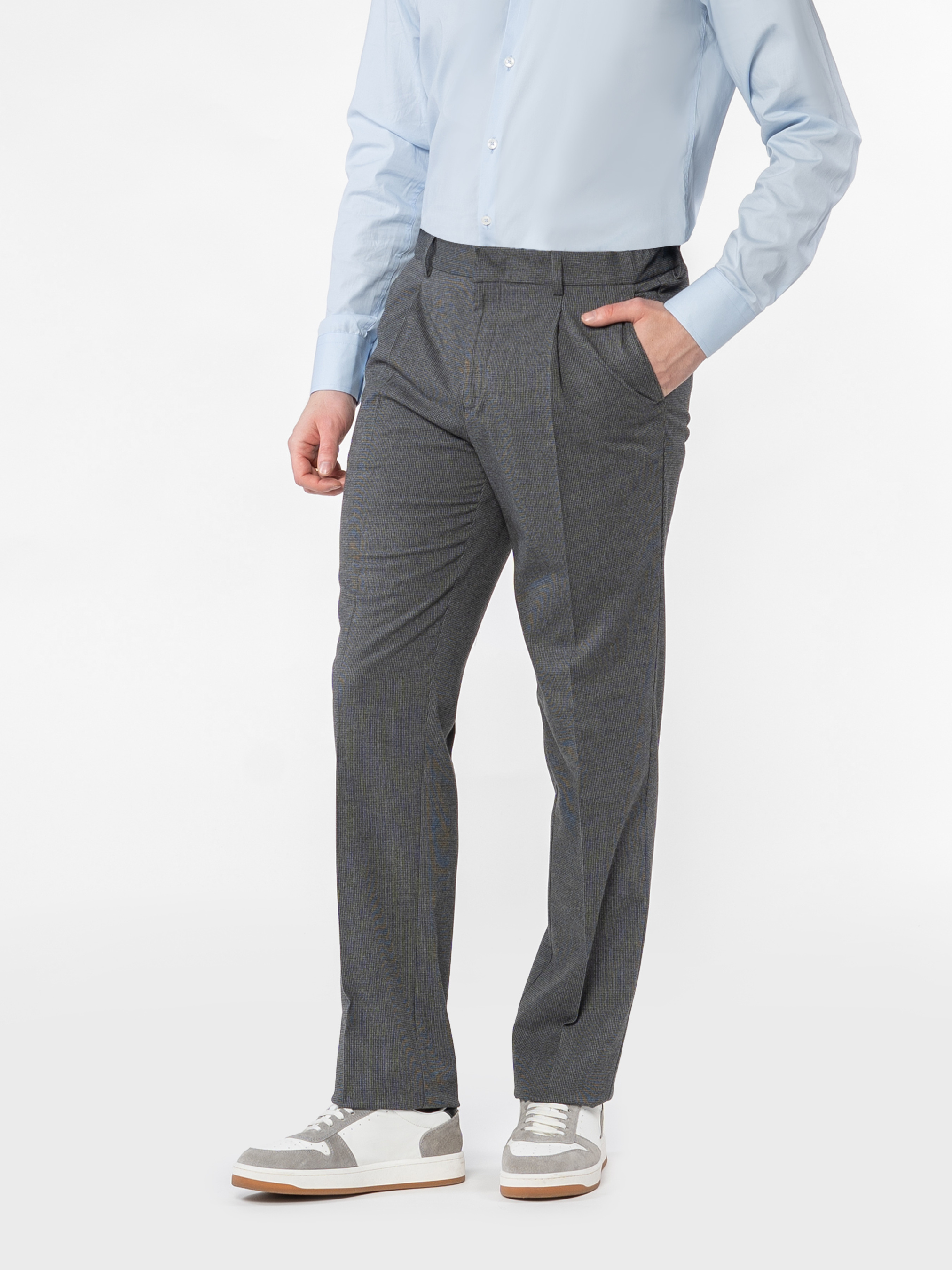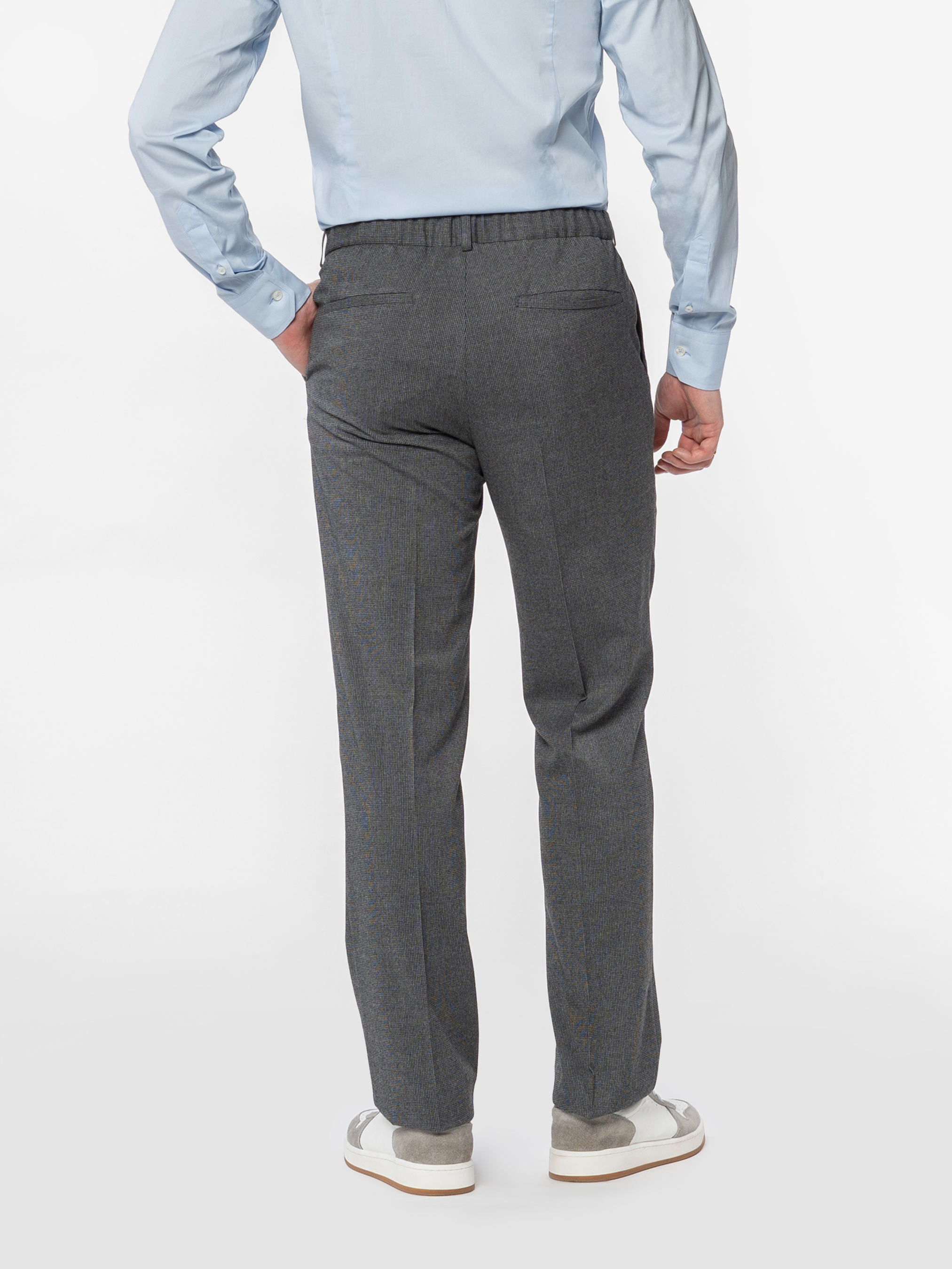 Чоловічі брюки Arber сірого кольору виготовлені з інноваційної тканини з додаванням шовковистої віскози, що забезпечує комфорт і зручність у щоденному використанні. Завдяки високій якості матеріалу брюки не мнуться й зберігають охайний вигляд протягом усього дня. Модель із середньою посадкою, застібкою на блискавку та ґудзик, класичними стрілками, двома боковими косими та двома задніми кишенями. Брюки легко поєднуються з однотонними піджаками, сорочками чи поло. Модель на фото у розмірі 48. Зріст: 185 см. Параметри: 103/78/100