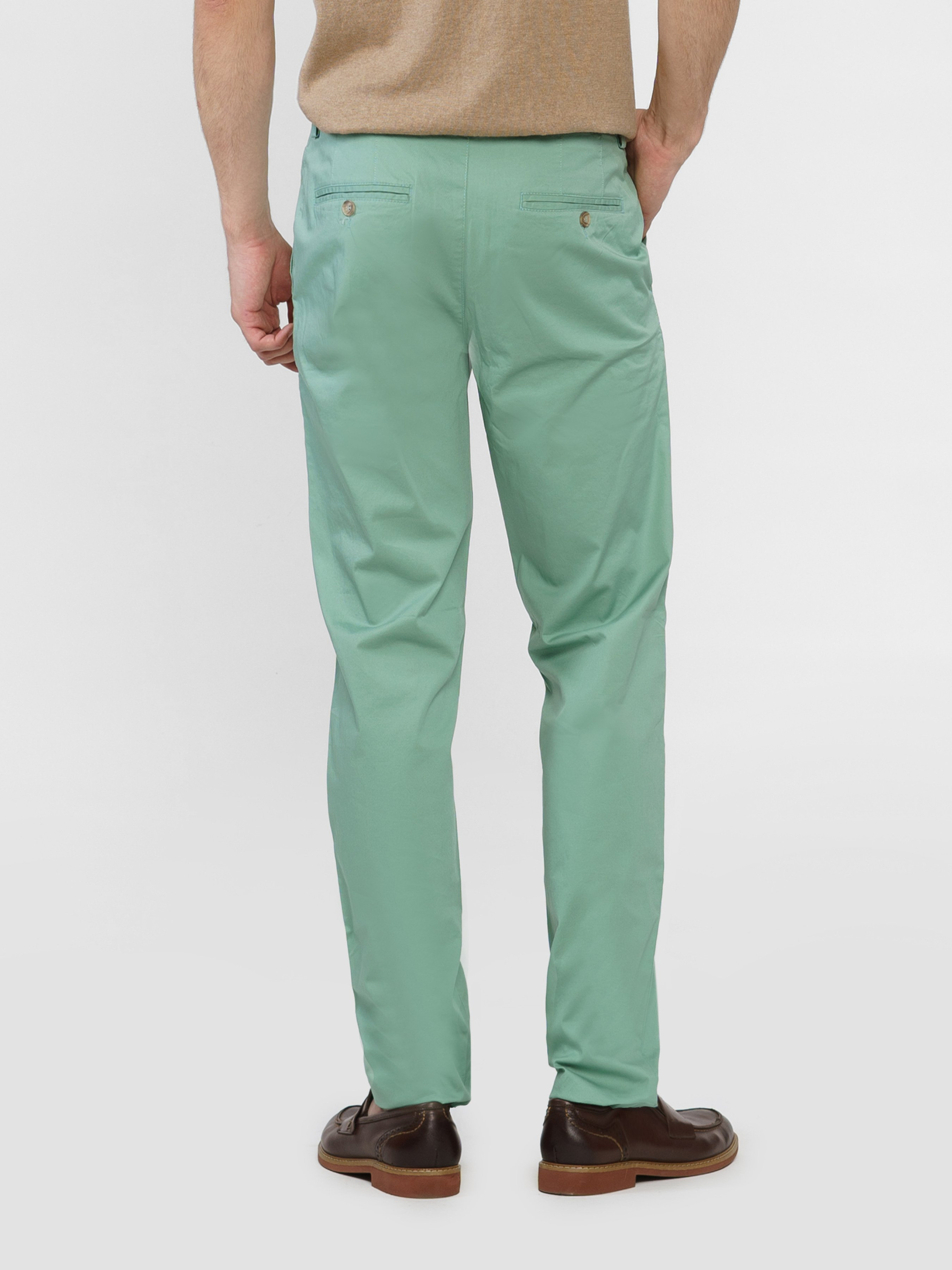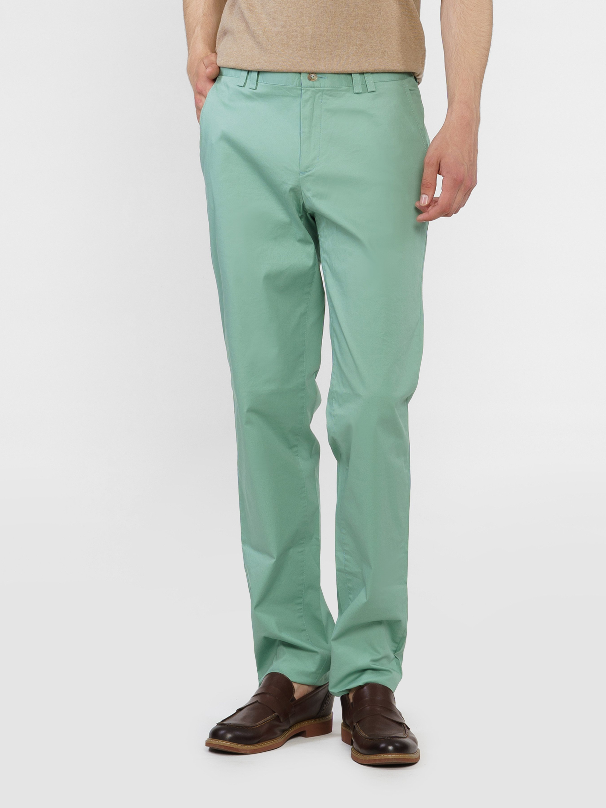 Чоловічі брюки chino Arber зеленого кольору, створені з дихаючої легкої бавовни з добавкою еластану. Еластична легка тканина робить їх комфортними і придатними для літа. Модель із збалансованим силуетом середньої посадки, звужена до низу, підходить для різних типів фігури. Штани вдало впишуться в гардероб в стилі casual в поєднанні з поло, футболками та кедами, або з легким блейзером.