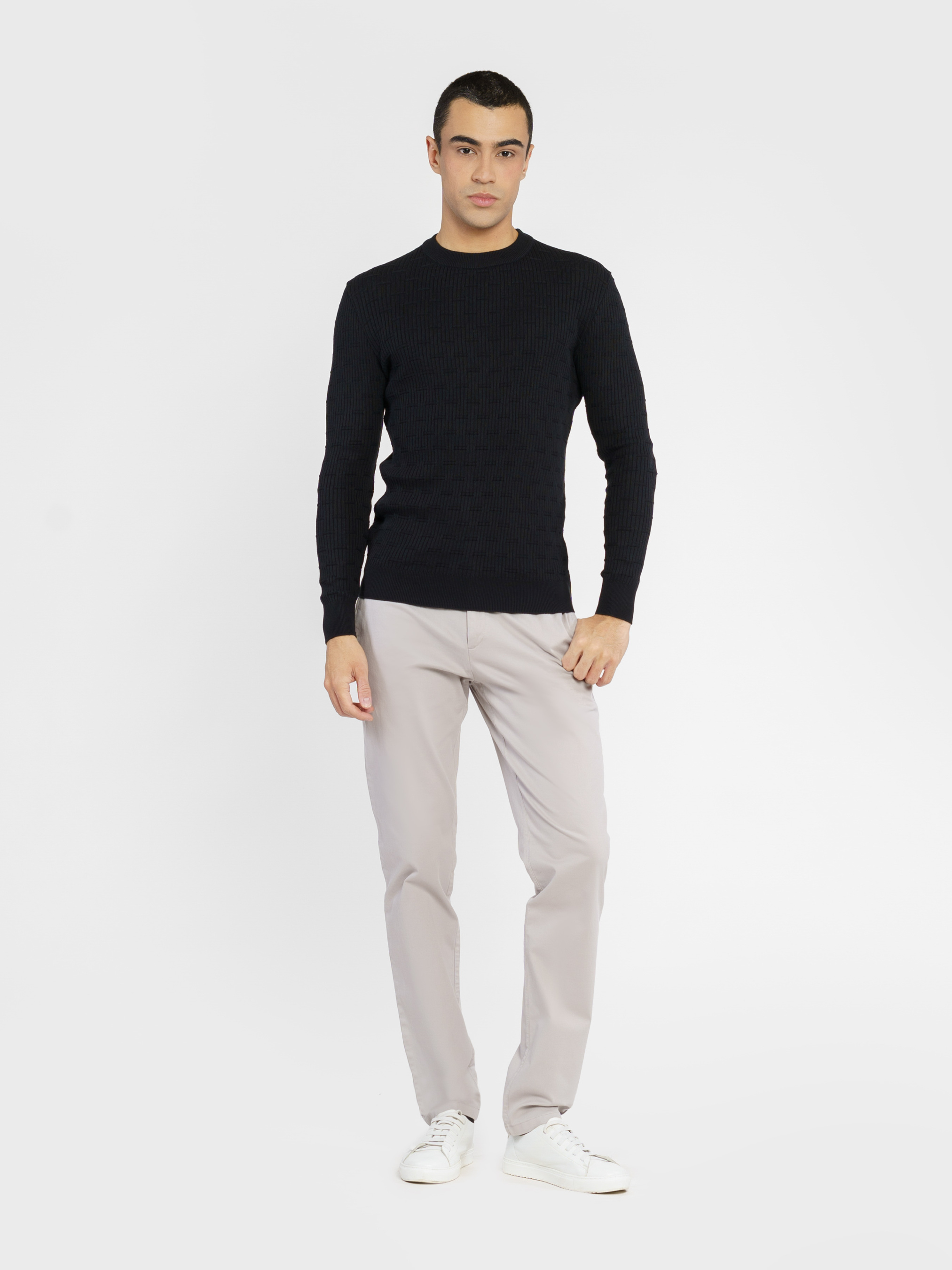 Чоловічі брюки Arber сірого кольору, виготовлені з високоякісної бавовни з додаванням еластану, що забезпечує оптимальний комфорт і повну свободу рухів. Ідеально сідають по фігурі завдяки еластичності та натуральним властивостям тканини. Звужений крій, застібка на блискавку та гудзик, а також елегантні бічні та задні прорізні кишені надають моделі стильного, сучасного вигляду. Ці брюки стануть основою бездоганного повсякденного образу, чудово поєднуючись з поло, футболками або легким блейзером, підкреслюючи ваш елегантний стиль.