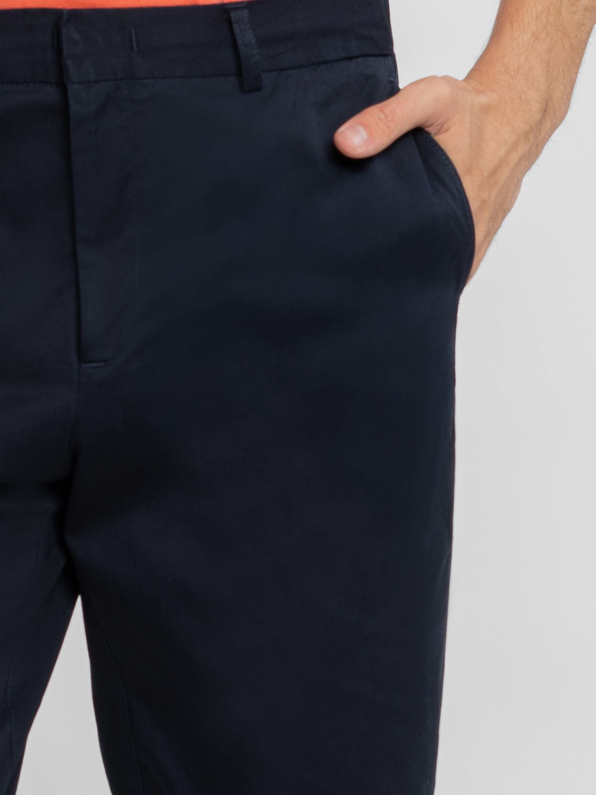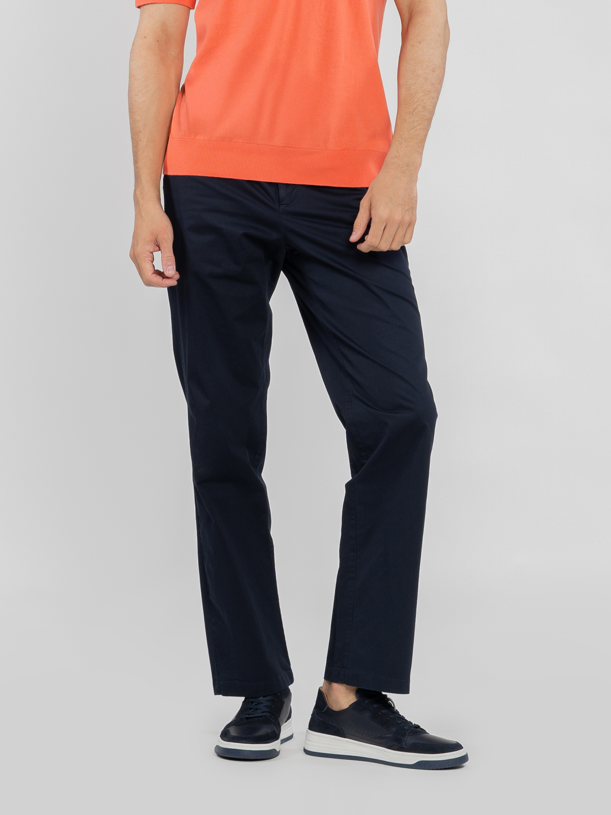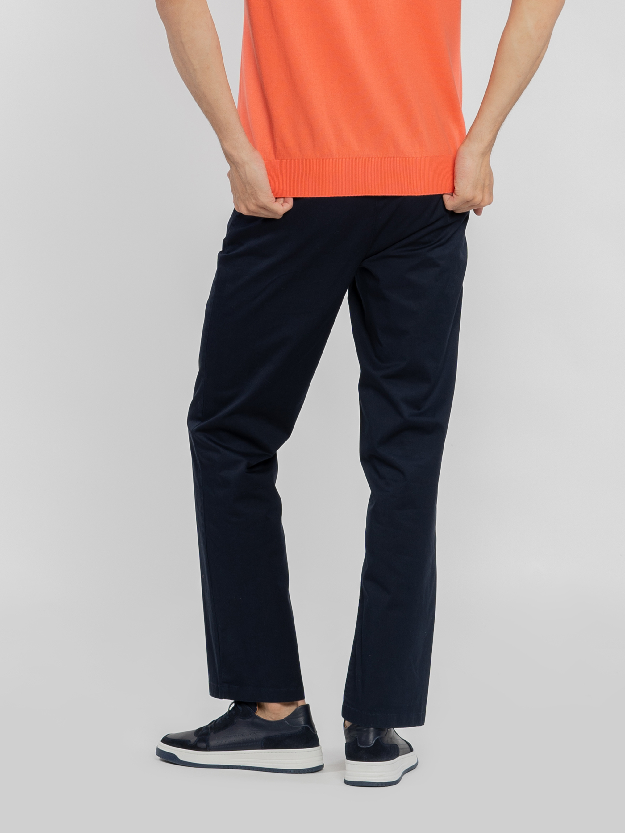 Чоловічі брюки Arber темно-синього кольору, створені з м'якої дихаючої бавовни з додаванням еластану. Завдяки властивостям натуральної тканини та розслабленому крою зі зручним поясом на гумці, модель надзвичайно комфортна, що створює безтурботну привабливість. Брюки прямого крою, з двома похилими боковими кишенями і двома прорізними задніми. Ідеально впишуться в гардероб у стилі casual в поєднанні з трикотажними поло, сорочками або з легким блейзером. Модель на фото в розмірі 48. Зріст: 188 см. Параметри: 97/78/96.