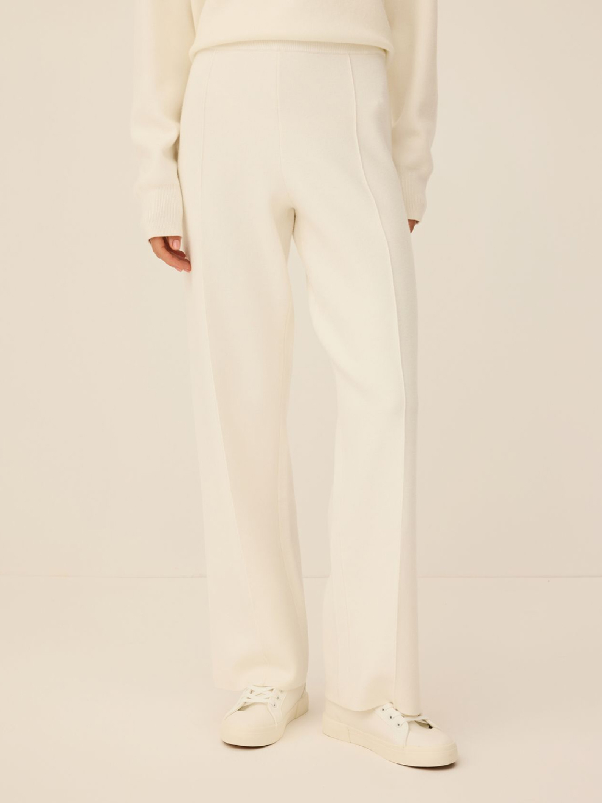 Жіночі штани-светрові ATH JAVRI 255 / ID: 10047822 Жіночі спортивні штани: - виготовлені з приємного віскозного трикотажу, - з декоративною строчкою на штанинах, - висока талія, - еластичний пояс, - широкі штанини. Зовнішній склад: 50% віскоза 30% поліестер 20% нейлон Догляд: - прання при максимум 30 °С - не відбілювати - не сушити в сушильній машині - прасувати максимум при темп. 110 °С - не піддавати хімчистці Розмір: XS S М L Ширина талії: 34,5 36,5 38,5 40,5 Довжина внутрішньої частини штанини: 76,5 76,5 78,5 80,5 Ширина стегна: 30,5 31,5 32,5 33,5 Ширина нижньої частини штанини: 23 24 25 26