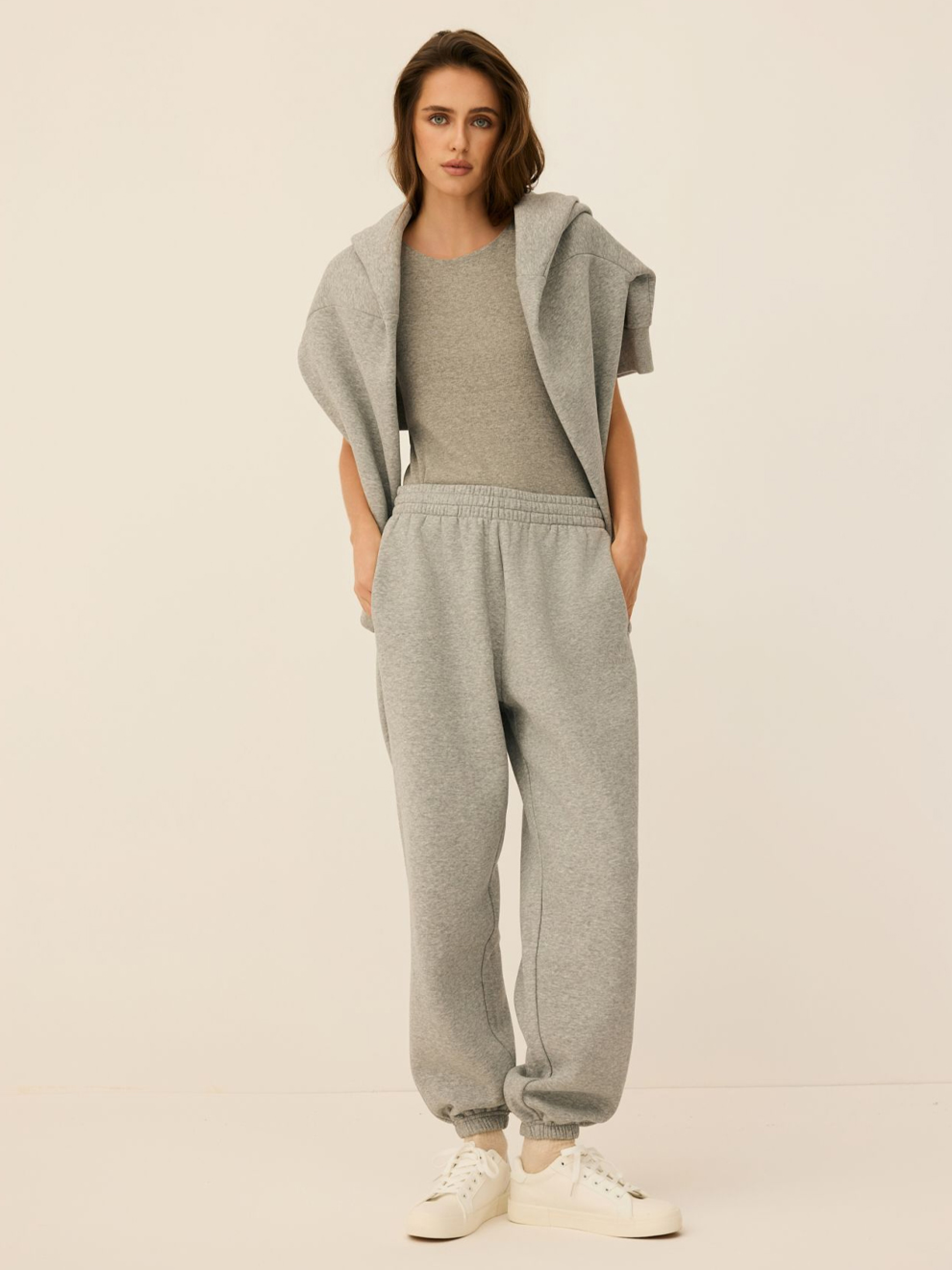 Жіночі вільні спортивні штани ATH BAGTER 255 / ID: 10047821 Жіночі спортивні штани з колекції ATHLETICS: - вільного крою, - з кишенями, - додаткове регулювання обхвату за допомогою шнурка, - злегка звужені штанини, оброблені гумкою, - виготовлені з щільного бавовняного трикотажу зі змішаними деталями, - вишивка з логотипом Athletics спереду, - доступні в сірому меланжі, - створюють комплект зі худі ATH FURRE 255 того ж кольору. Зовнішній склад: 60% бавовна 40% поліестер Догляд: - прання при максимум 30 °С - не відбілювати - не сушити в сушильній машині - прасувати максимум при темп. 150 °С - не піддавати хімчистці Розмір: XS S М L Ширина талії: 34 36 38 40 Довжина внутрішньої частини штанини: 71,5 71,5 73,5 75,5 Ширина стегна: 33 34 35 36 Ширина нижньої частини штанини: 11 12 13 14