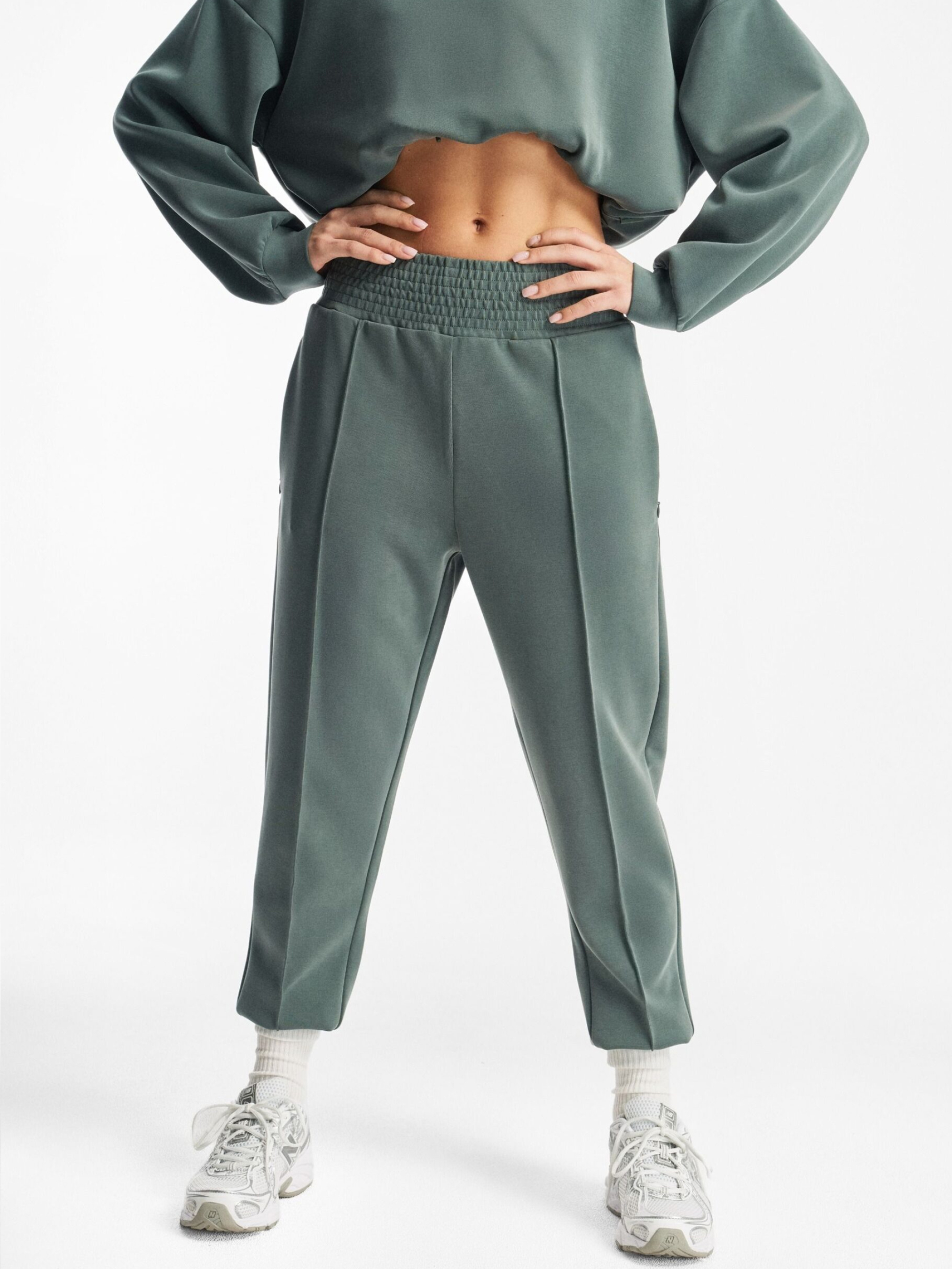 Спортивні штани SORNO / ID: 10048865 Зріст моделі: 172 см Розмір товару: S Широкі жіночі штани з декоративним широким поясом, виготовлені з приємного на дотик матеріалу: - зручний крій, - висока талія, - штанини оздоблені ребристими манжетами, - штанини з декоративними складками, - дві кишені на блискавці, - виготовлені з приємного на дотик трикотажу з віскозою, ідеально підходять для щоденних занять та відпочинку на свіжому повітрі. Зовнішній склад 46% поліестер 44% віскоза 10% еластан Догляд: - прання при максимум 30 °С - не відбілювати - не сушити в сушильній машині - прасувати за максимальної температури 110 °C - не піддавати хімчистці Розмір: XS S М L Ширина талії: 33 35 37 39 Довжина внутрішньої частини штанини: 68 68 70 72 Ширина стегна: 31 32 33 34 Ширина нижньої частини штанини: 10.5 11.5 12.5 13,5