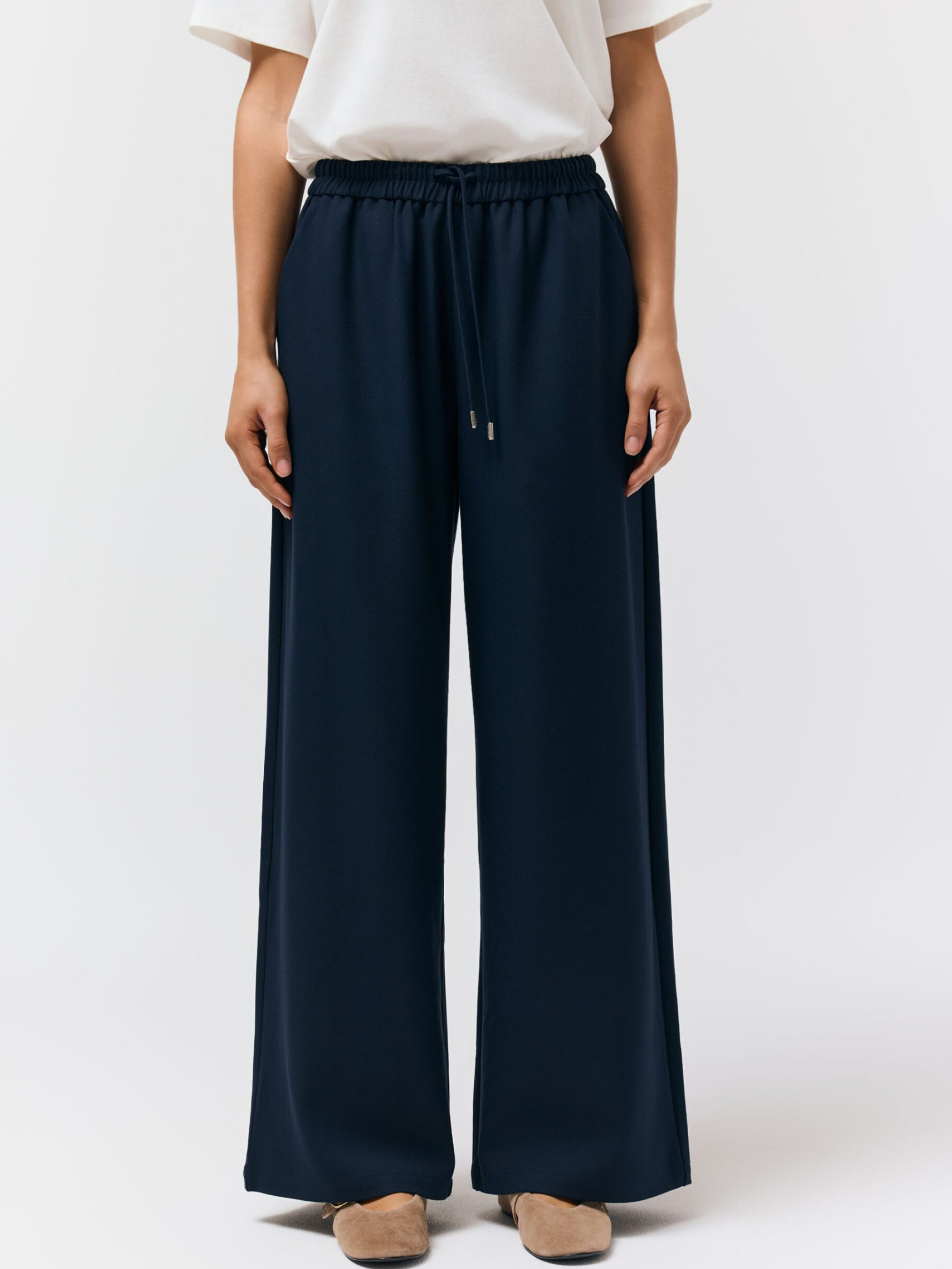 Штани CARIO / ID: 10048811 Зріст моделі: 175 см Розмір товару: S М'які штани широкого крою з еластичним поясом та шнурком для регулювання, прямі штанини з ширшим кроєм та бічними кишенями. Брюки ідеально підходять для весняних прогулянок або літніх поїздок. Зовнішній склад 65% поліестер 31% віскоза 4% еластан Догляд: - прання при максимум 30 °С - не відбілювати - не сушити в сушильній машині - прасувати за максимальної температури 110 °C - не піддавати хімчистці Розмір: 34 36 38 40 42 Ширина талії: 31,5 33,5 35,5 37,5 39,5 Довжина внутрішньої частини штанини: 76 76 76 78 78 Ширина стегна: 33 34 35 36 37 Ширина нижньої частини штанини: 30 31 32 33 34