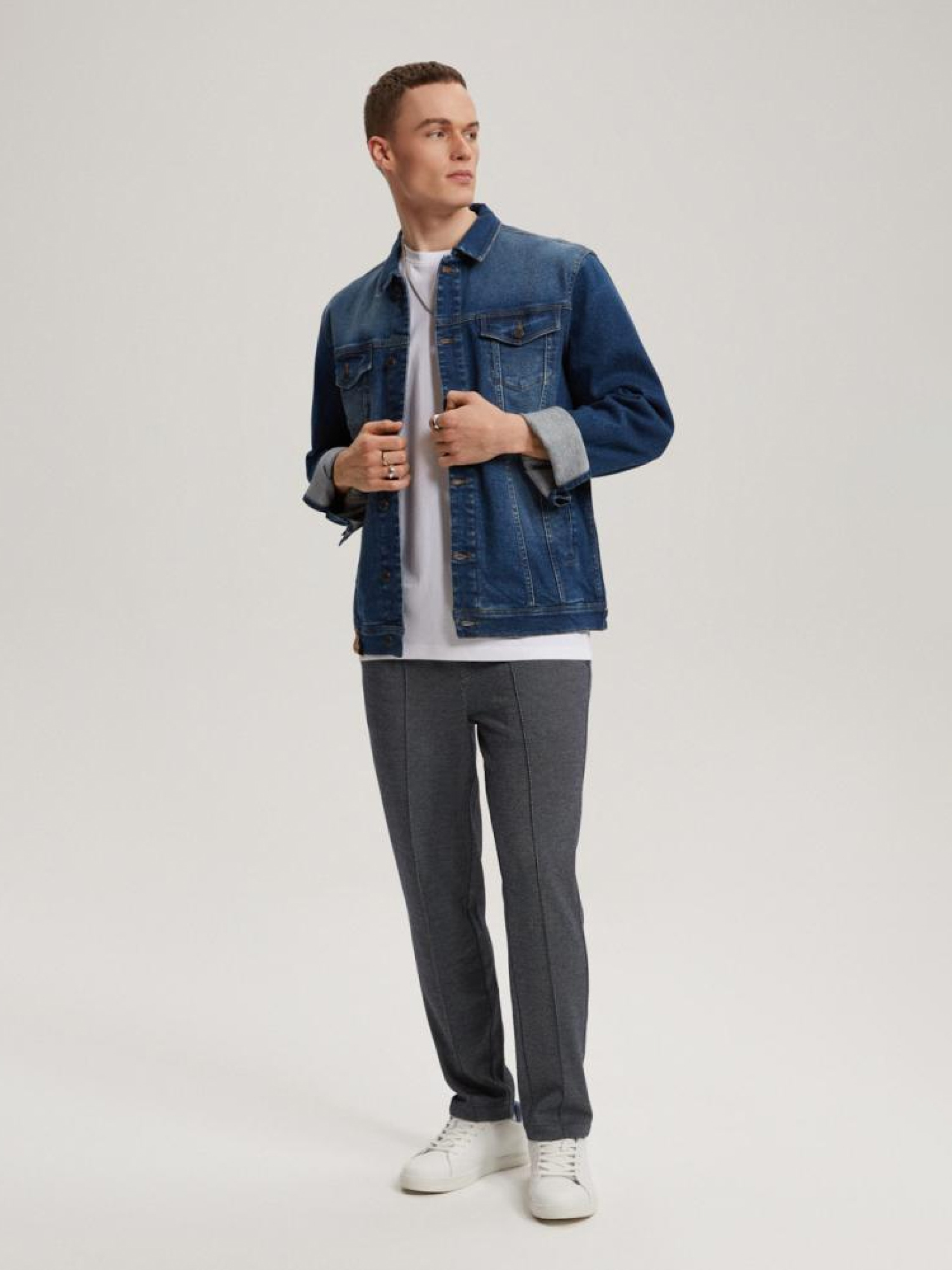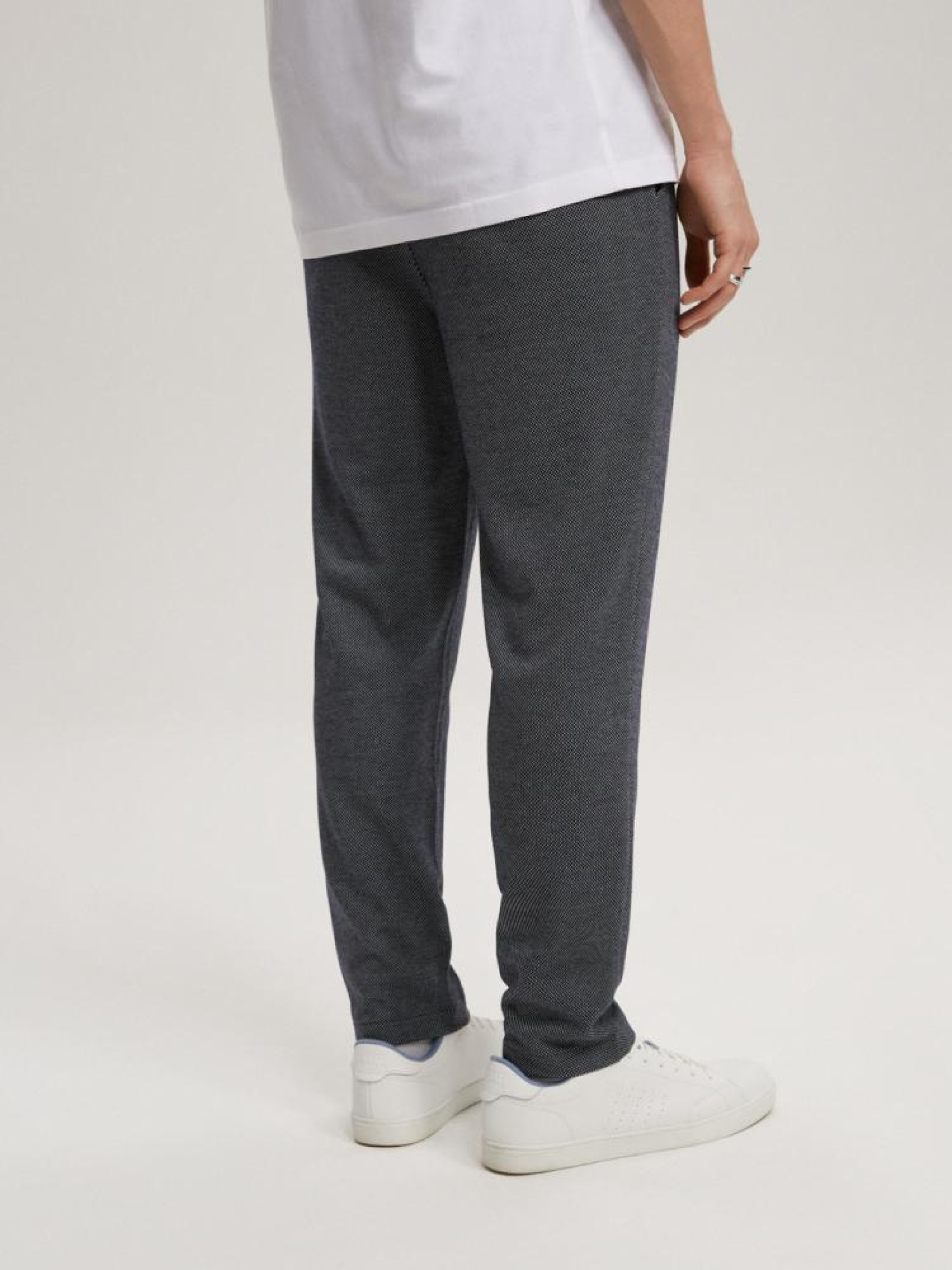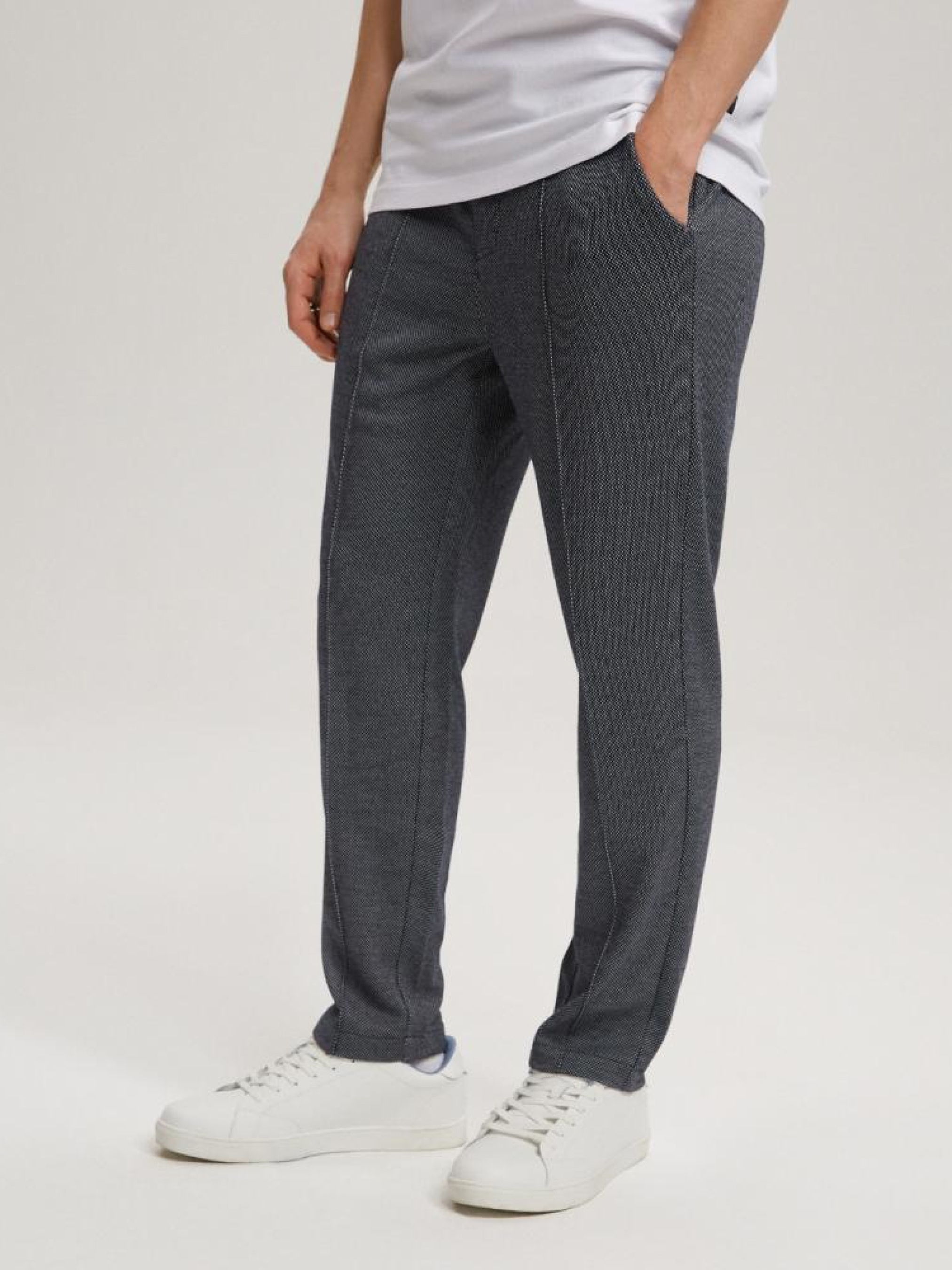 Штани PREM JOGGS 10041379 Трикотажні брюки з приталеними штанинами. - тип джоггера - еластичний ремінь і шнурок для регулювання розміру, - мають дві кишені для чиносів спереду та дві кишені ззаду. Сезон: Весна/Літо Склад: 71% поліестер 27% віскози 2% еластану. Догляд: - прання при максимум 30 °С - делікатні речі - не відбілювати - не сушити в сушильній машині - прасувати максимум при темп. 110 °С - не хімчистка РОЗМІР: S, M, L, XL, XXL . ВНУТРІШНЯ ДОВЖИНА НОГИ: 68,00 см, 69,00 см, 69,00 см, 71,00 см, 72,00 см . ШИРИНА СТЕГНА: 29,20 см, 30,60 см, 32,00 см, 33,40 см, 34,80 см . ШИРИНА НІЖКИ ВНИЗУ 15,00 см, 15,00 см, 16.00 см, 17,40 см, 18,80 см