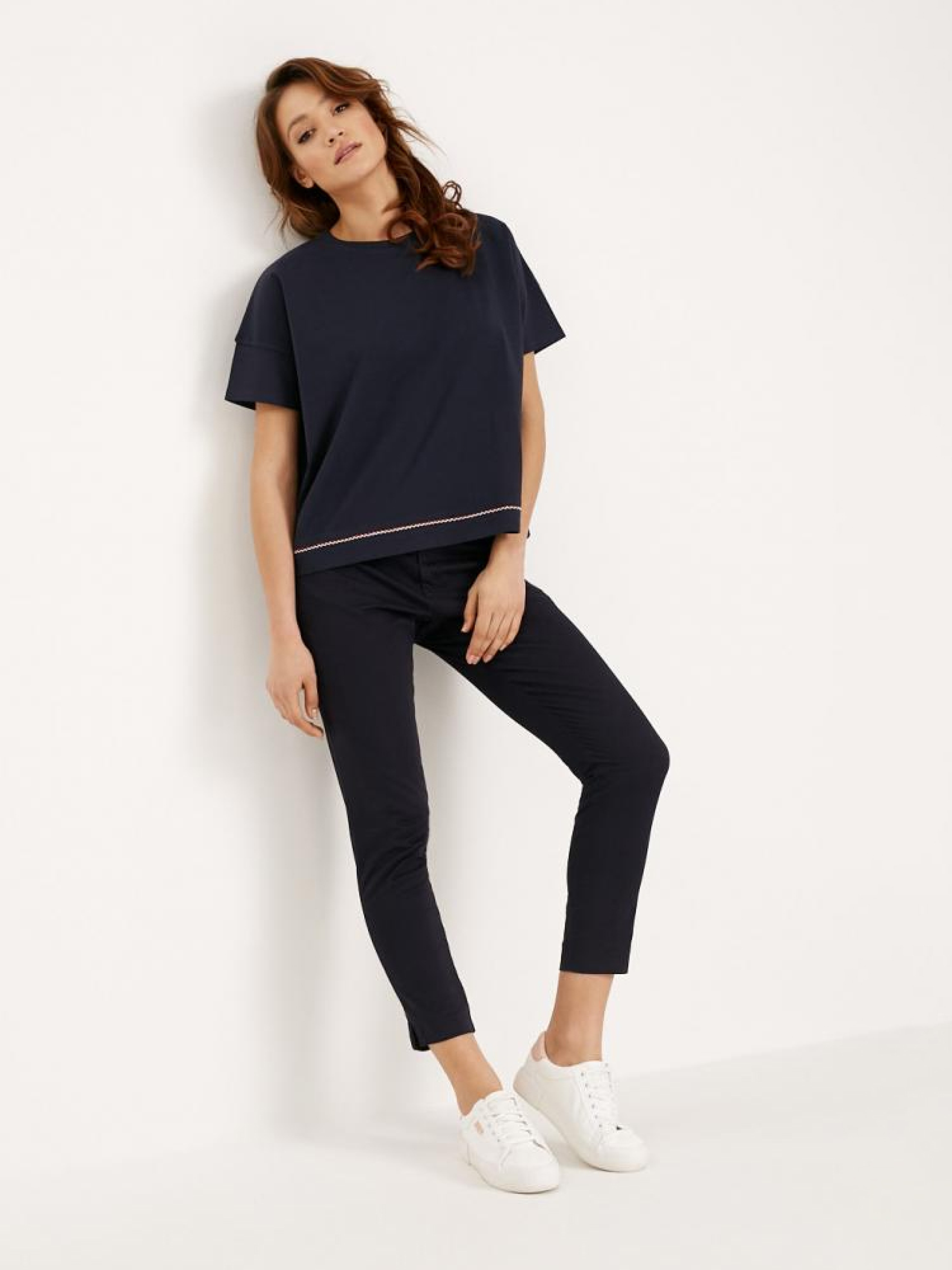 Жіночі брюки CHICHINO з ніжної еластичної тканини зручного крою. Регулюється за допомогою додаткового ремінця. Основні характеристики: - трохи більше вільний крій, - середня талія, - довжина штанин до щиколотки. Сезон: Весна-літо Склад: 98% бавовна 2% еластан Розмір на моделі - 36 Зріст моделі - 180 см РОЗМІР:34, 36, 38, 40, 42, ШИРИНА ПОЯСА, 35 см, 37 см, 39 см, 41 см, 43 см, ДОВЖИНА ВНУТРІШНЬОЇ НОГИ, 70 см, 70 см, 73 см, 75 см, 78 см, ШИРИНА СТЕГНА, 29 см, 30 см, 31 см, 32 см, 33 см, ШИРИНА НИЗУ: ШТАНИНИ, 12 см, 13 см, 14 см, 15 см, 16 см