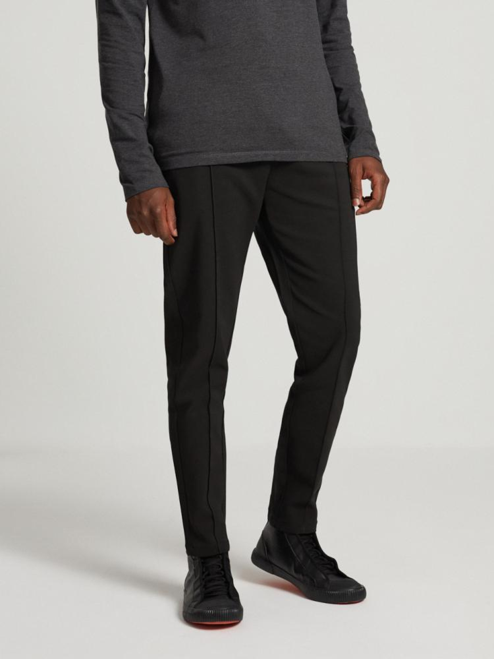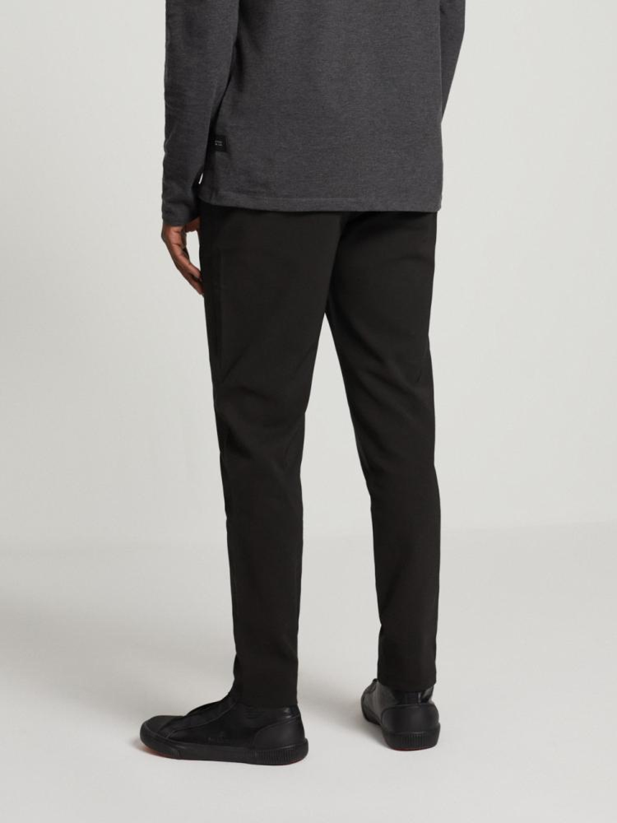 Приталені джоггери: - м'яка, зручна і тепла тканина з еластаном, - дві передні кишені, - дві кишені чінос ззаду, - зав'язки на талії, - з декоративною строчкою вздовж штанини, - доступні у чорному кольорі. Сезон: осінь/зима. Склад: 55% бавовна, 42% нейлон, 3% еластан. Догляд: - прання при максимум 30 °С - не відбілювати - не сушити в сушильній машині - прасувати максимум при темп. 150 °С - не хімчистка Розмір на моделі - L Зріст моделі - 185 см РОЗМІР: S, М, L, XL, XXL . ШИРИНА ПОЯСА: 37,50 см, 40,50 см, 43,50 см, 46,50 см, 49,50 см . ВНУТРІШНЯ ДОВЖИНА НОГИ: 73,00 см, 74,00 см, 74,00 см, 76,00 см, 77,00 см . ШИРИНА СТЕГНА: 29,20 см, 30,60 см, 32,00 см, 33,40 см, 34,80 см . ШИРИНА НІЖКИ ВНИЗУ 15,00 см, 15,00 см, 16,00 см, 17,40 см, 18,80 см