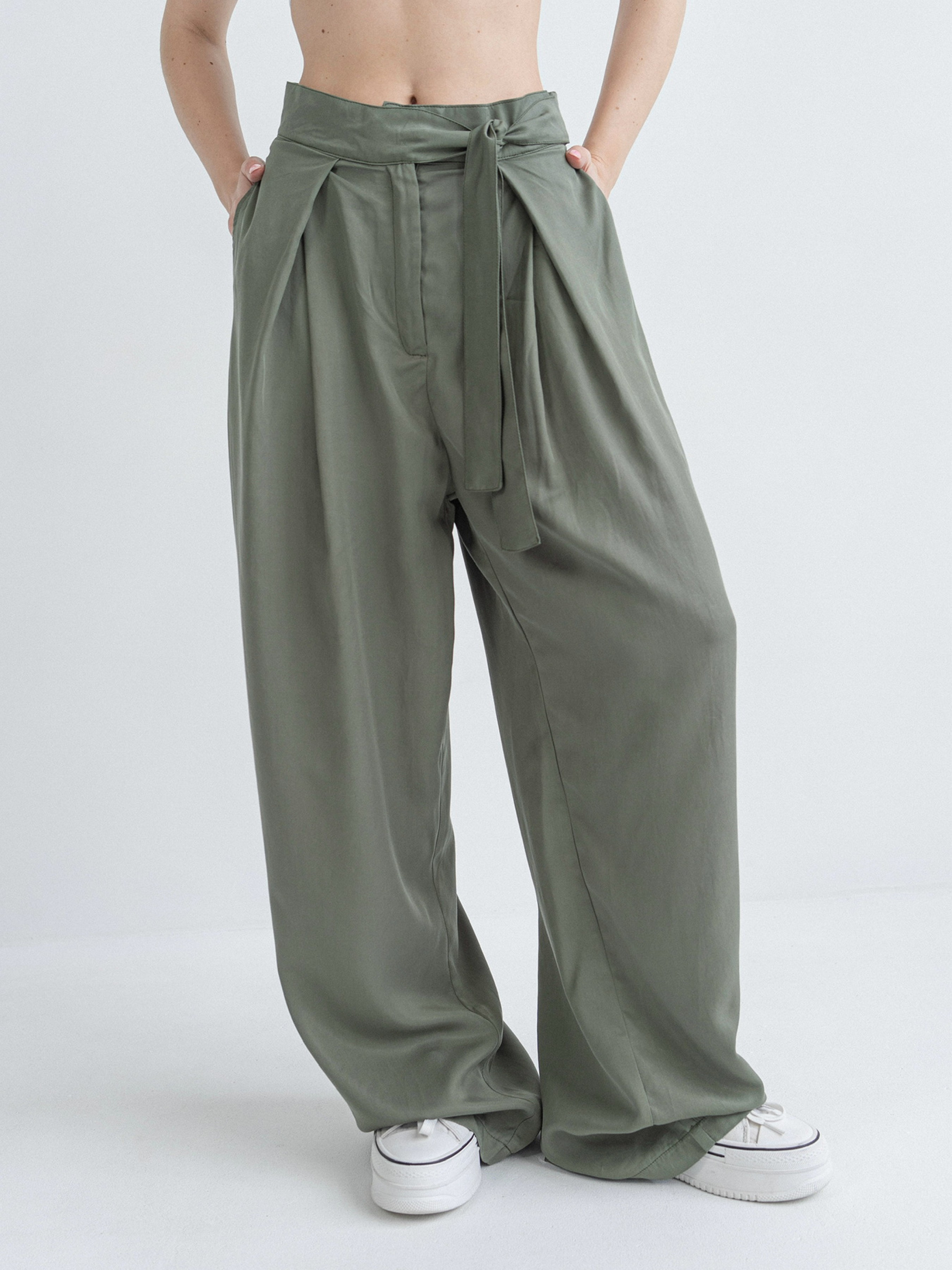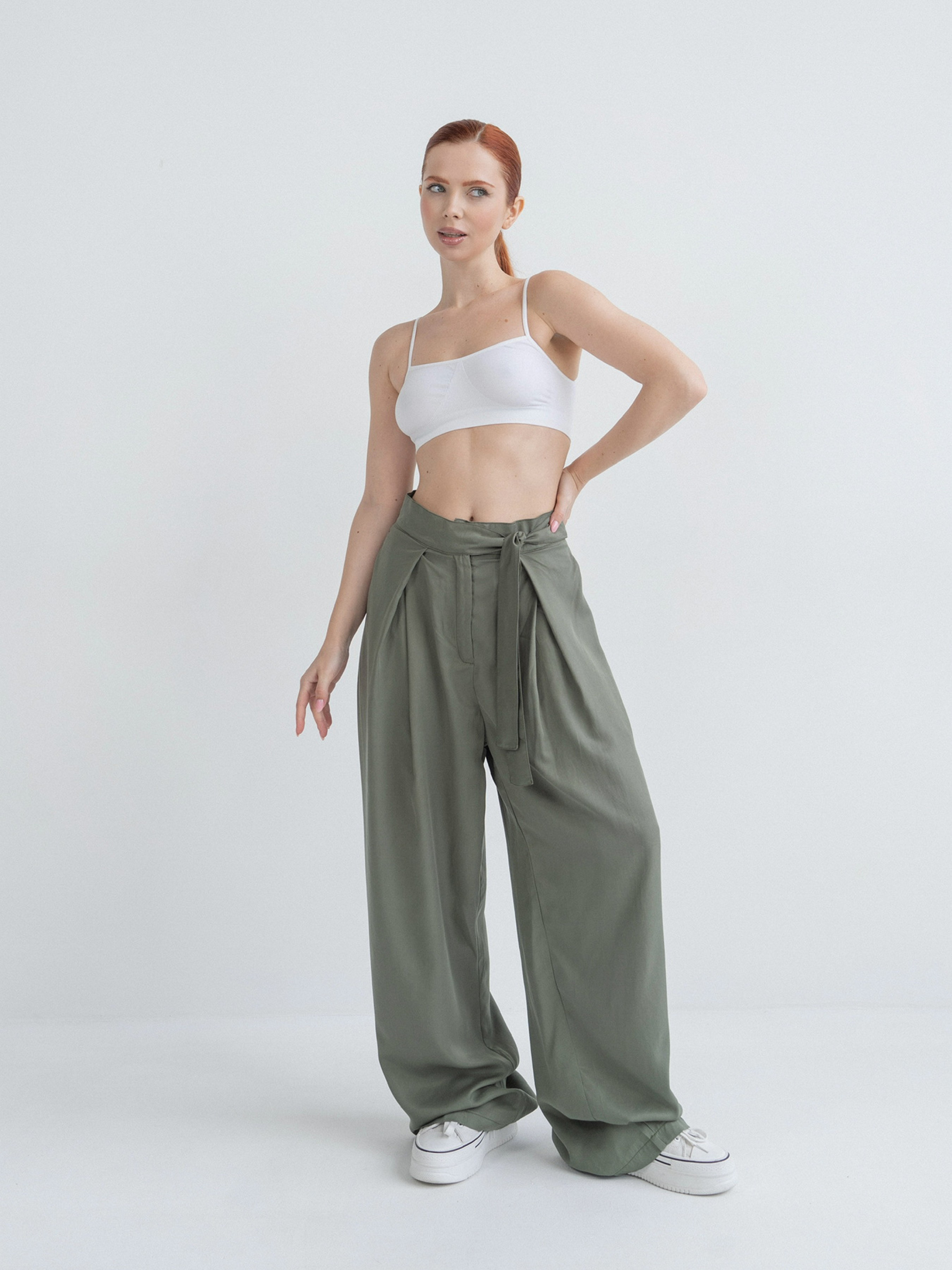 Вільні та нереально зручні, не обмежують рухи; Застібаються на блискавку та гачок, та мають зав'язки на поясі; Кишені в бокових швах; Стильні подвійні защипи; Збільшена довжина; Ідеально і під підбори, і під кросівки Матеріал: котон браш. Дихаюча тканина, ніжна на дотик. Не просвічується Склад тканини: 60% бавовна, 20% віскоза, 20% поліестер 1 розмір: Талія до 68 см, довжина 110 см, ширина штанини по низу 58 см 2 розмір: Талія до 75 см, довжина 112 см, ширина штанини по низу 60 см 3 розмір Талія до 82 см, довжина 114 см, ширина штанини по низу 62 см. На фото модель зростом 165 см, 80-60-88 в 1 розмірі