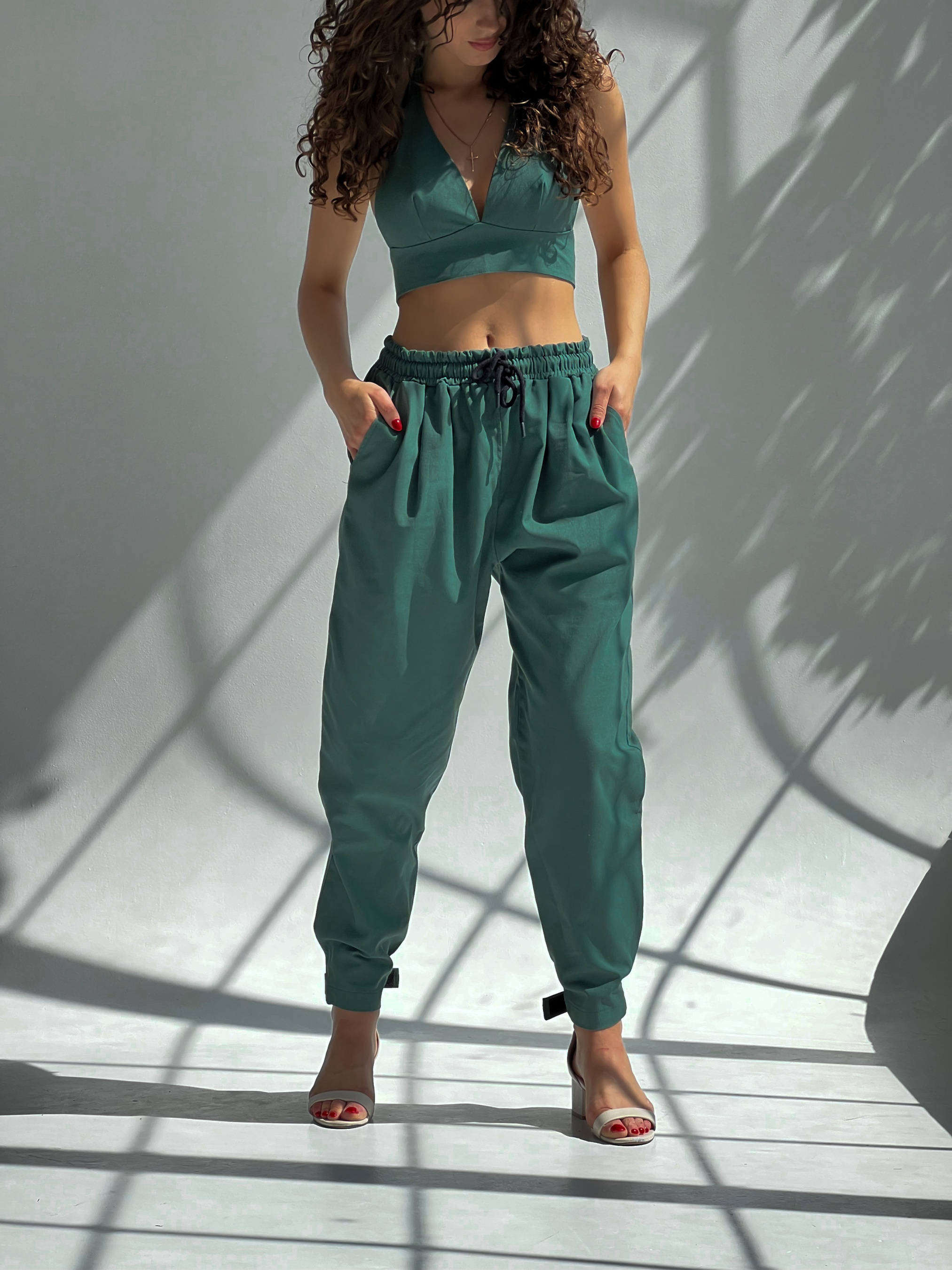 Повсякденні штани IJ модель lipuchki-linen-green