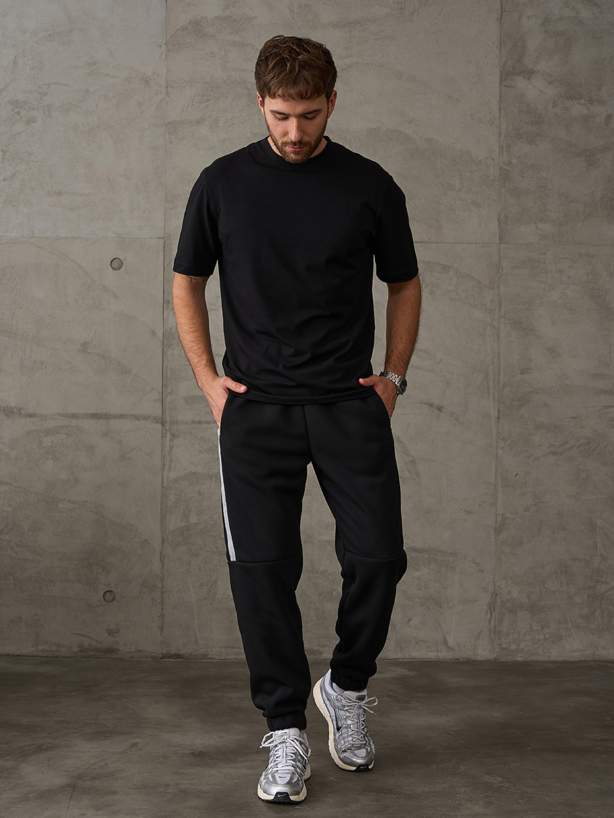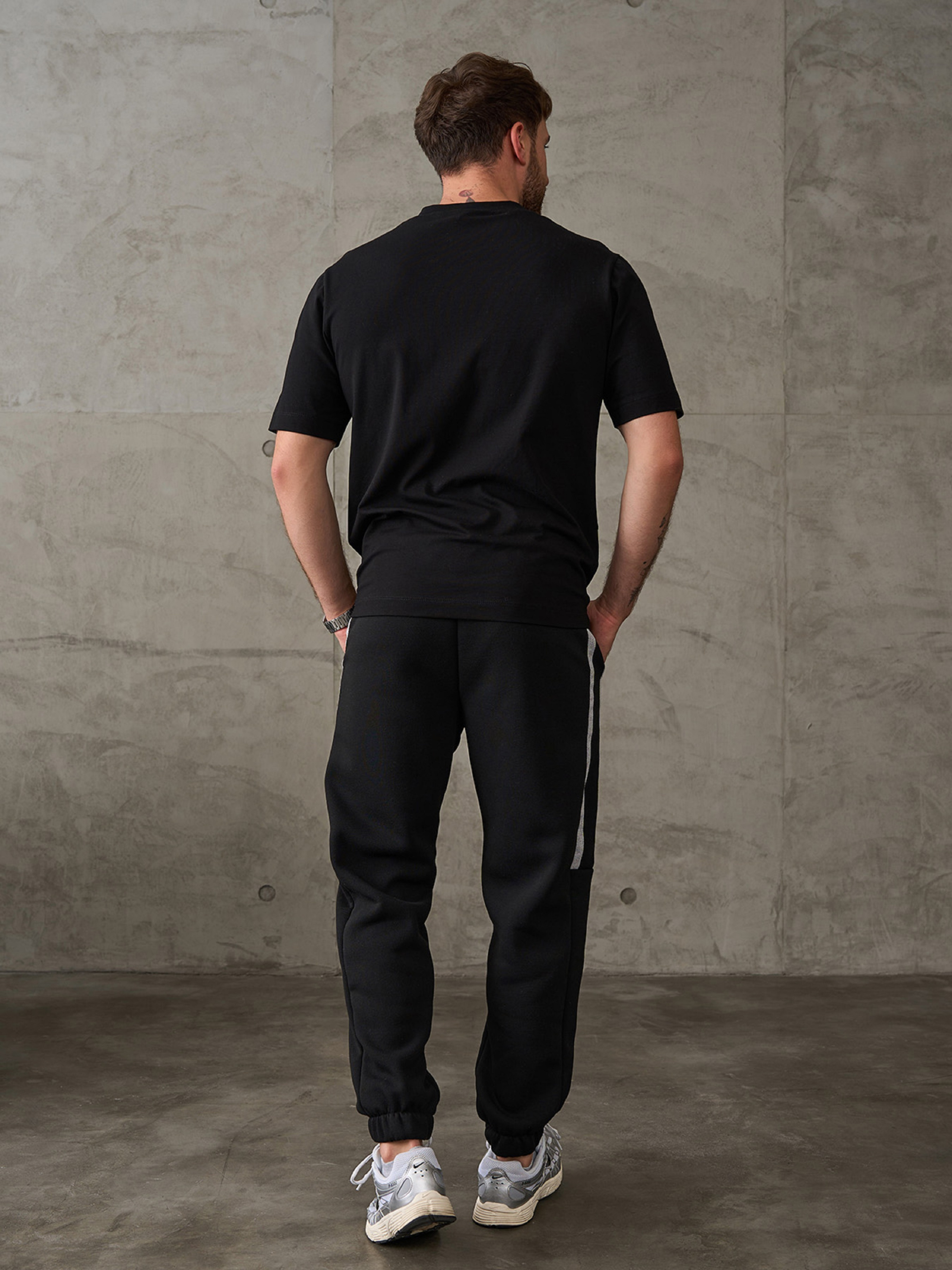Утеплені чорні спортивні штани джоггери з трикотажу на флісі з бічними тасьмами. Модель із шнурівкою на поясній резинці, нижніми резинками-манжетами та бічними кишенями. Напівобхват: Талія: S (38-41), M (40-43), L (42-45), XL (44-47), Стегна: S (50), M (52), L (54), XL (56), Довжина виробу - 100, Довжина по внутрішньому шву - 70, Тканина: Середньої еластичності.