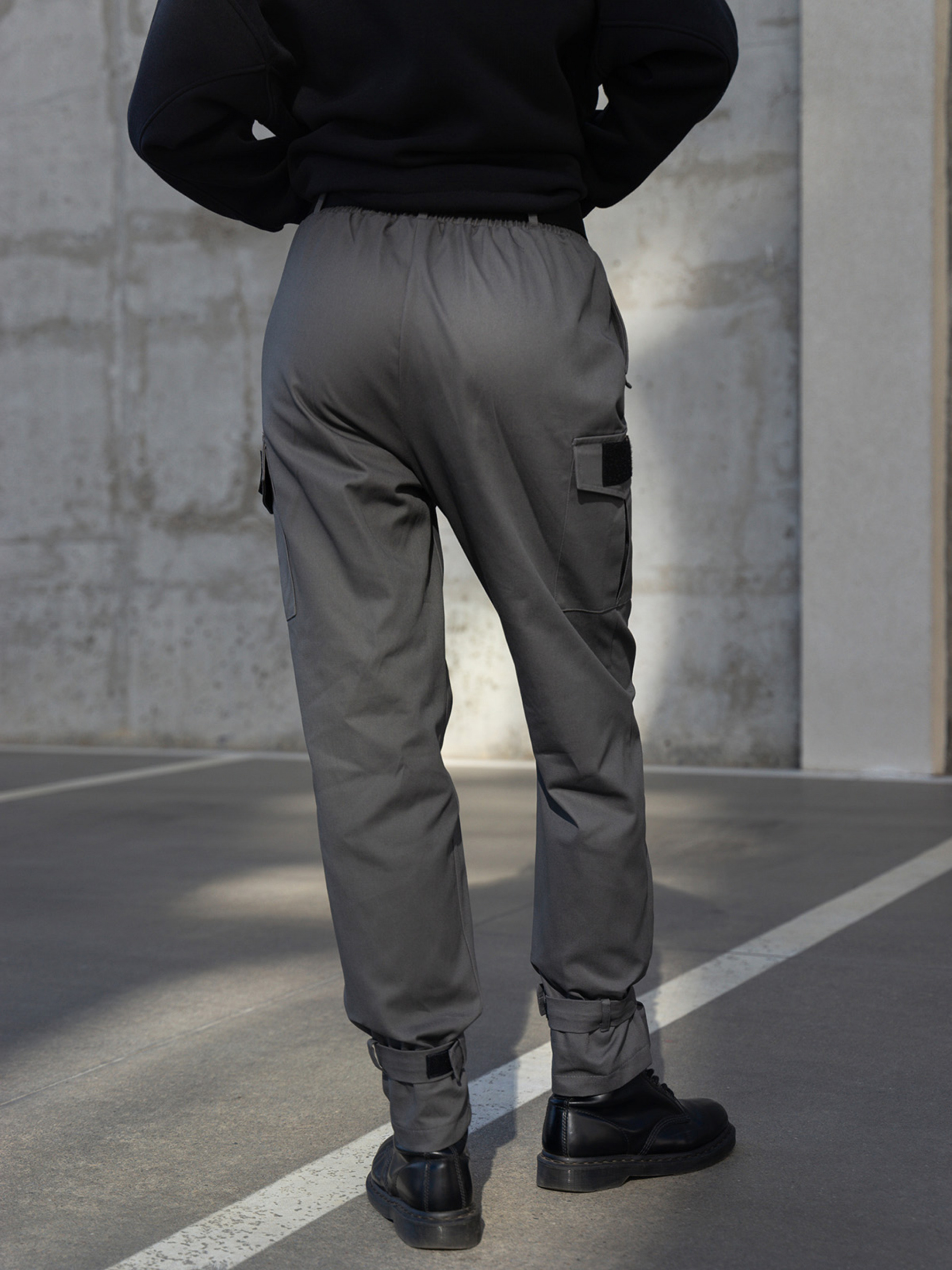 Повсякденні штани карго в стилі мілітарі виконані із щільного котону сірого кольору. Модель вільного крою з гумкою на талії та знімним поясом із пряжкою-фастексом. Модель оснащена знизу фіксаторами на липучці та бічними кишенями. На бічних кишенях розташовані основи-липучки для фіксації шевронів.Шеврони до комплекту не входять. Склад тканини: 80% бавовна, 20% поліестер. Матеріал: Коттон. Напівобхват: Талія: S (34-42), M (36-44), L (38-46), XL (40-48), Стегна: S (55), M (57), L (59), XL (61), Довжина виробу - 107, Довжина по внутрішньому шву - 76, Тканина: Низька еластичність