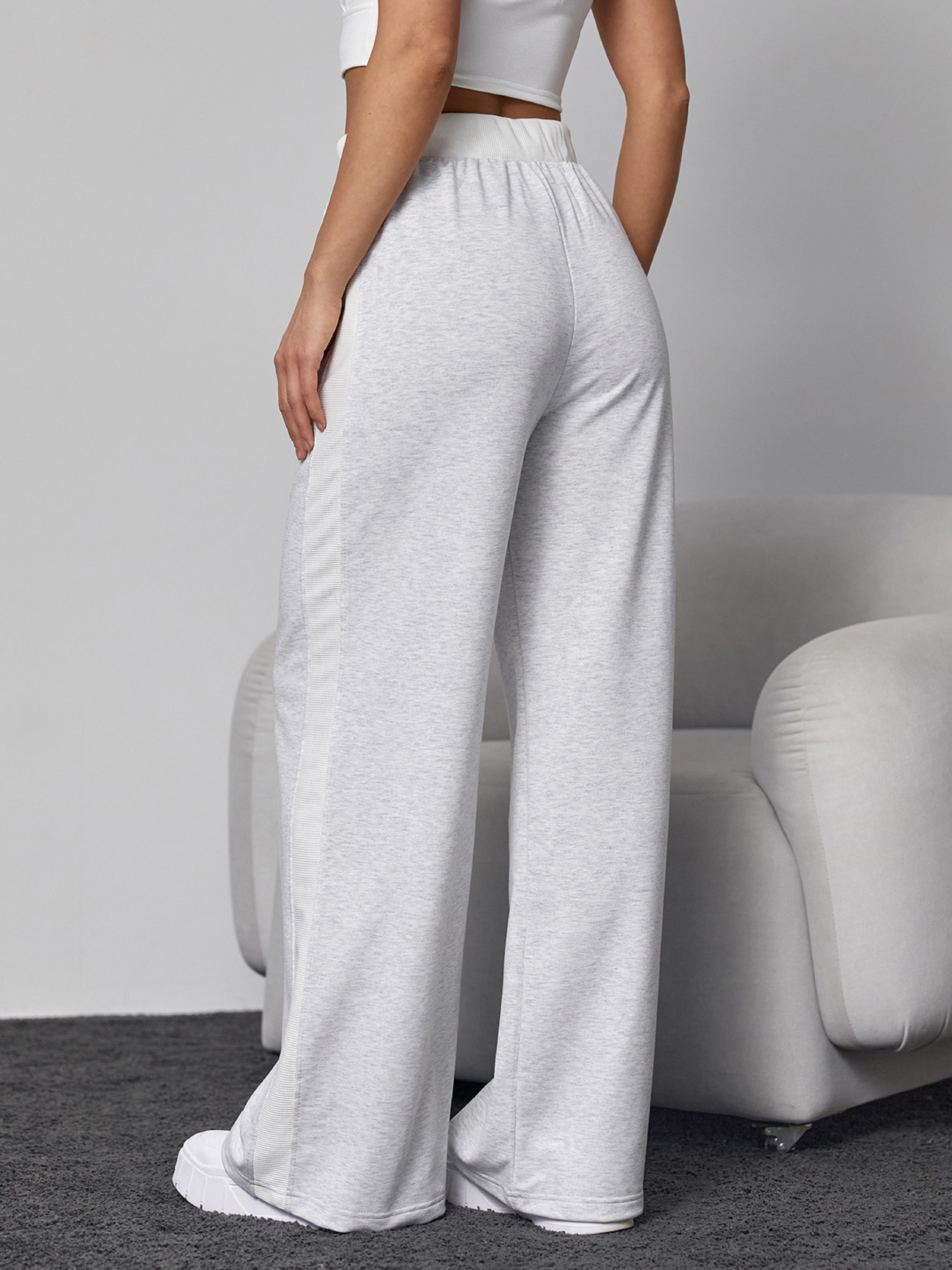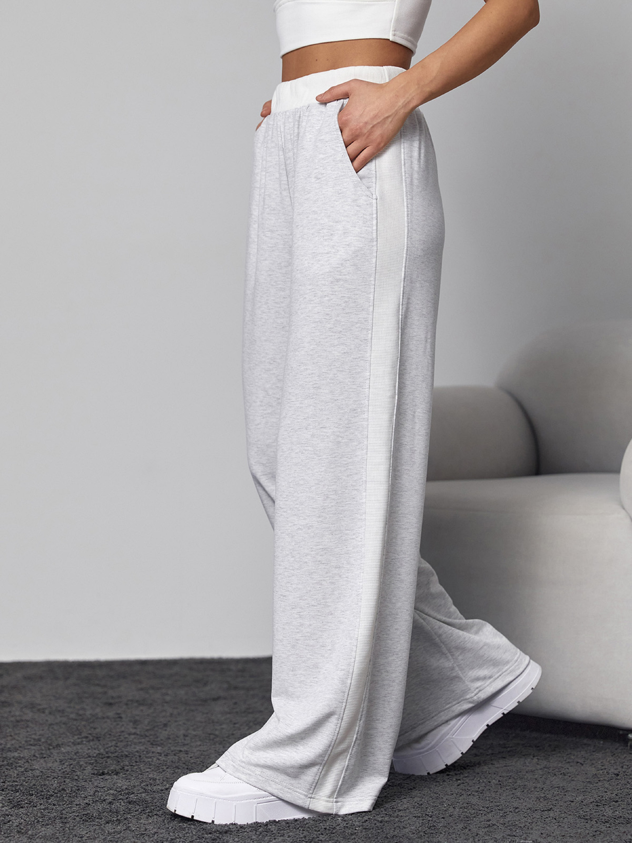 Світло-сірі штани палаццо, виготовлені з трикотажної двонитки із фактурними вставками. Модель з поясною гумкою та широким прямим кроєм. Штани з бічними лампасами та кишенями.Напівобхват: Талія: S (29-34), M (31-36), L (33-38), XL (35-40), Стегна: S (54), M (56), L (58), XL (60), Довжина виробу - 110, Довжина з внутрішнього шва - 75, Тканина: Висока еластичність.